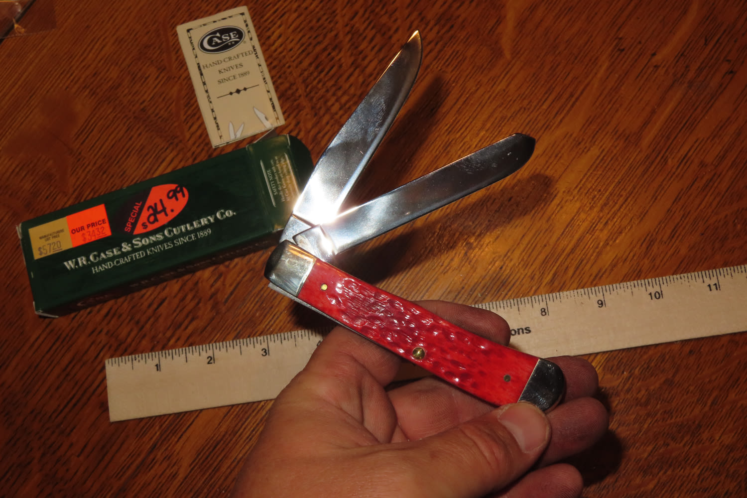 WR CASE AND SONS POCKET KNIFE WITH BOX CASE XX TRAPPER DARK RED LIKE NEW CONDITION