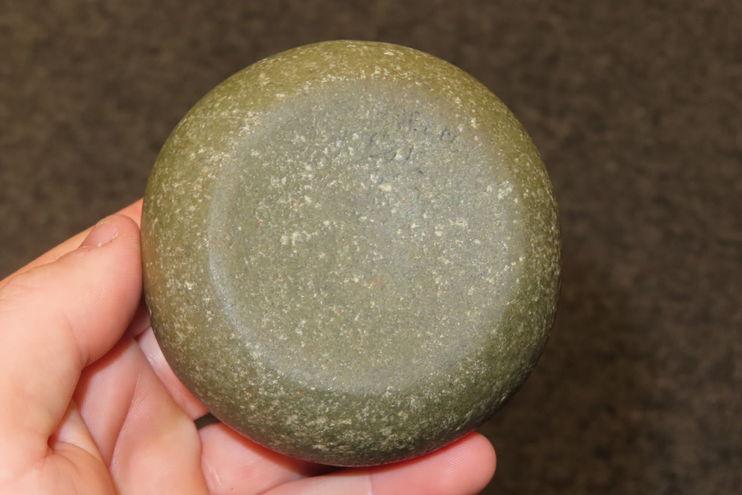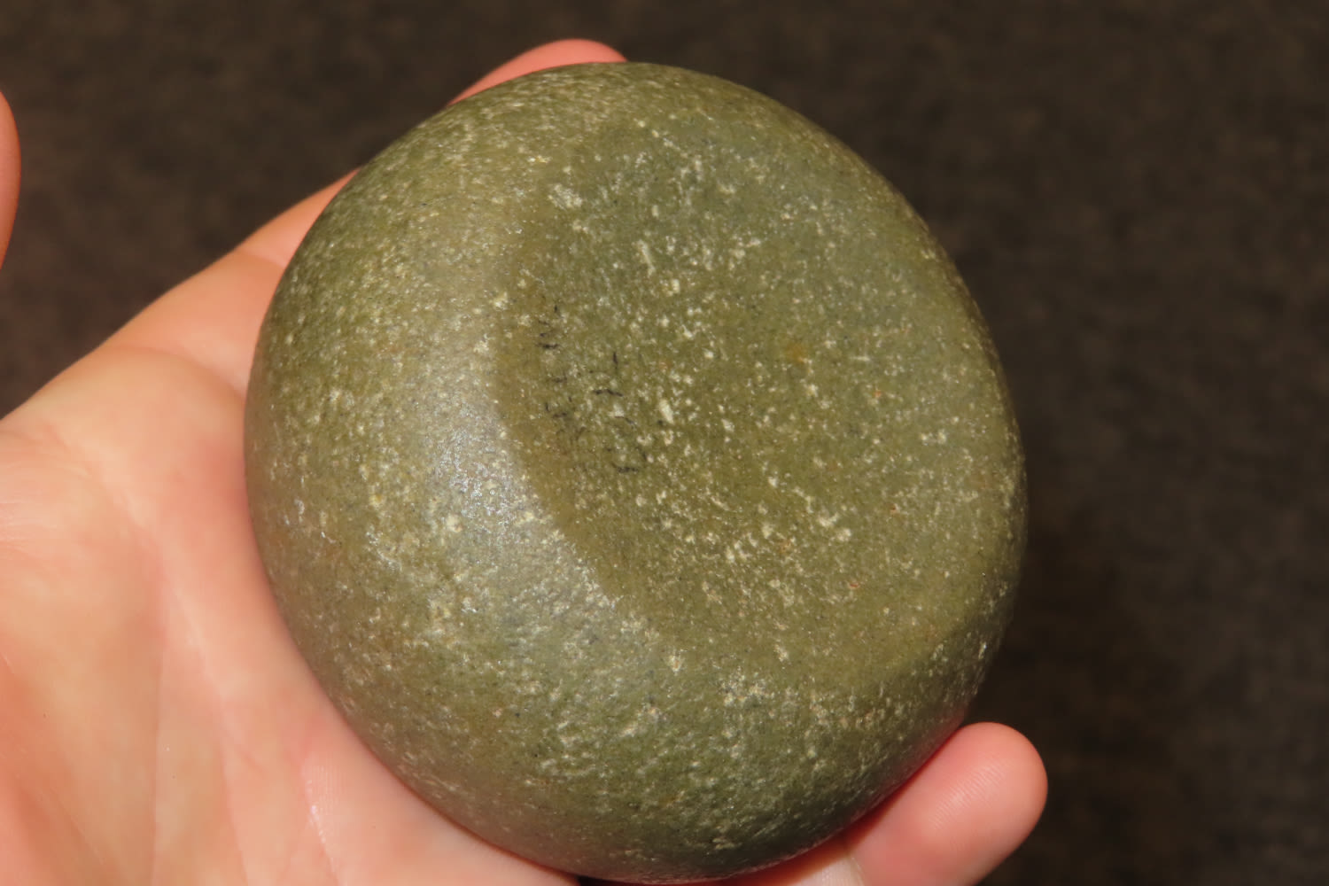 2 7/8″ Really nice Discoidal made of Green Quartz out f Jim Millard Collection, SE Iowa/NE Missouri