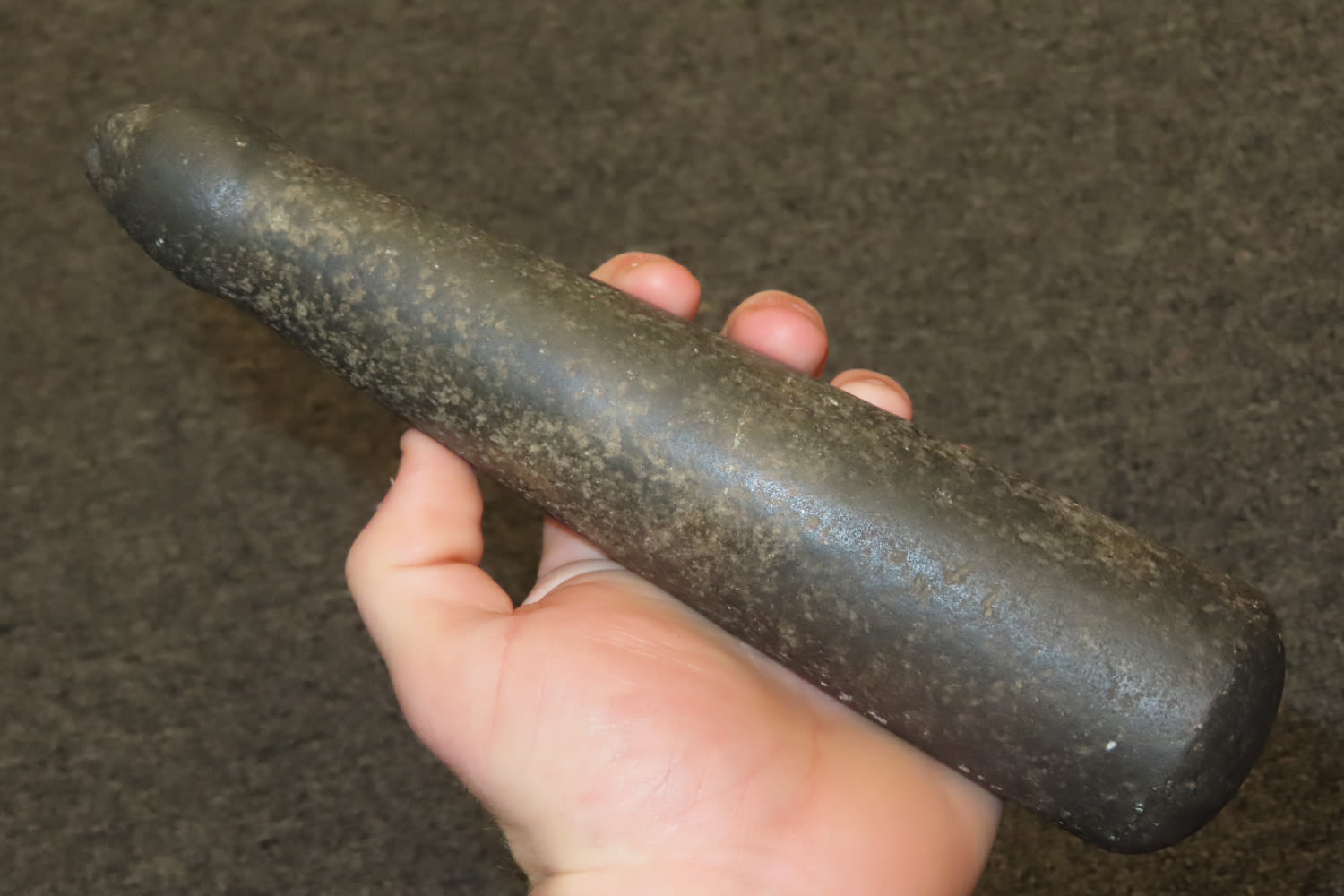 8 3/4" Effigy Pestle found in Santa Barbara, CA out of the Jim Millard Collection, South East Iowa / North East Missouri