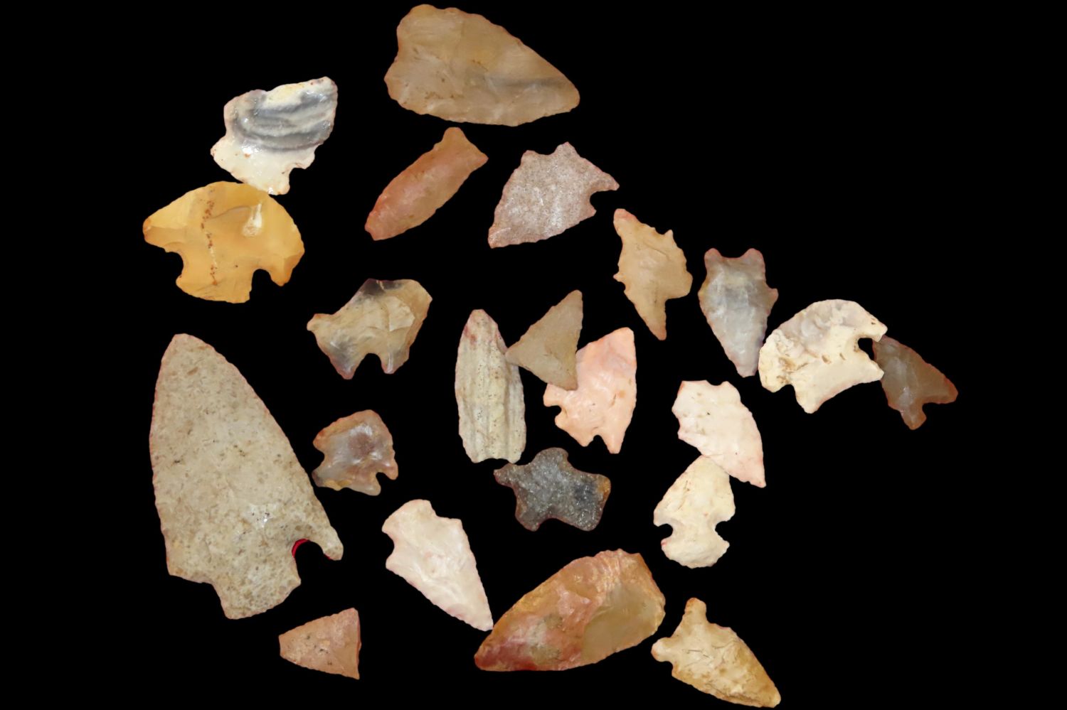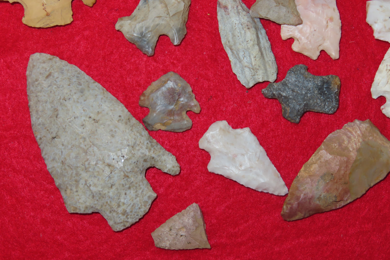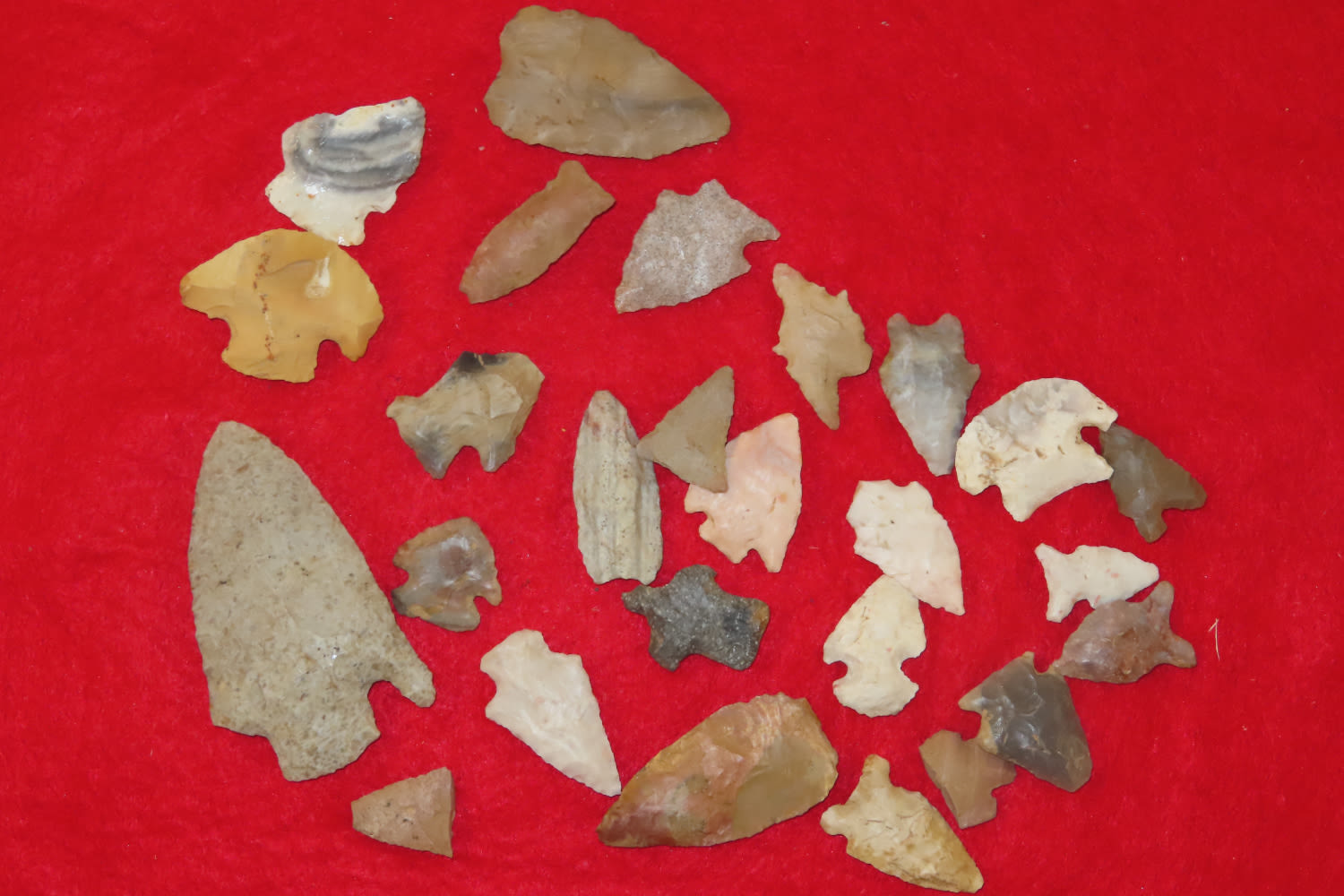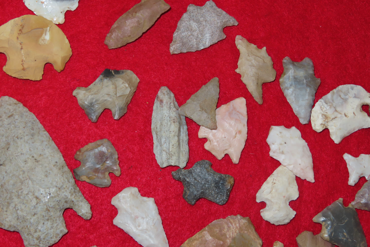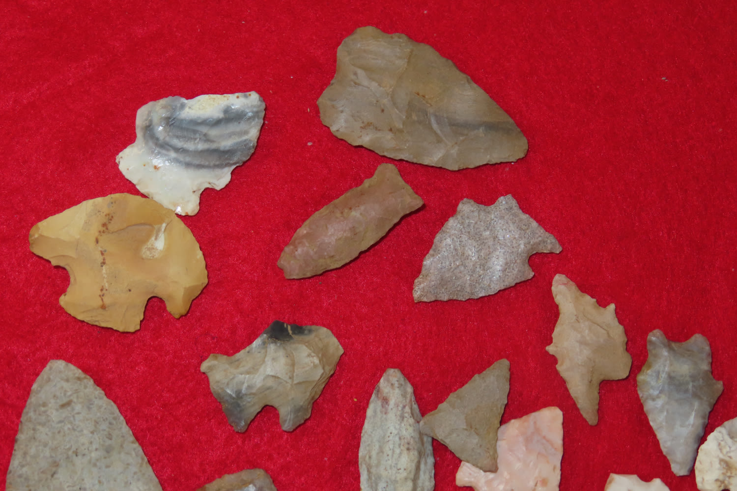 Grouping of Arrowheads some have modern re-chipping out of the Jim Millard Collection, South East Iowa / North East Missouri