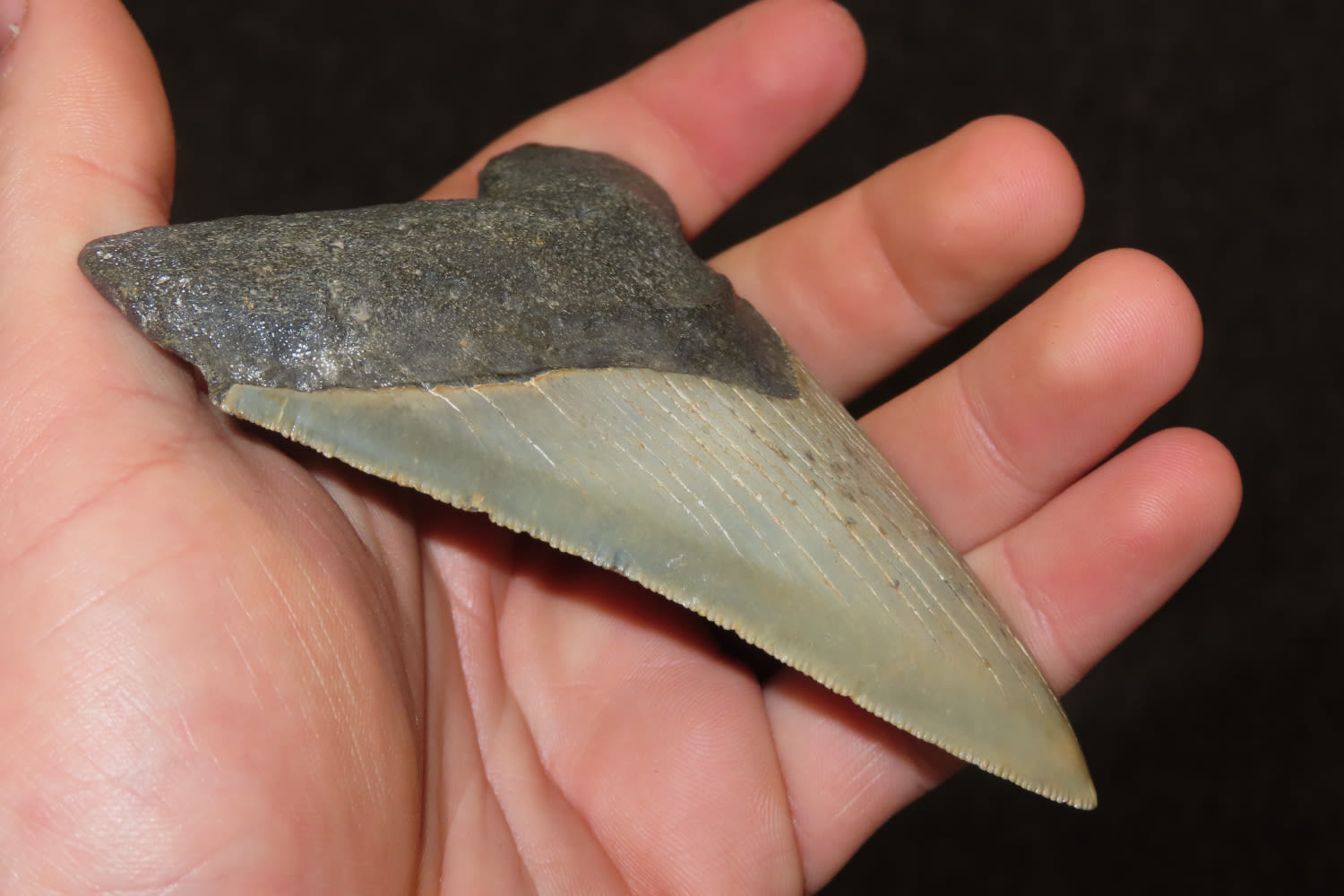 3 7/8″ Megladon Shark’s Tooth out of the Jim Millard Collection, South East Iowa / North East Missouri