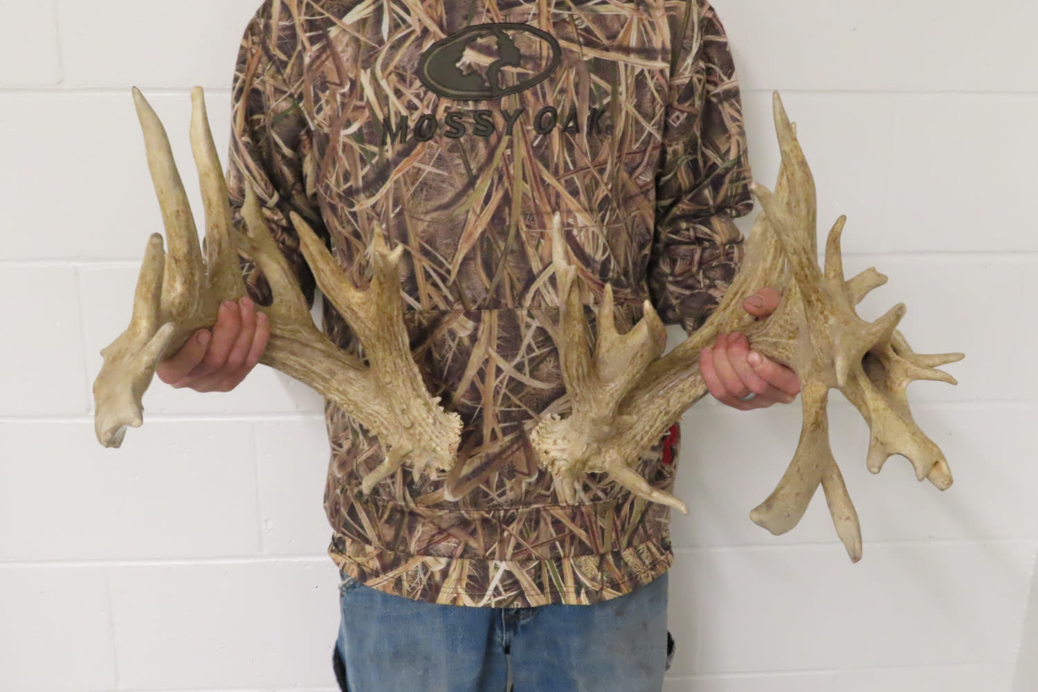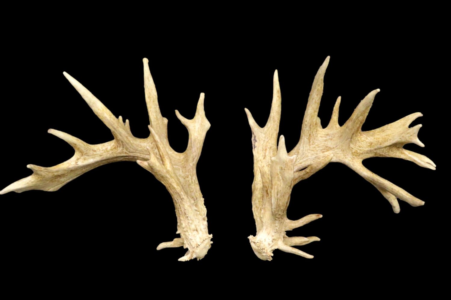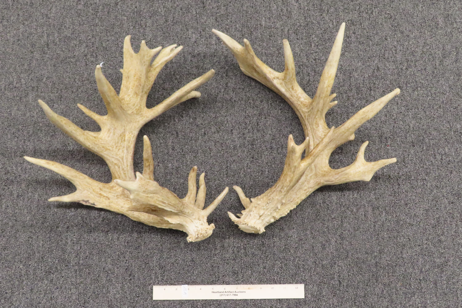 Set of Pen Raised Non-typical Whitetail Deer sheds with appoximately 42 (FORTY TWO!!) scoreable points out of the Jim Millard Collection, South East Iowa / North East Missouri