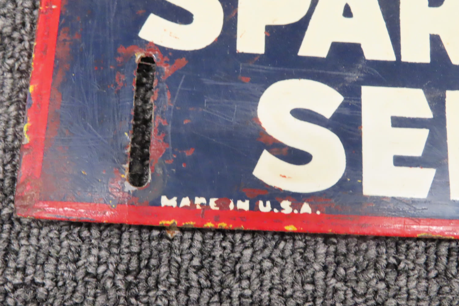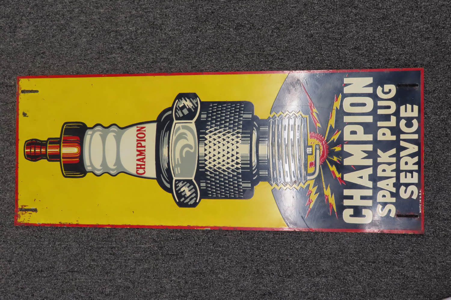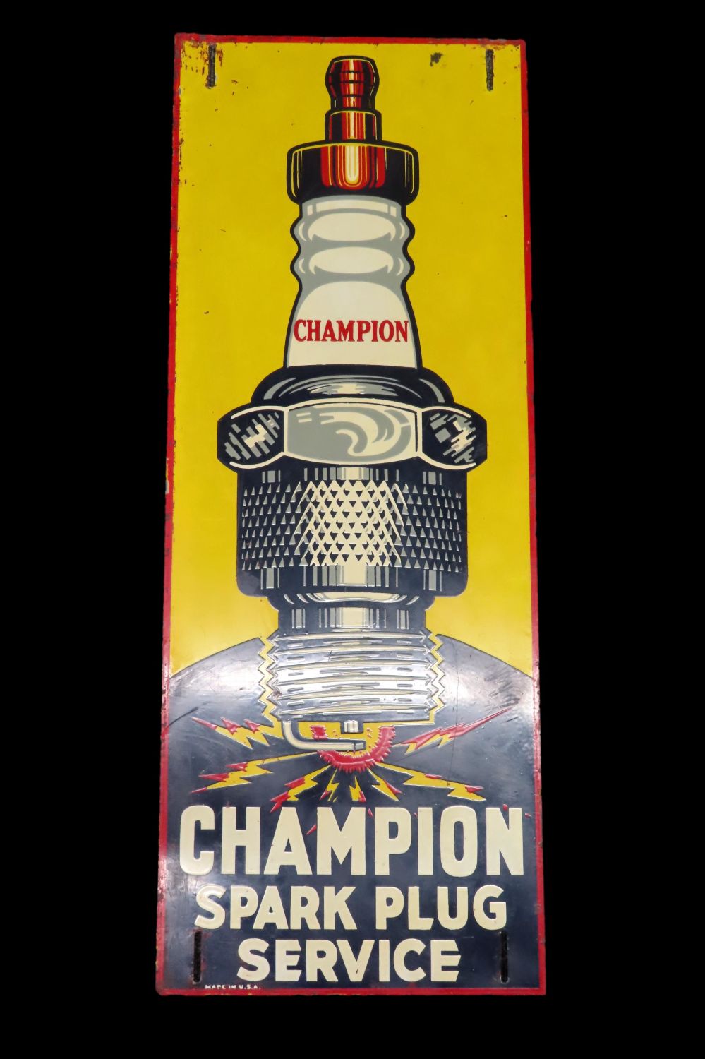 28″ x 10 1/2″ Antique Sign CHAMPION SPARK PLUG SERVICE out of the Jim Millard Collection, South East Iowa / North East Missouri