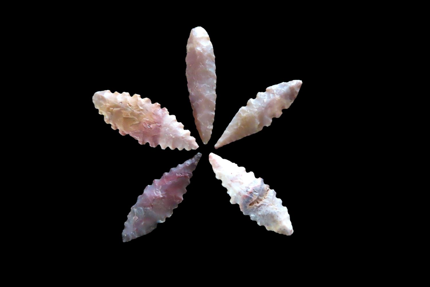 Grouping of Authentic Neolithic Arrowheads found in Africa. These points come from the neolithic era 3000-5000 BC and are from the Sahara Desert. Please use the photos for condition and length.