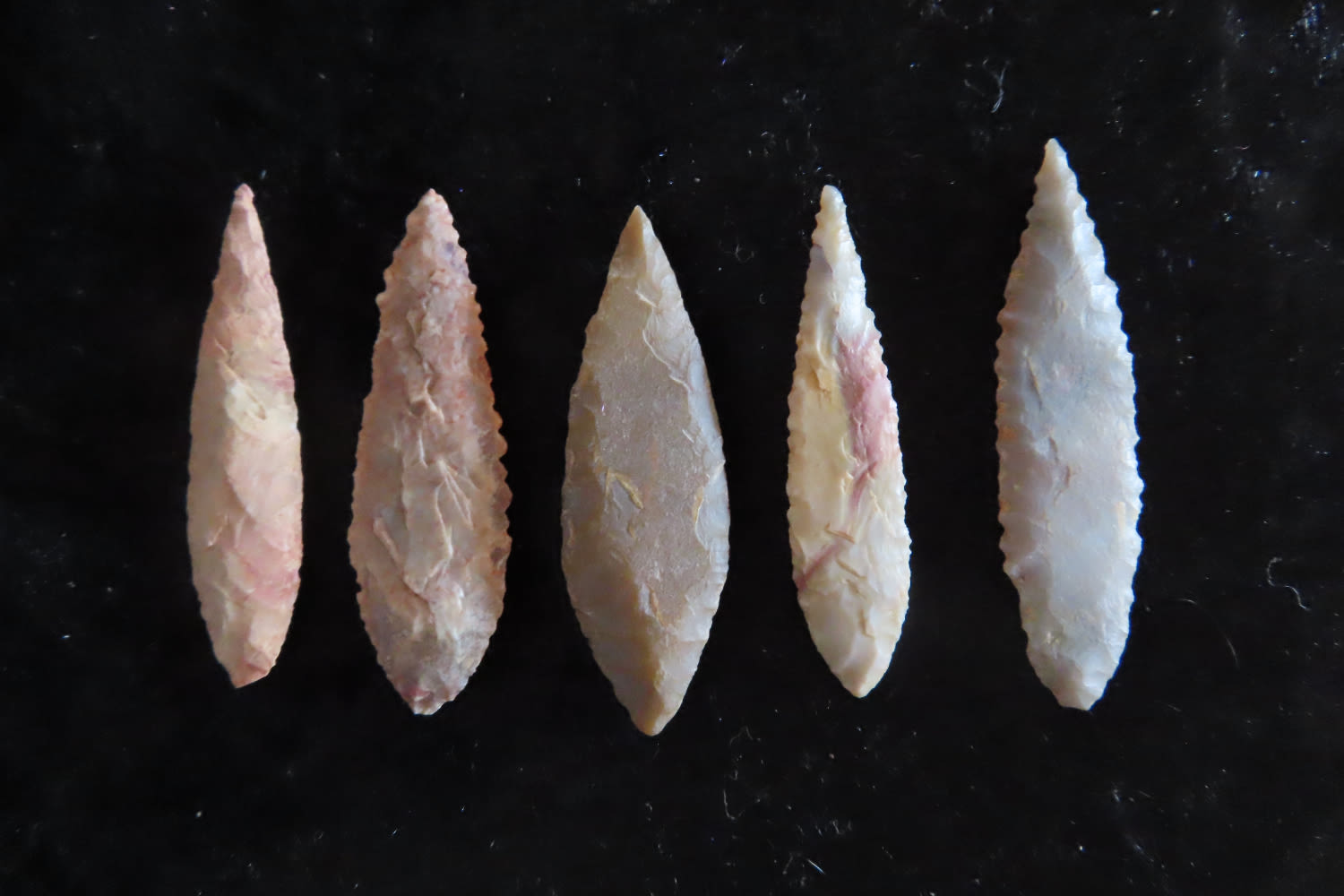 Grouping of Authentic Neolithic Arrowheads found in Africa. These points come from the neolithic era 3000-5000 BC and are from the Sahara Desert. Please use the photos for condition and length.