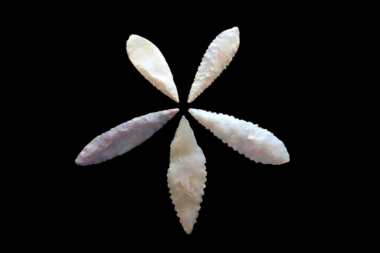 Grouping of Authentic Neolithic Arrowheads found in Africa. These points come from the neolithic era 3000-5000 BC and are from the Sahara Desert. Please use the photos for condition and length.
