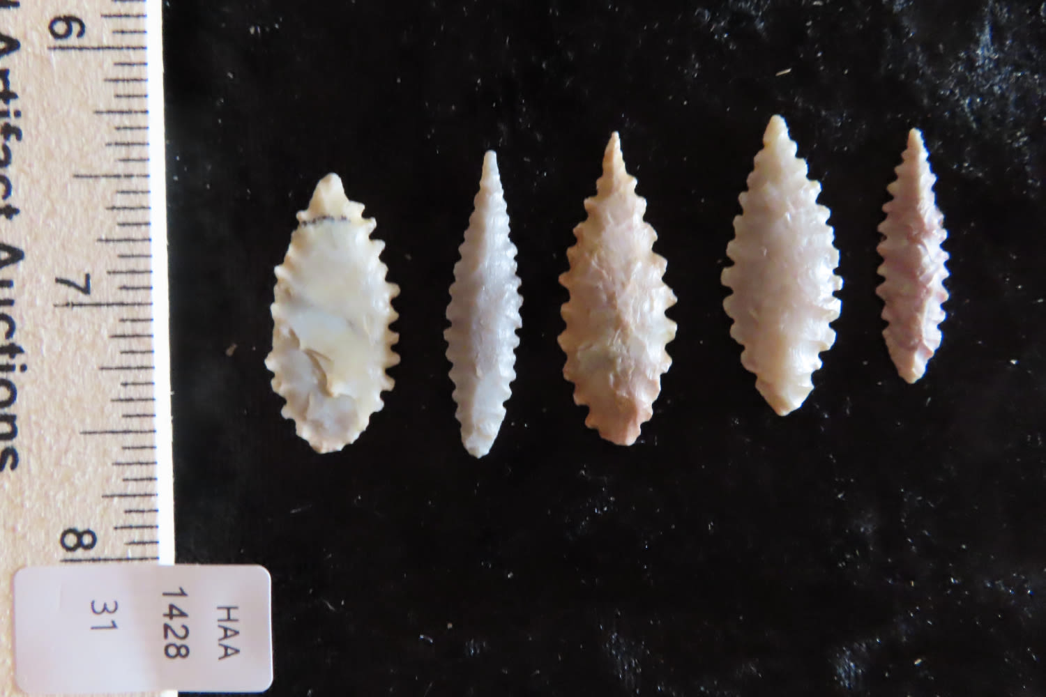 Grouping of Authentic Neolithic Arrowheads found in Africa. These points come from the neolithic era 3000-5000 BC and are from the Sahara Desert. Please use the photos for condition and length.