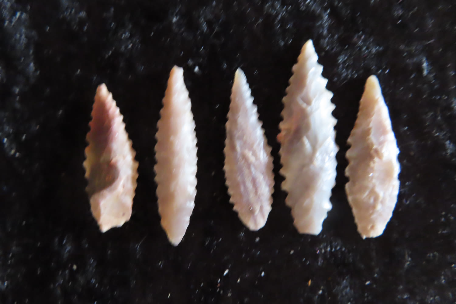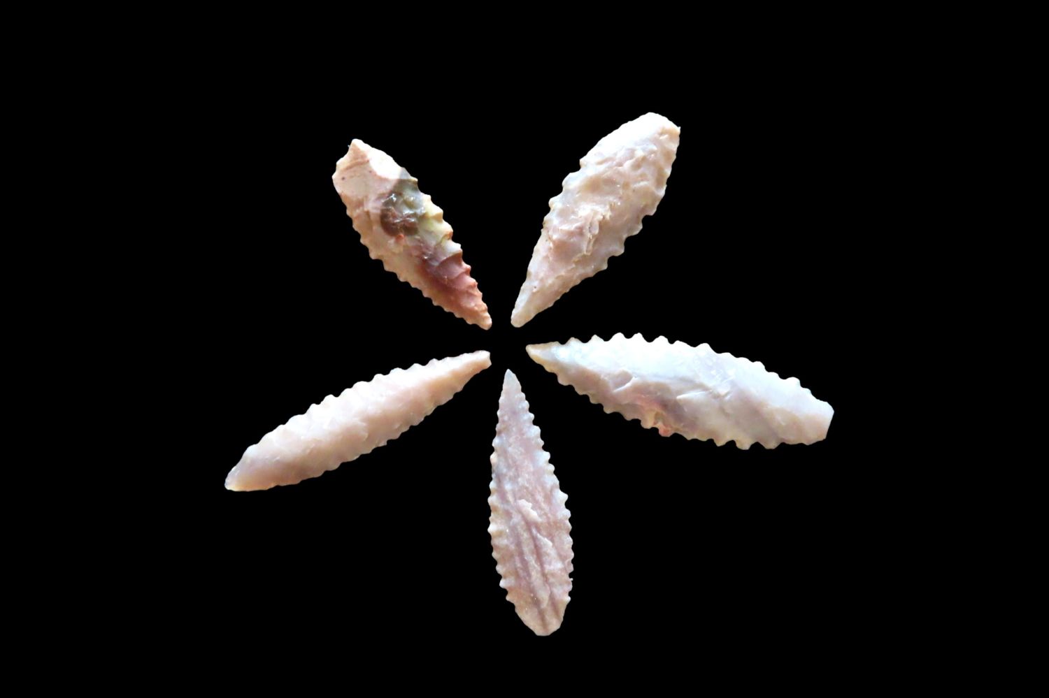 Grouping of Authentic Neolithic Arrowheads found in Africa. These points come from the neolithic era 3000-5000 BC and are from the Sahara Desert. Please use the photos for condition and length.