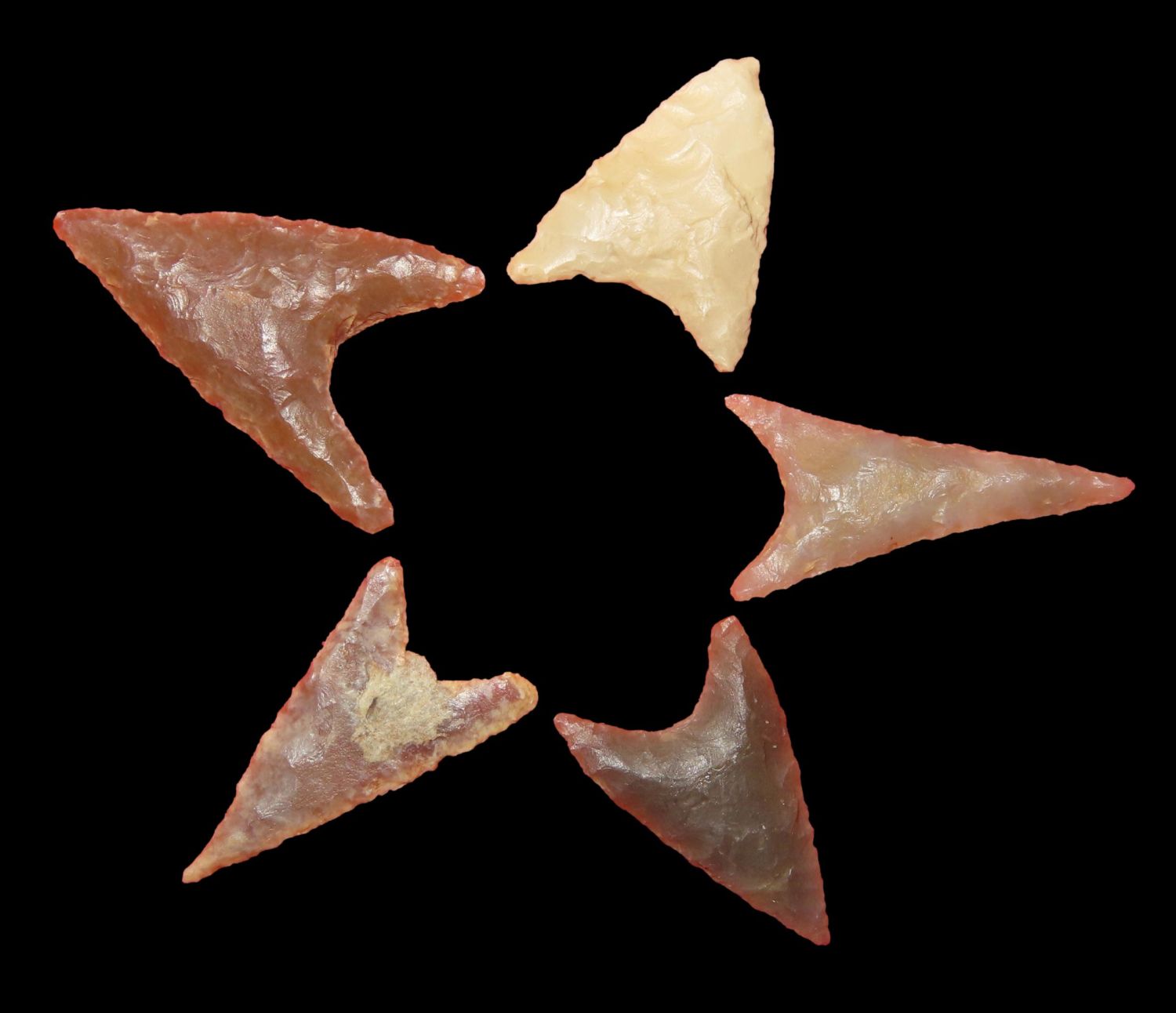 Grouping of Authentic Neolithic Arrowheads found in Africa. These points come from the neolithic era 3000-5000 BC and are from the Sahara Desert. Please use the photos for condition and length.