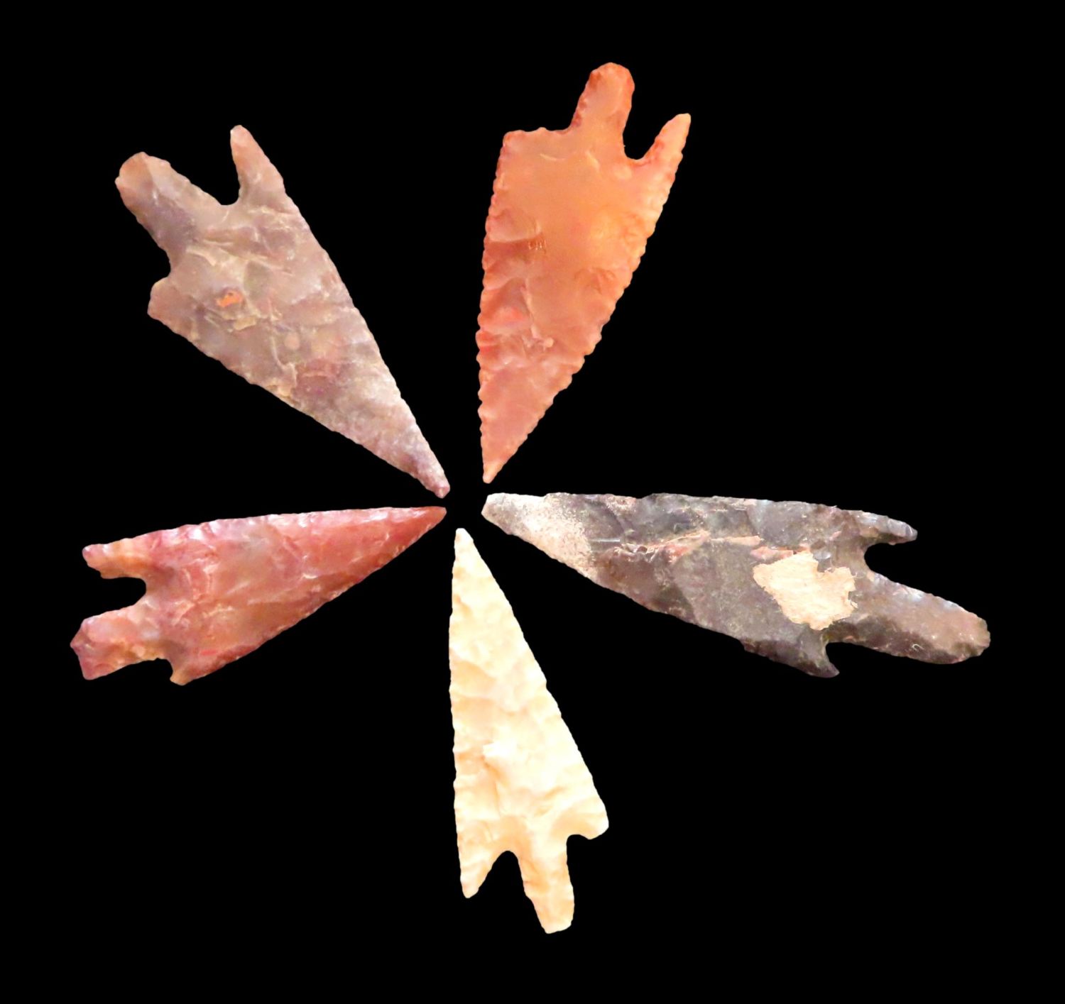 Grouping of Authentic Neolithic Arrowheads found in Africa. These points come from the neolithic era 3000-5000 BC and are from the Sahara Desert. Please use the photos for condition and length.