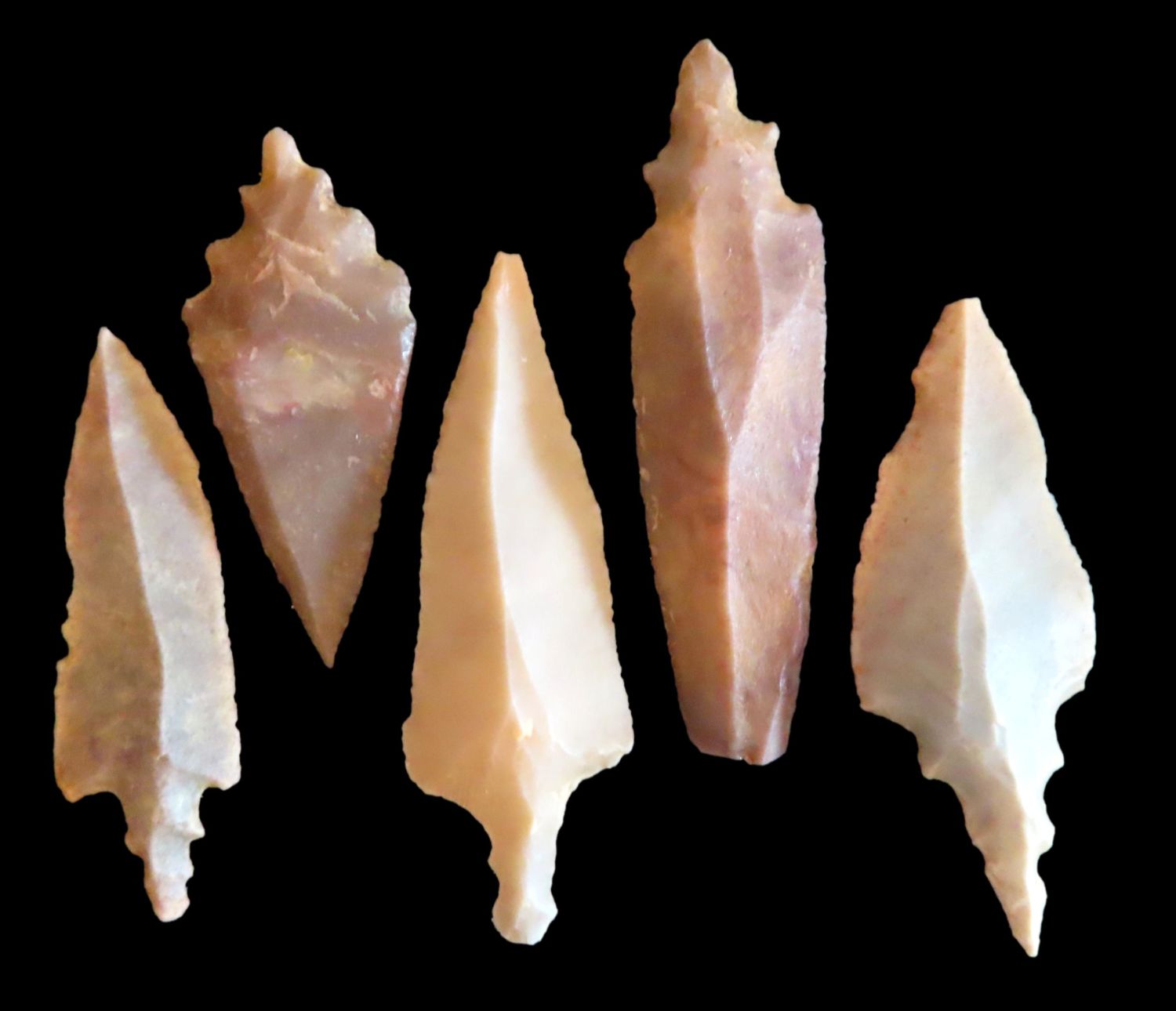 Grouping of Authentic Neolithic Arrowheads found in Africa. These points come from the neolithic era 3000-5000 BC and are from the Sahara Desert. Please use the photos for condition and length.