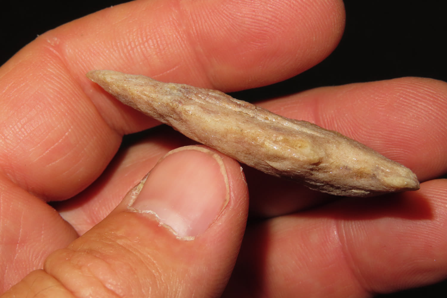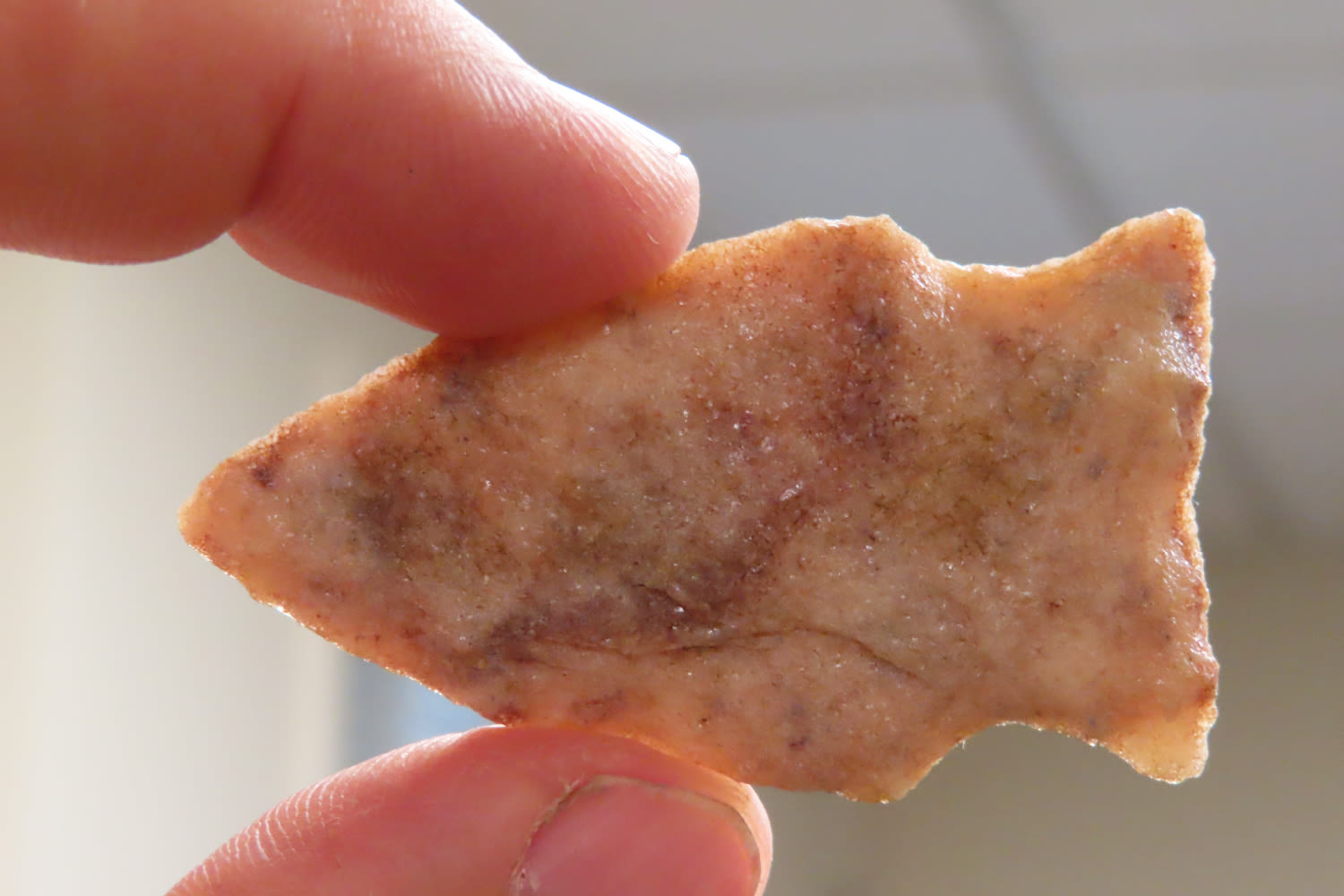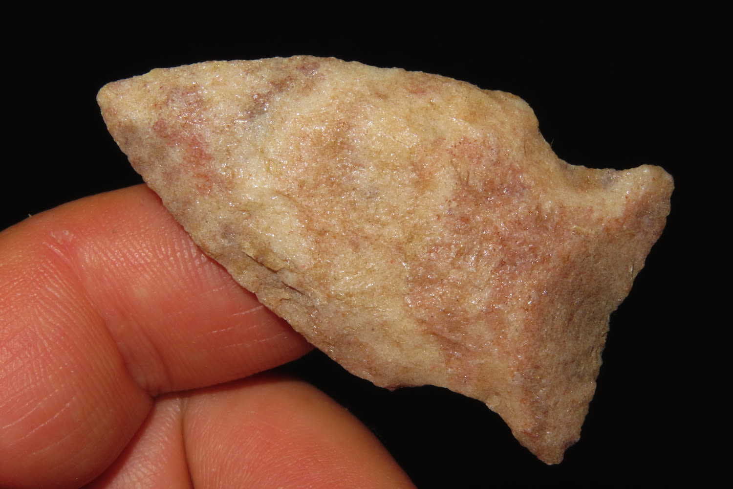 2 1/8″ Gibson, Woodland, Made of red quartzite, Collection of Ralph Kempf, Southern Iowa