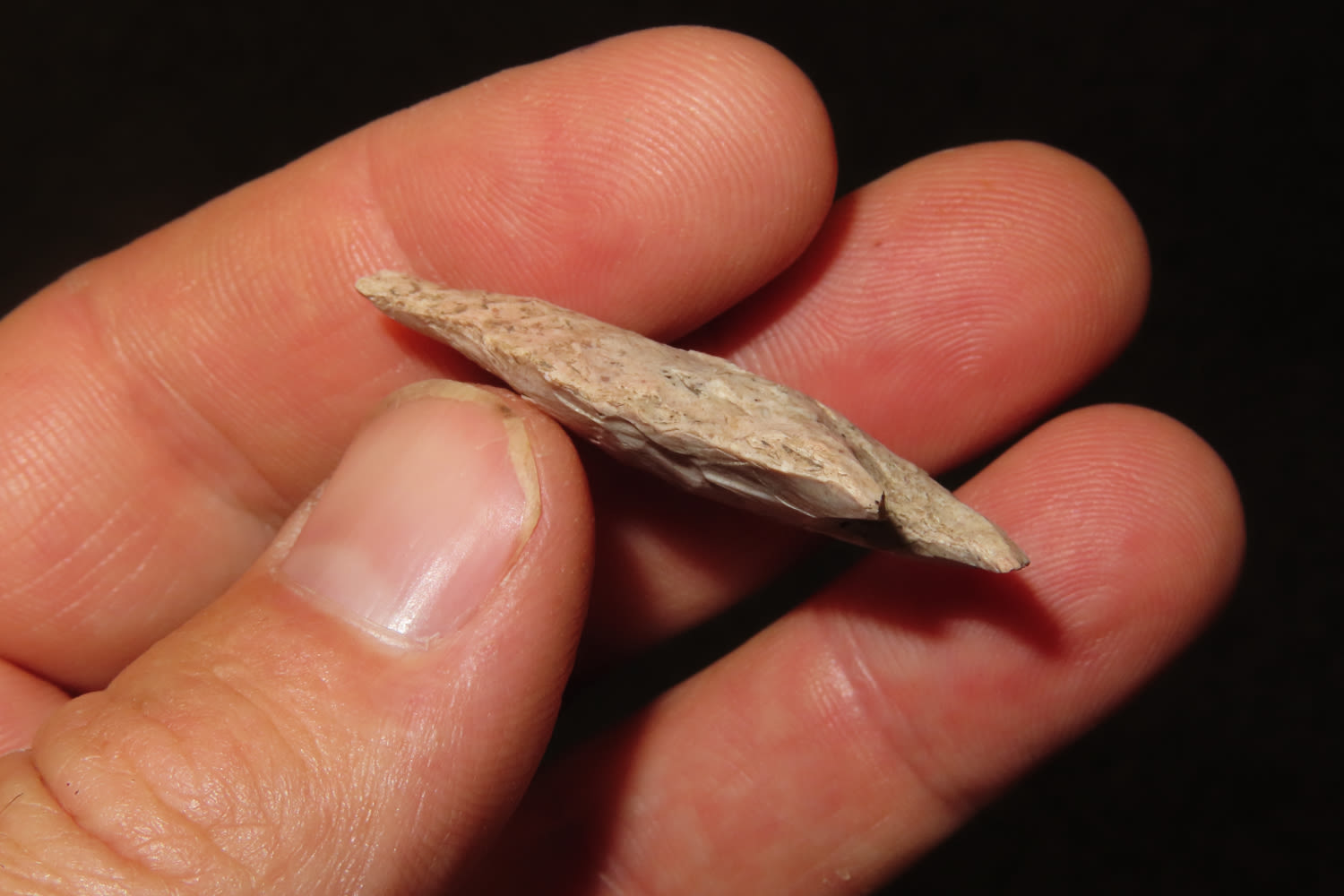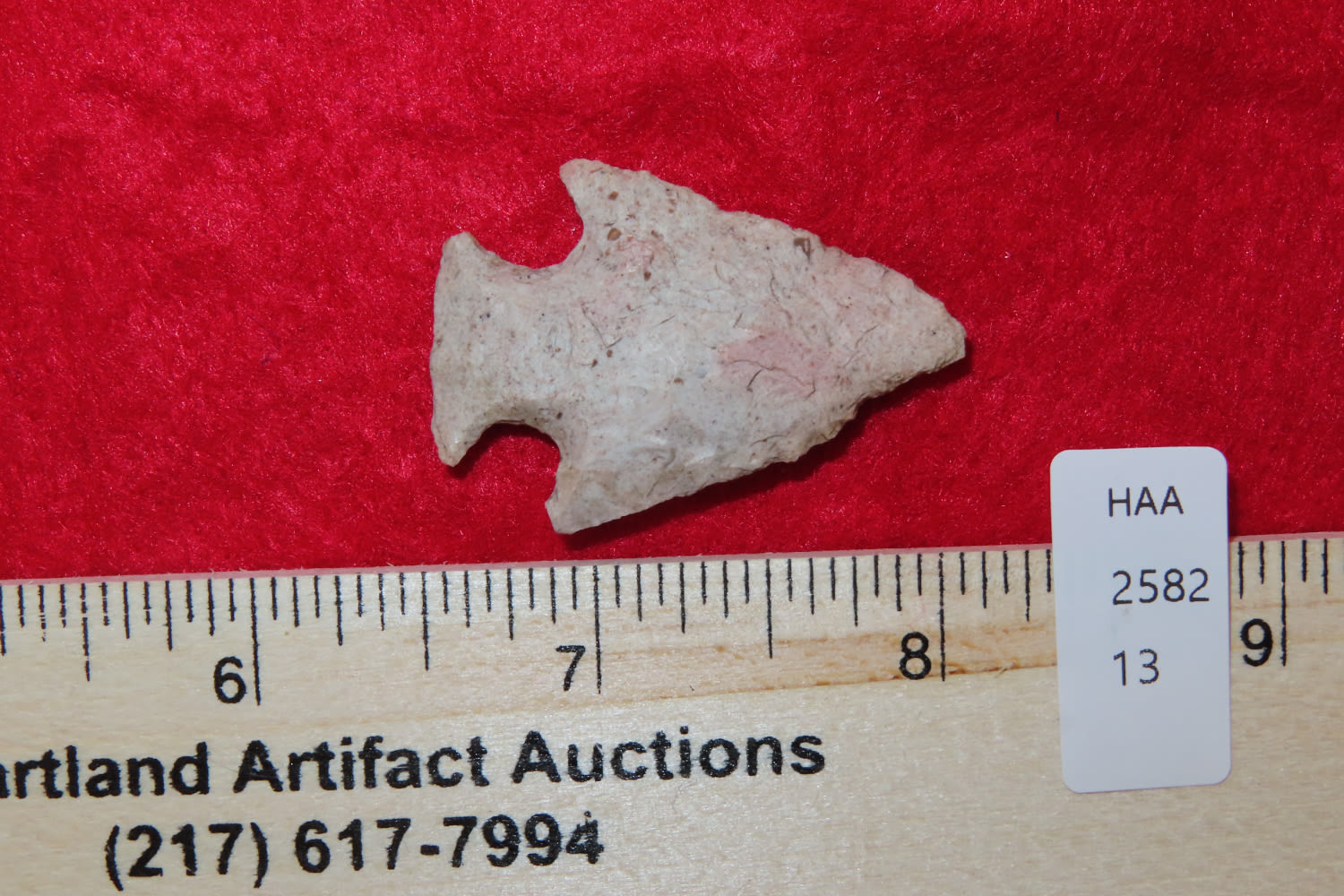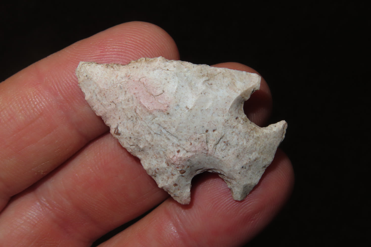 1 1/2″ Motley found in Pike Co., Missouri. Very Fine, Well Made Piece with deep notches! Authentic Native American Arrowhead Artifact