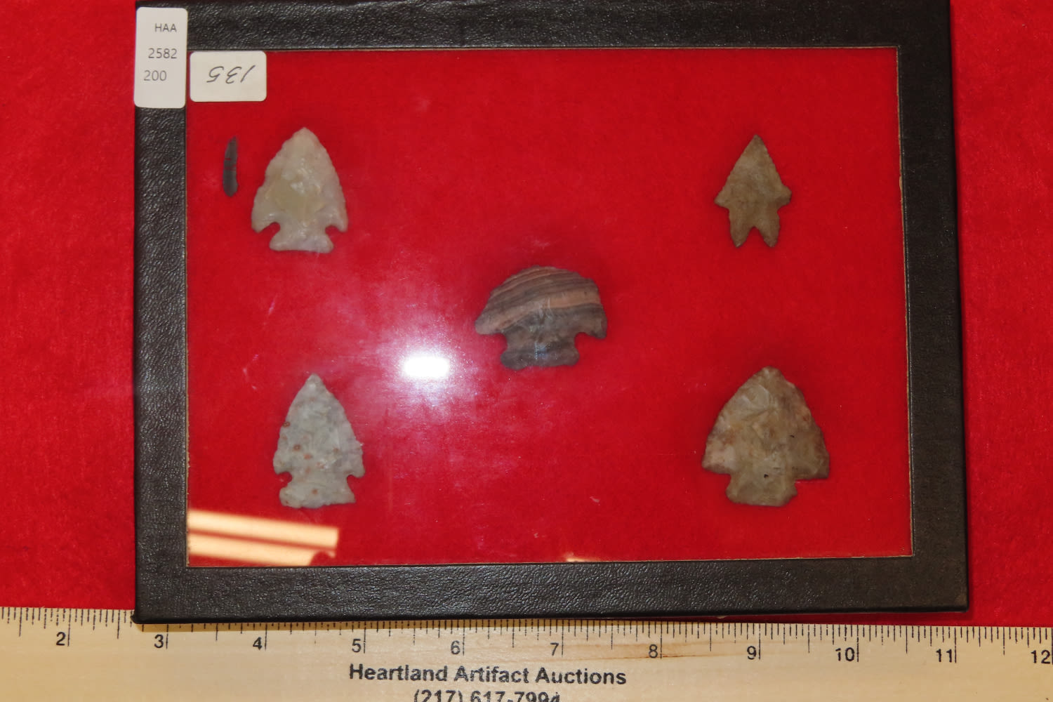 Grouping of 5 Arrowheads Ex Col Ray Vitzen, 639-1 pg 48, All found in Ohil