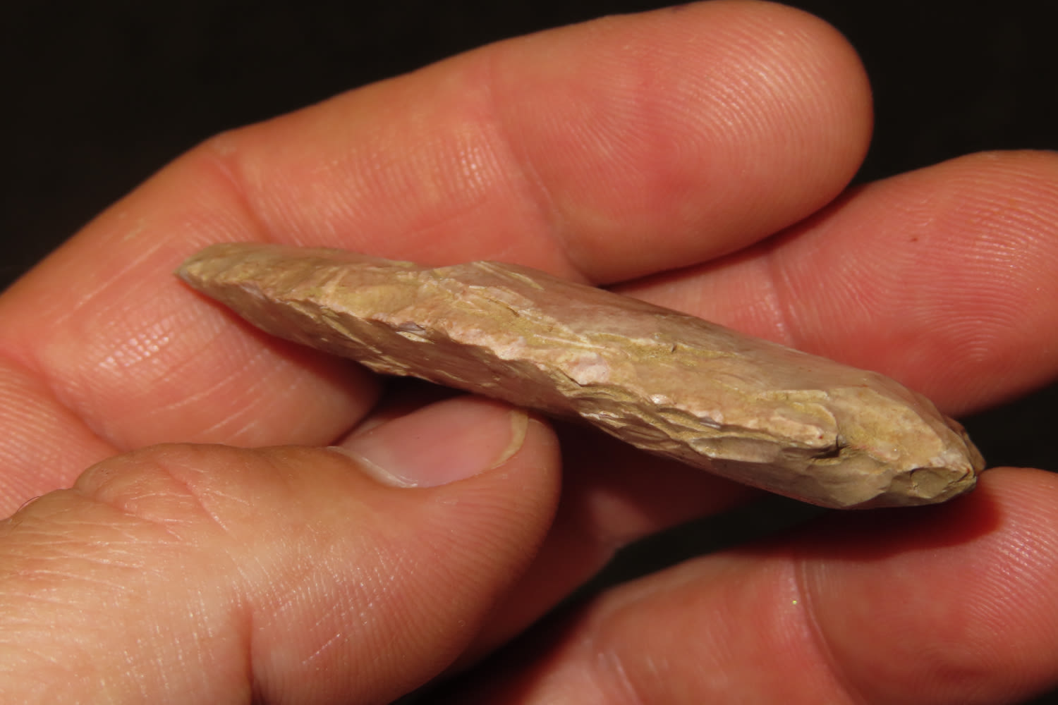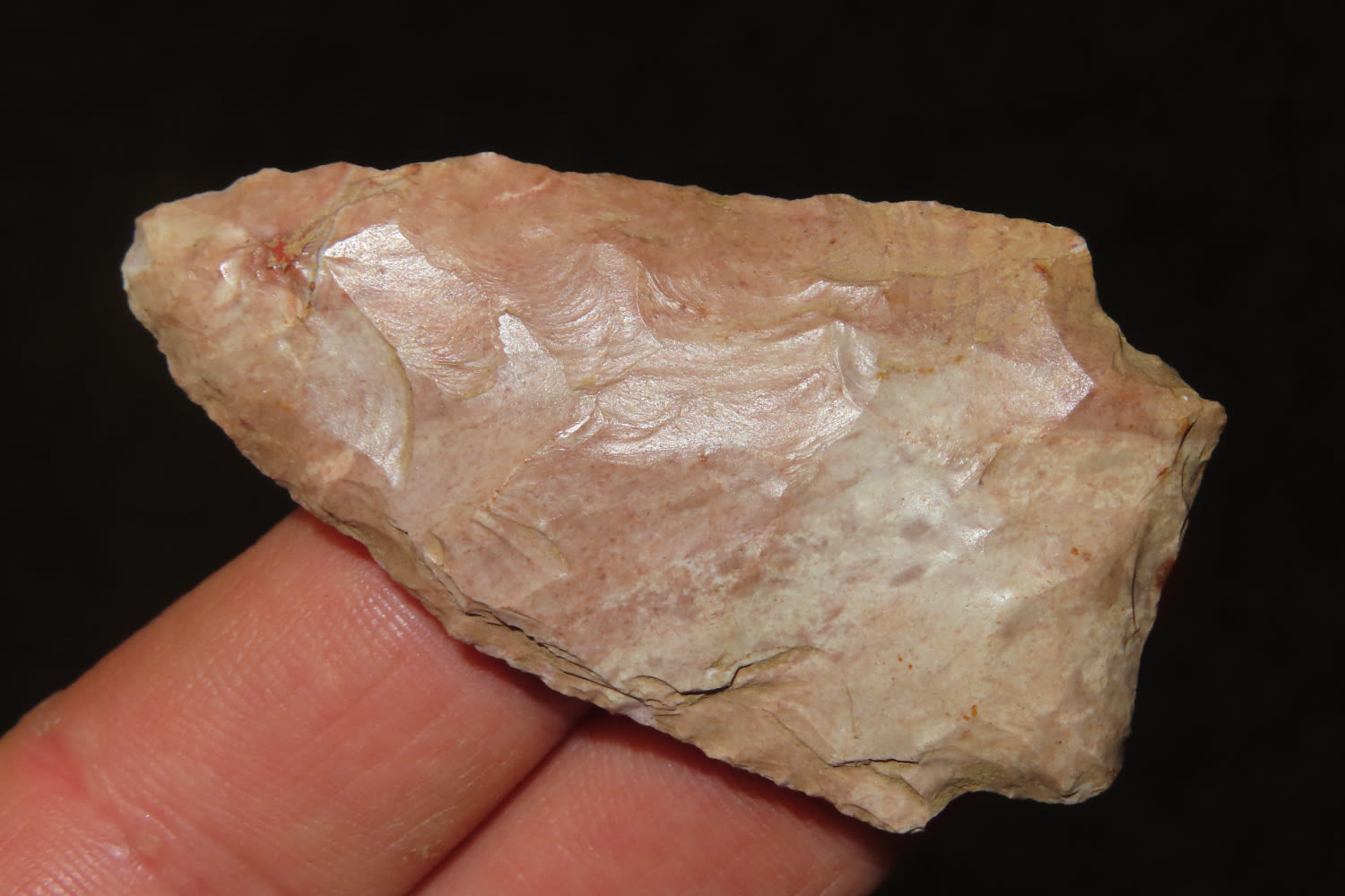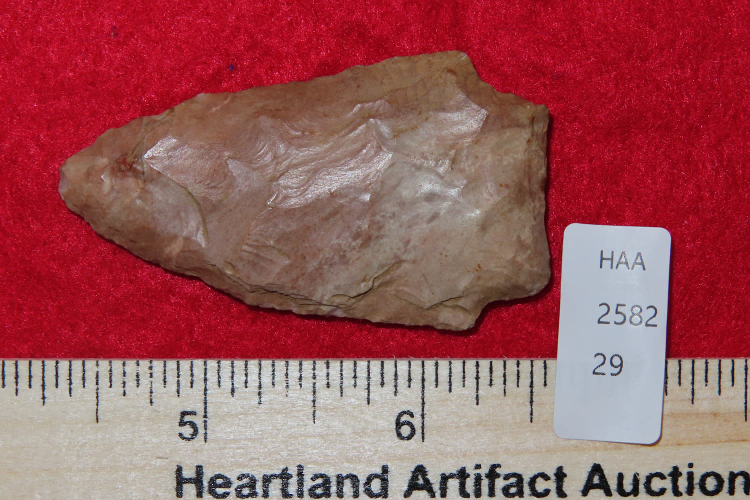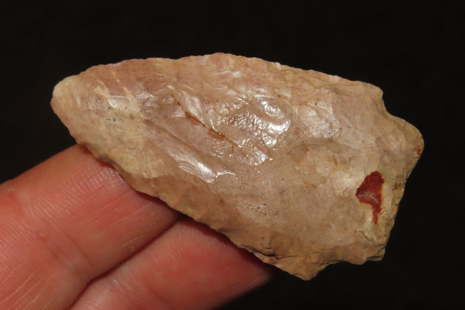 2 1/4″ Benton Broad Stemmed found in Mississippi. Great Color and Classic Form! Authentic Native American Arrowhead Artifact