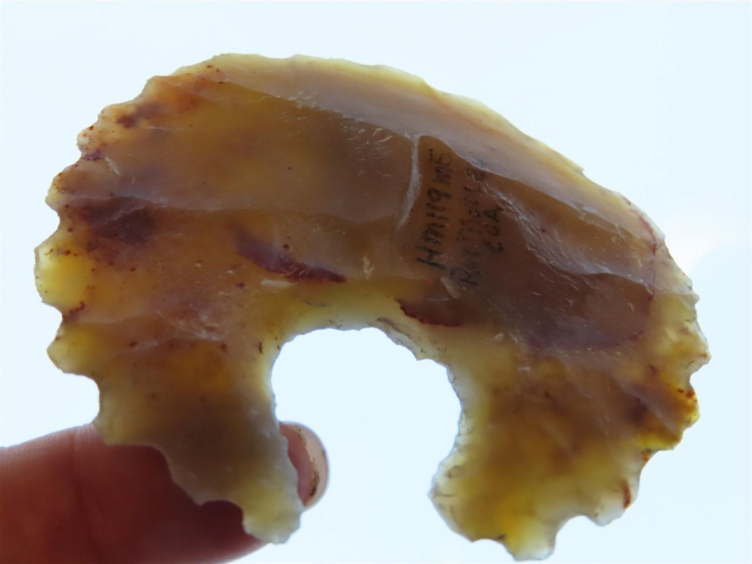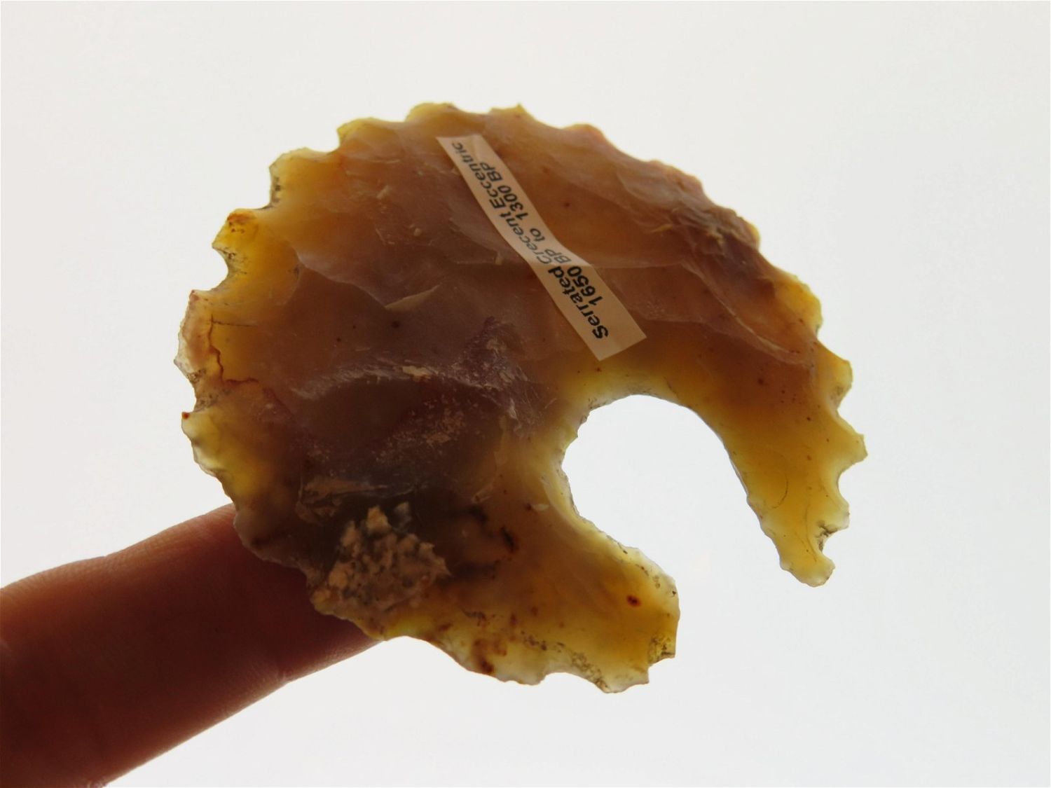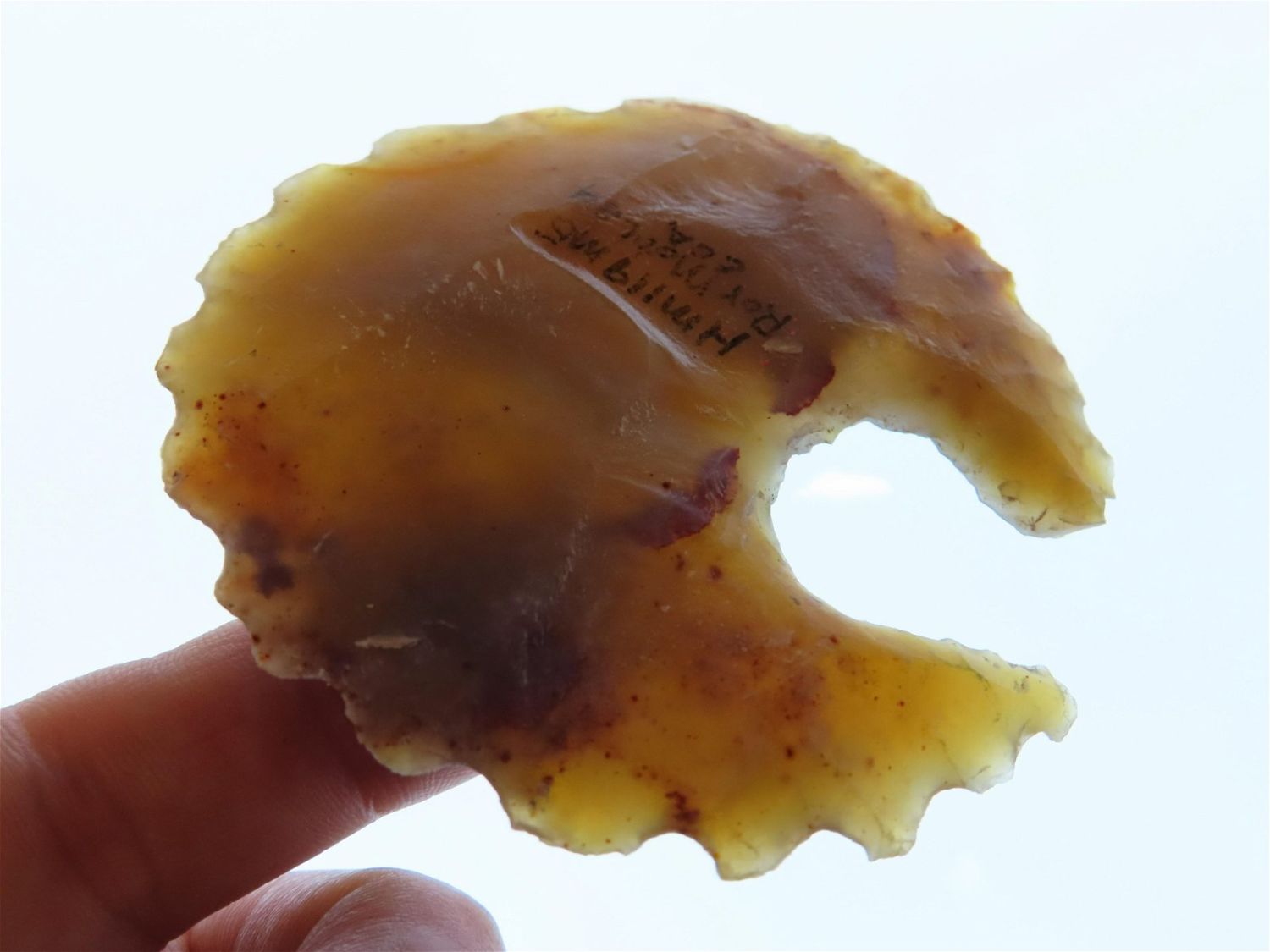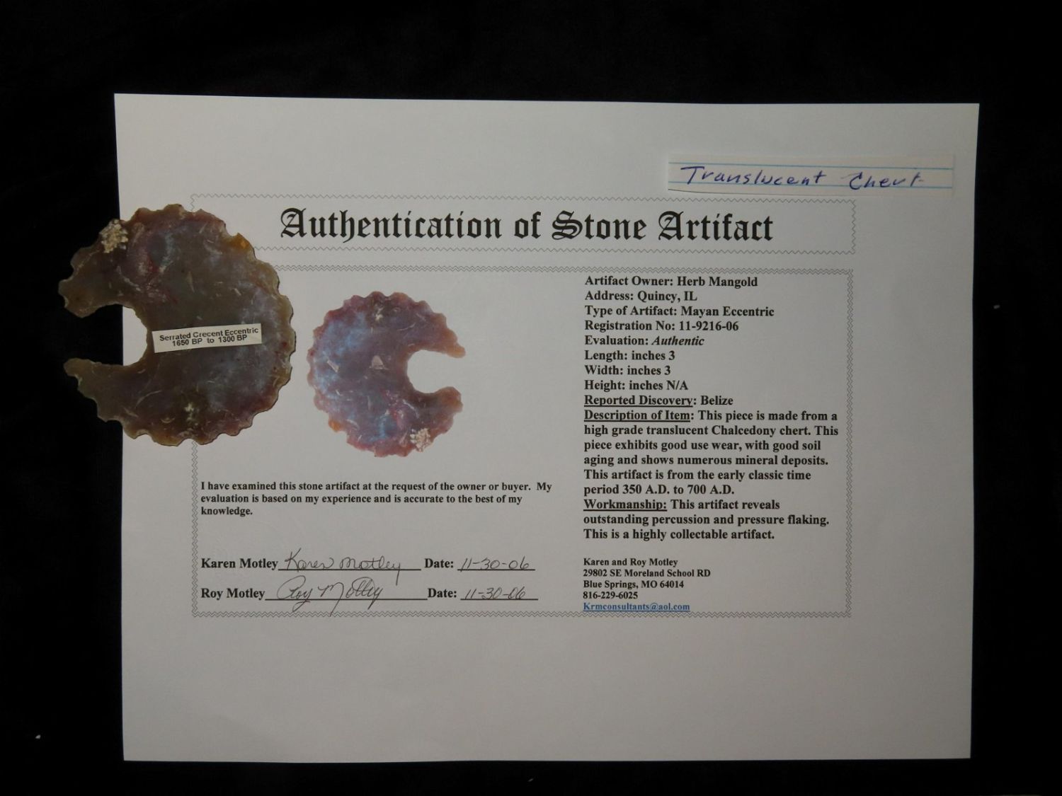 3″ Translucent Mayan Eccentric. Belize. Made of Chalcedony. COA: Roy Motley. EX Herb Mangold Collection from Quincy, Illinois