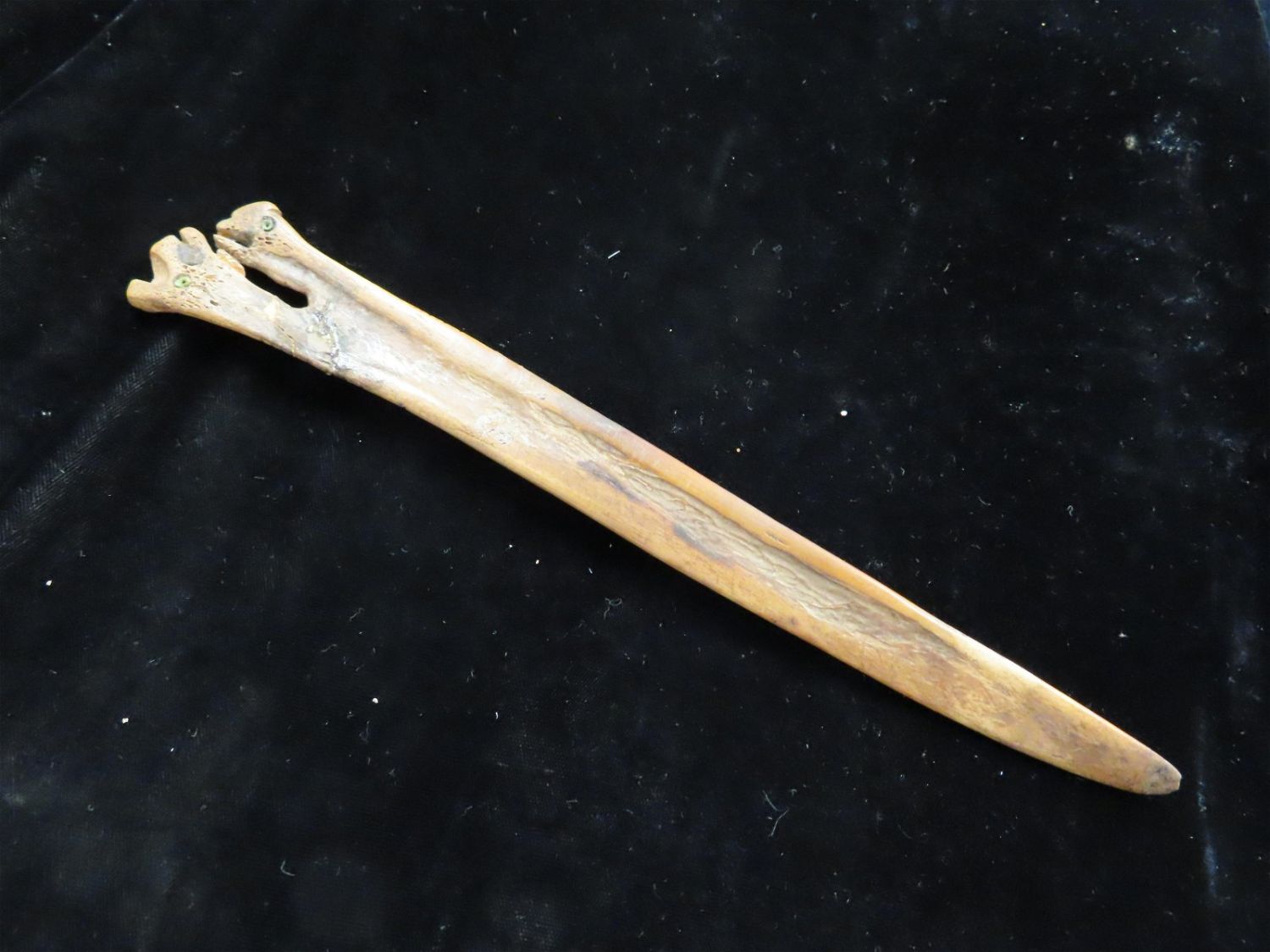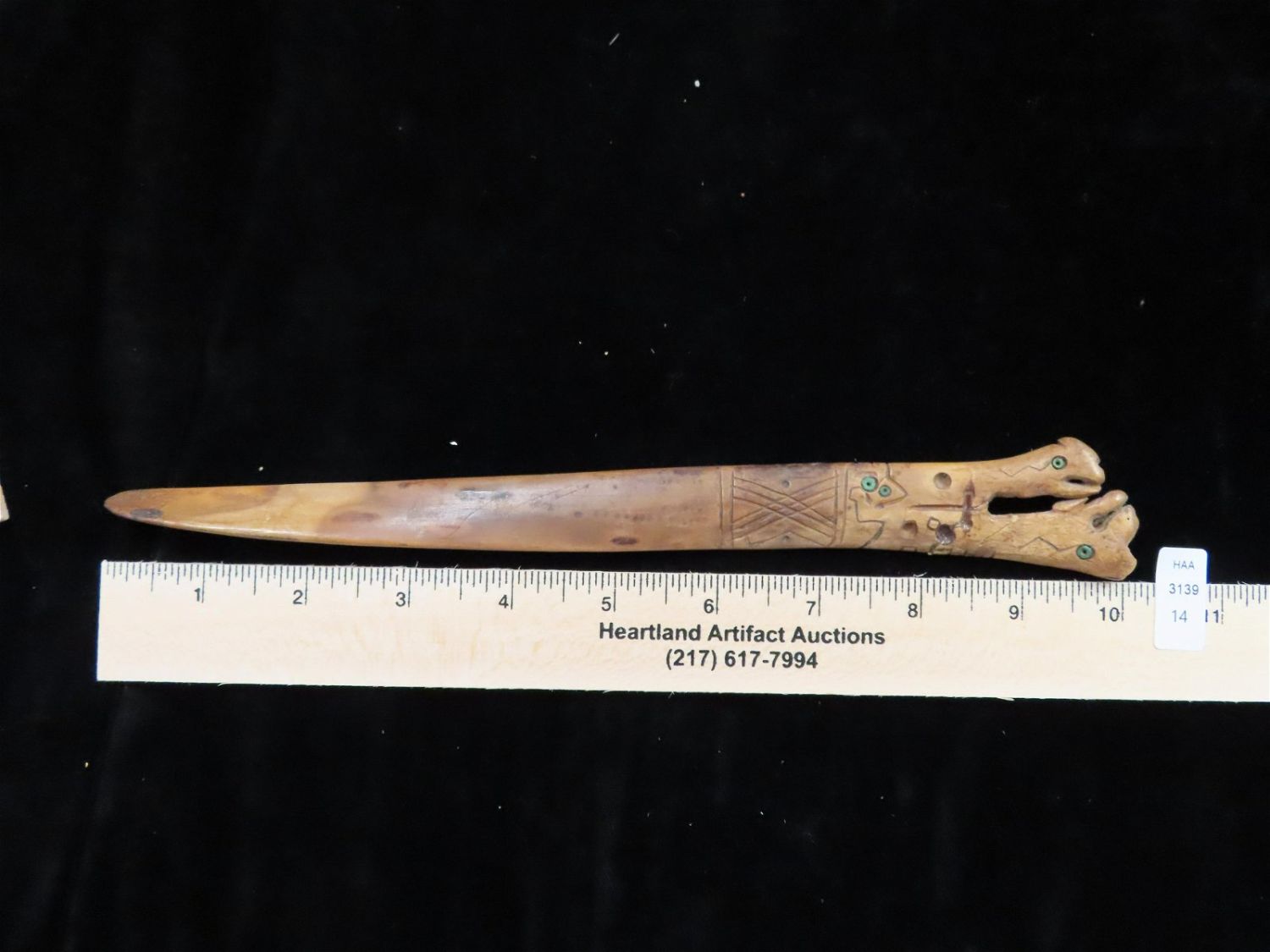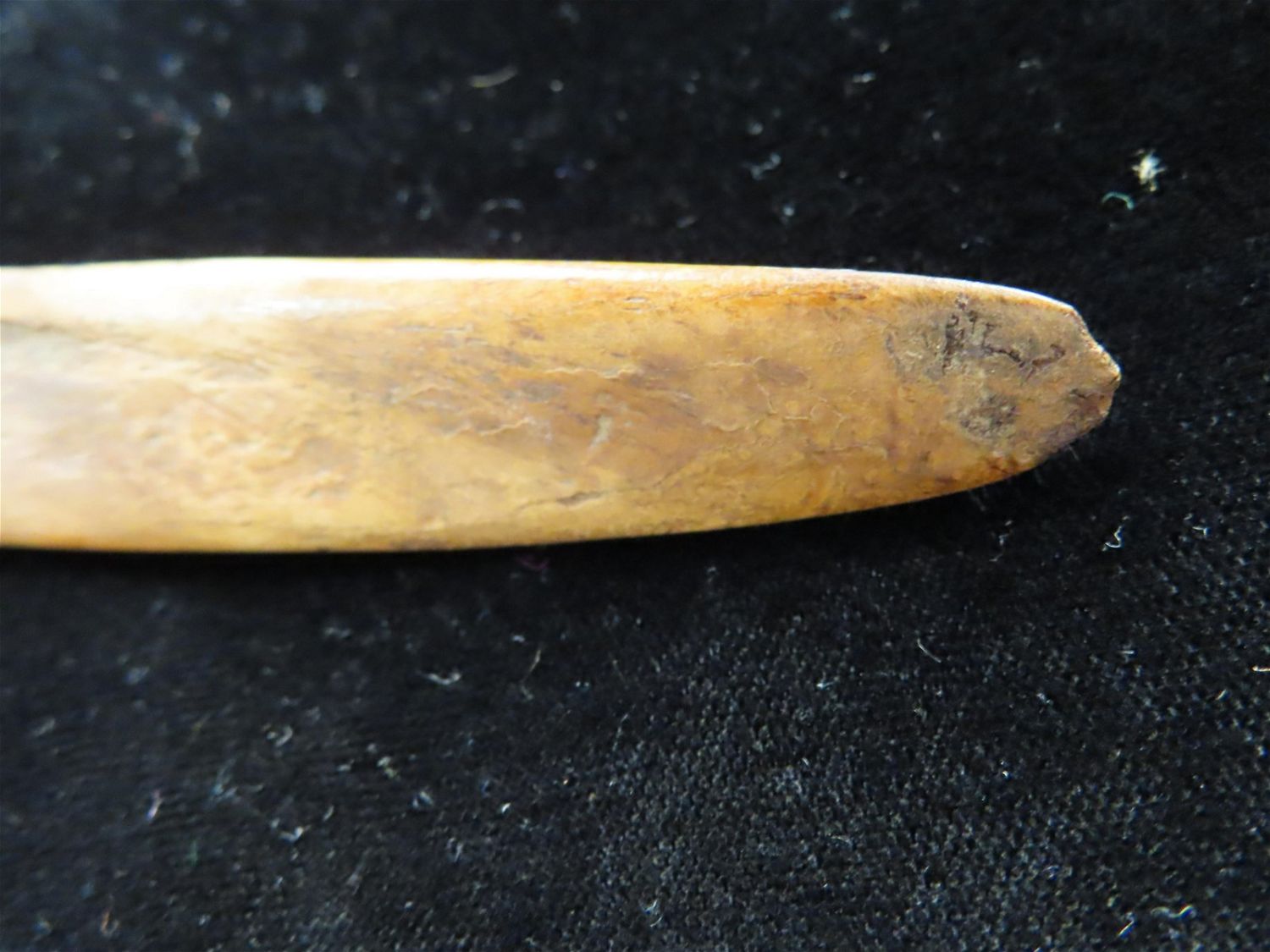 10 1/8″ Large Engraved Bone from the EX Tom Browner from Davenport, Iowa Collection