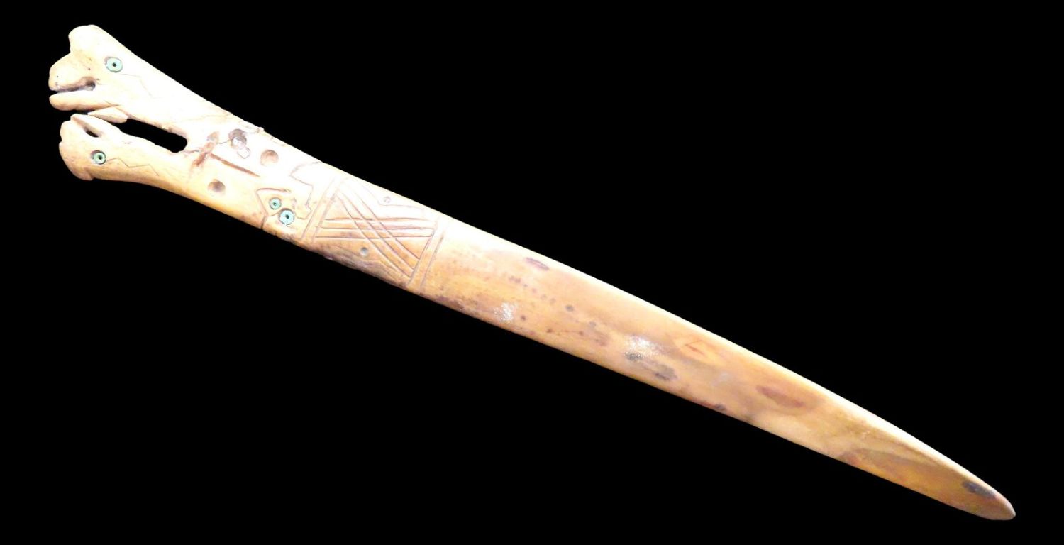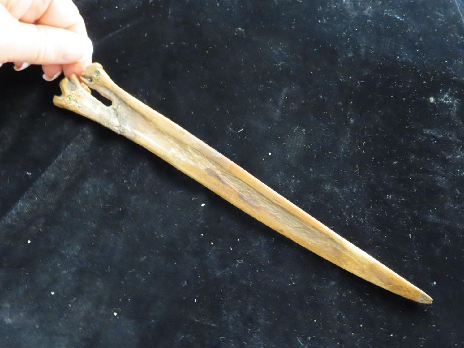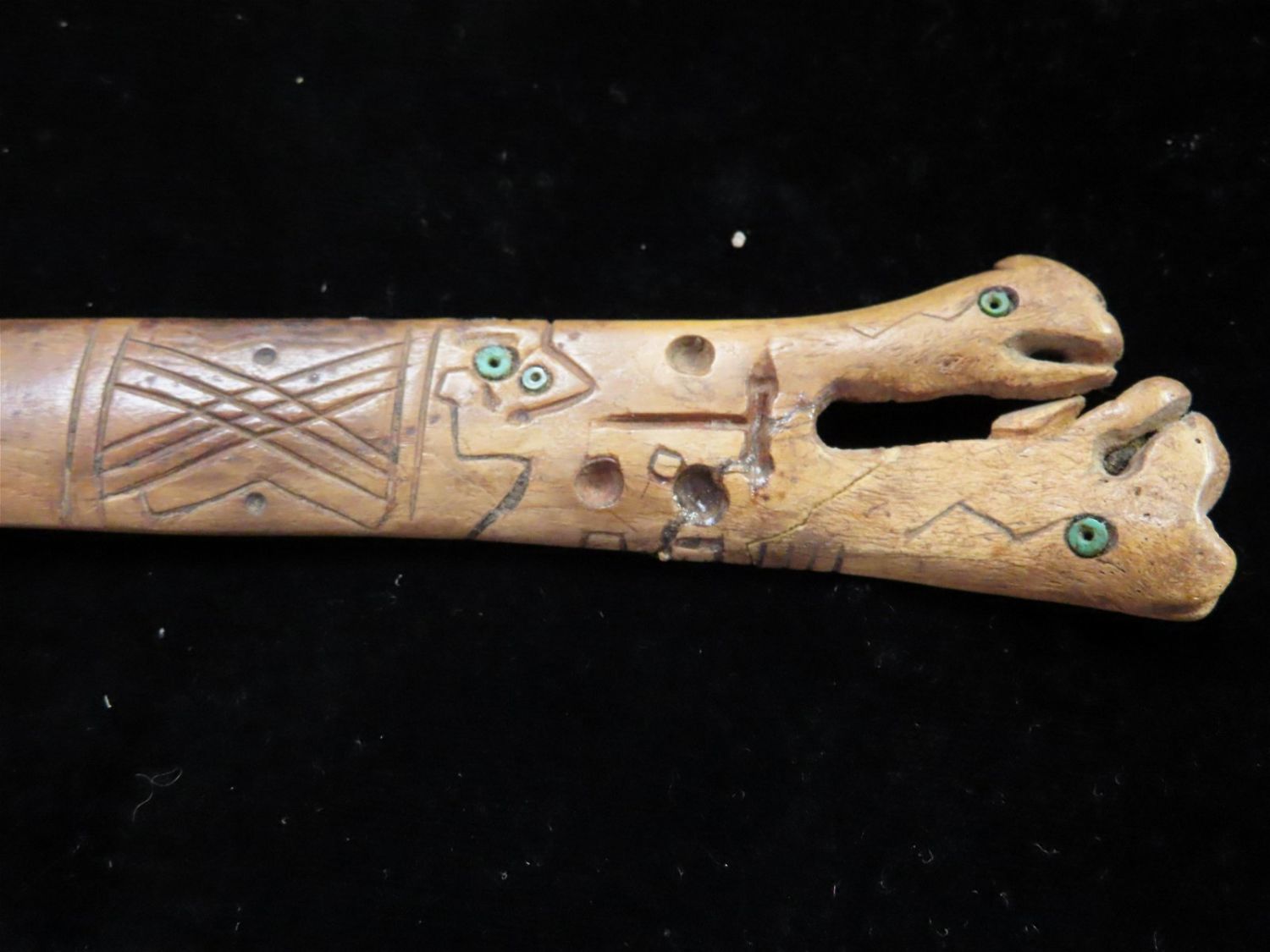 10 1/8″ Large Engraved Bone from the EX Tom Browner from Davenport, Iowa Collection