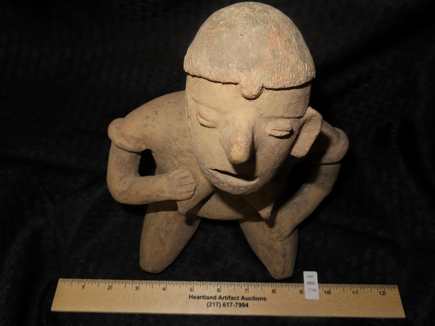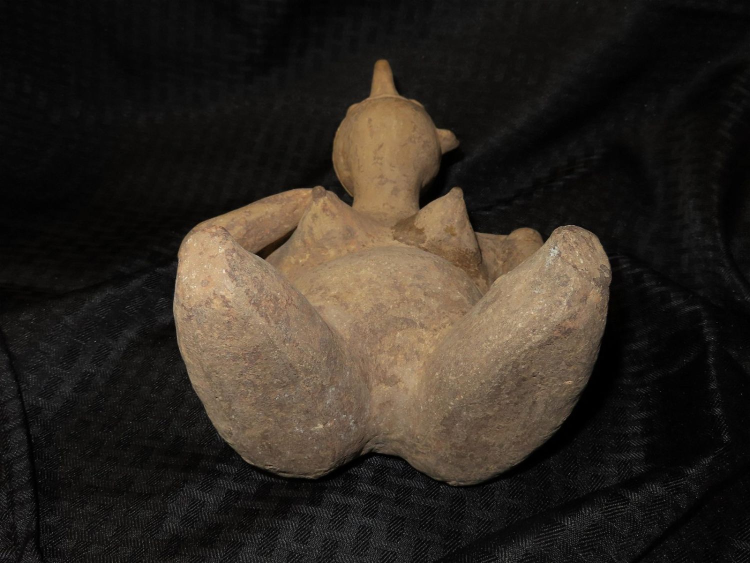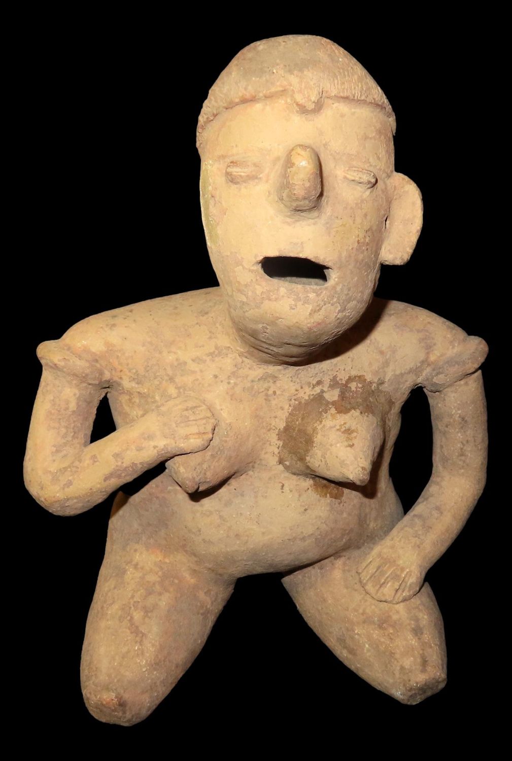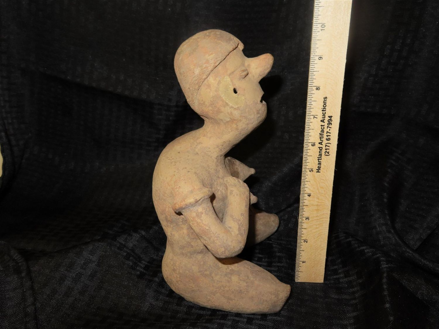 9 3/4″ x 7″ PRE-COLOMBIAN POTTERY FERTILITY GODDESS WITH LIGHT RESTORATION