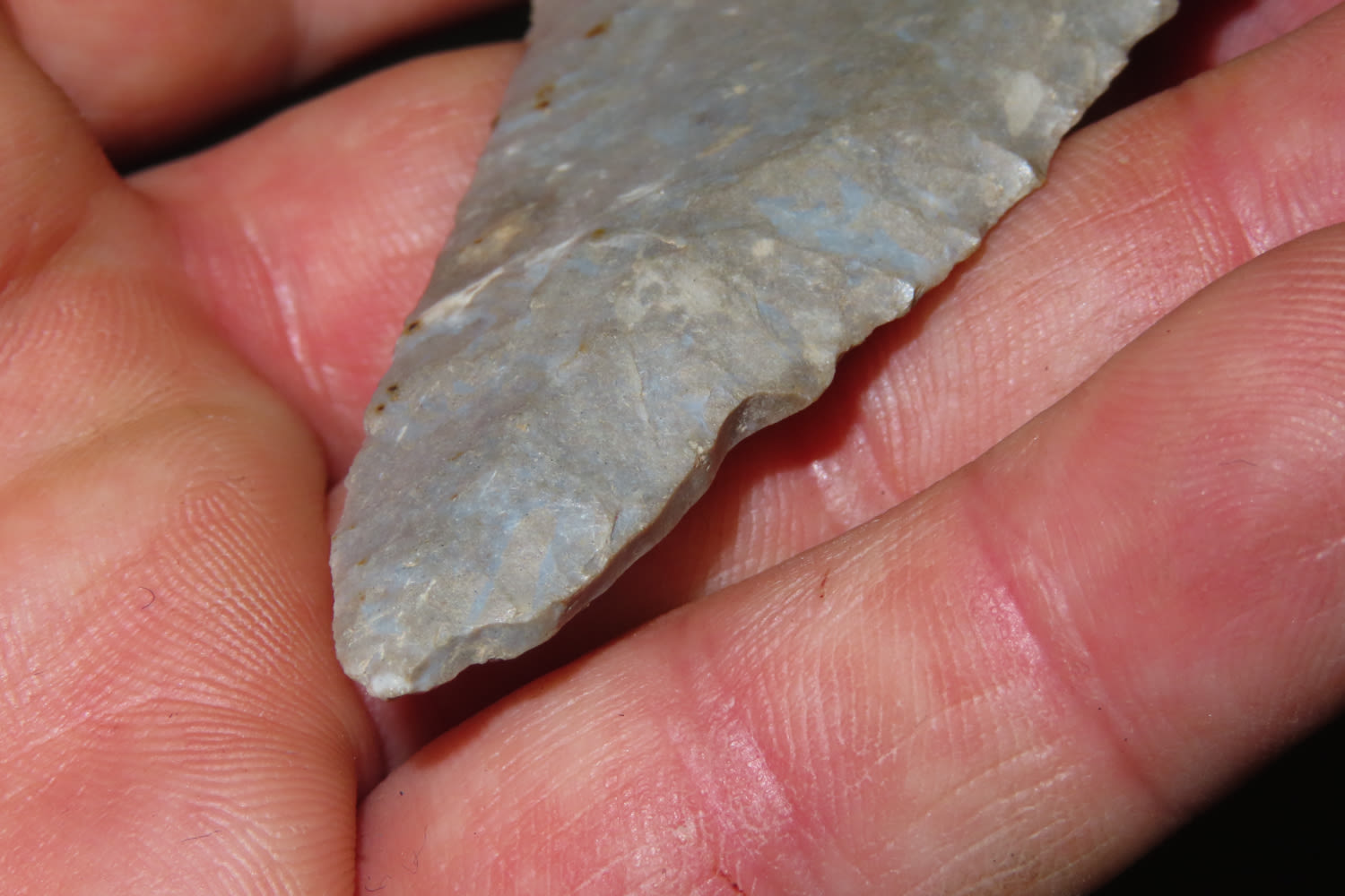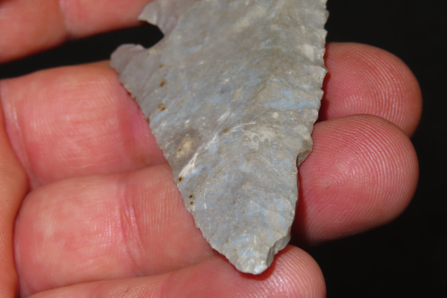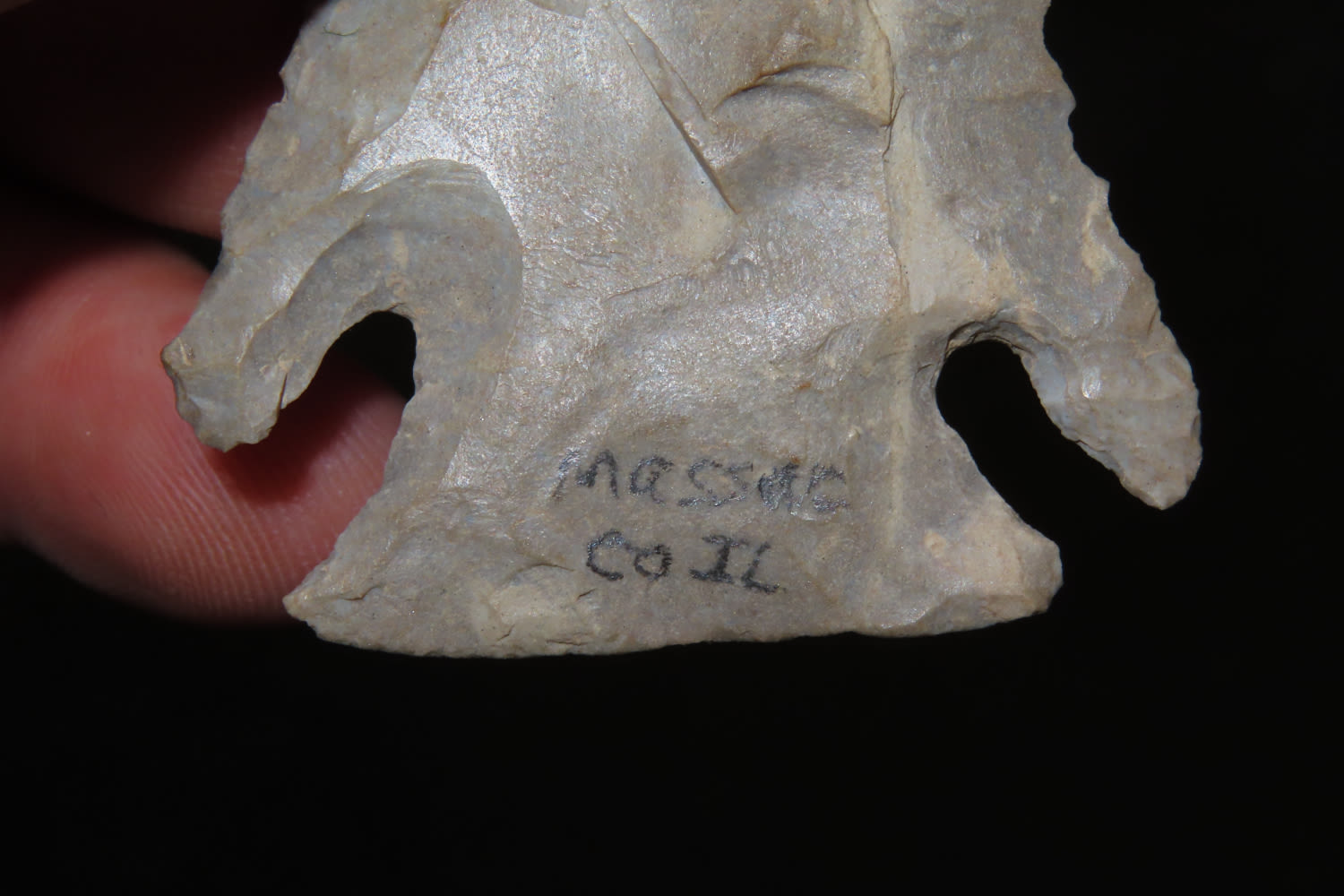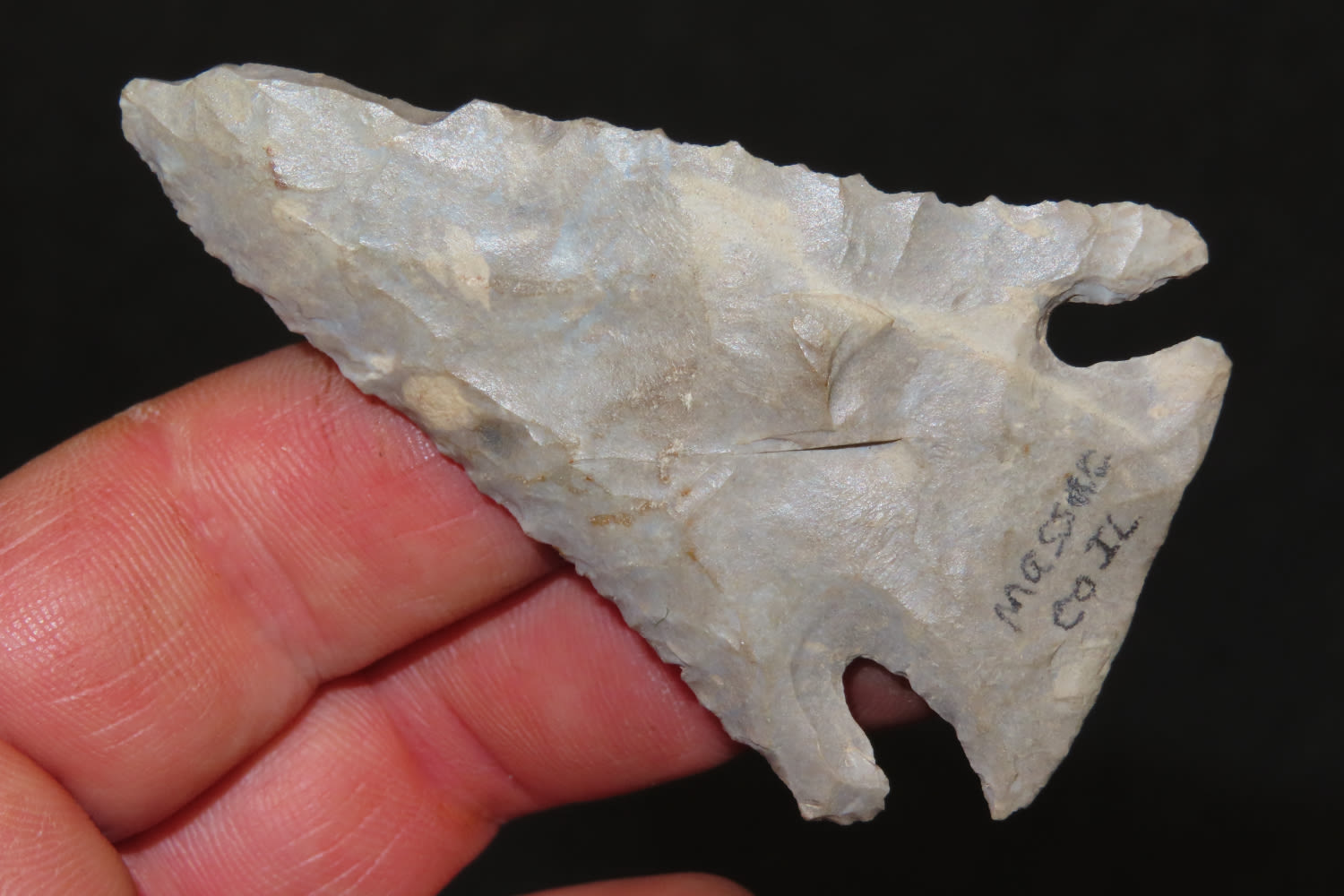 2 3/4″ Lost Lake Nicely Beveled Massac CO., IL. Burnated tip. from a private collection out of St. Louis, Missouri