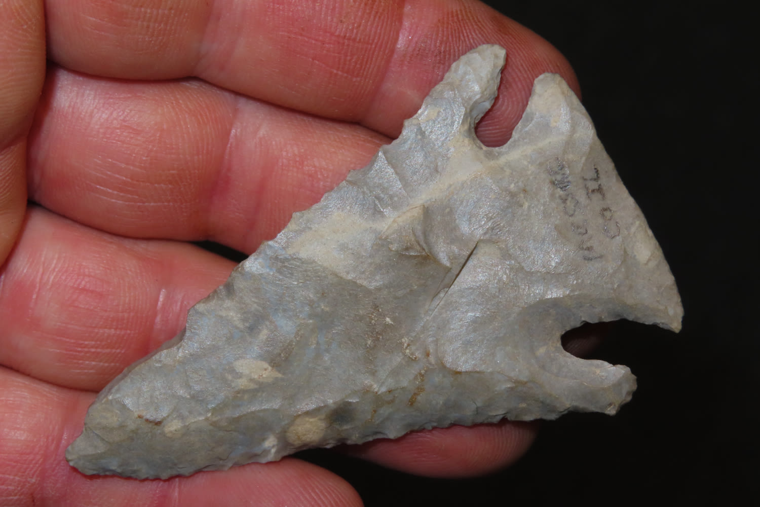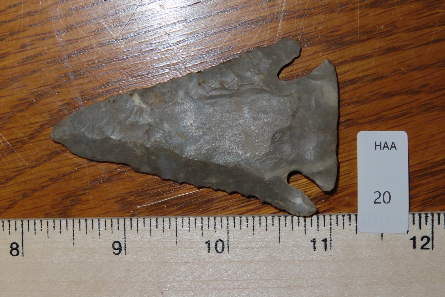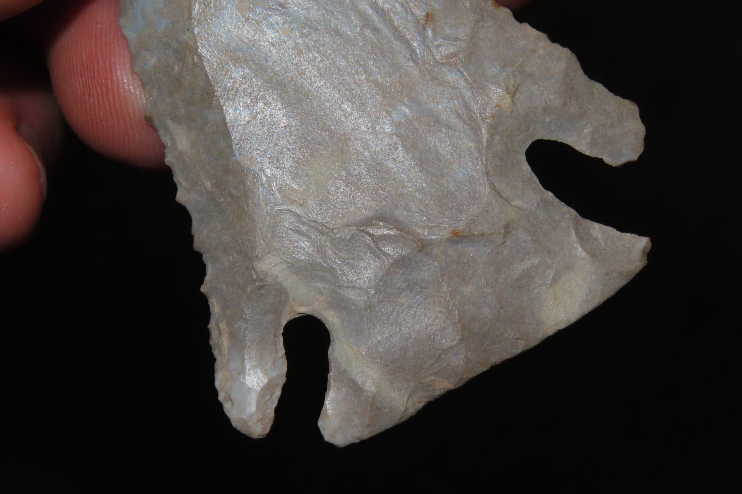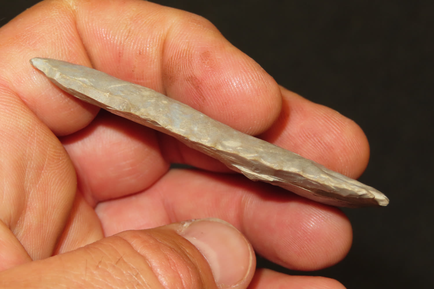 2 3/4″ Lost Lake Nicely Beveled Massac CO., IL. Burnated tip. from a private collection out of St. Louis, Missouri