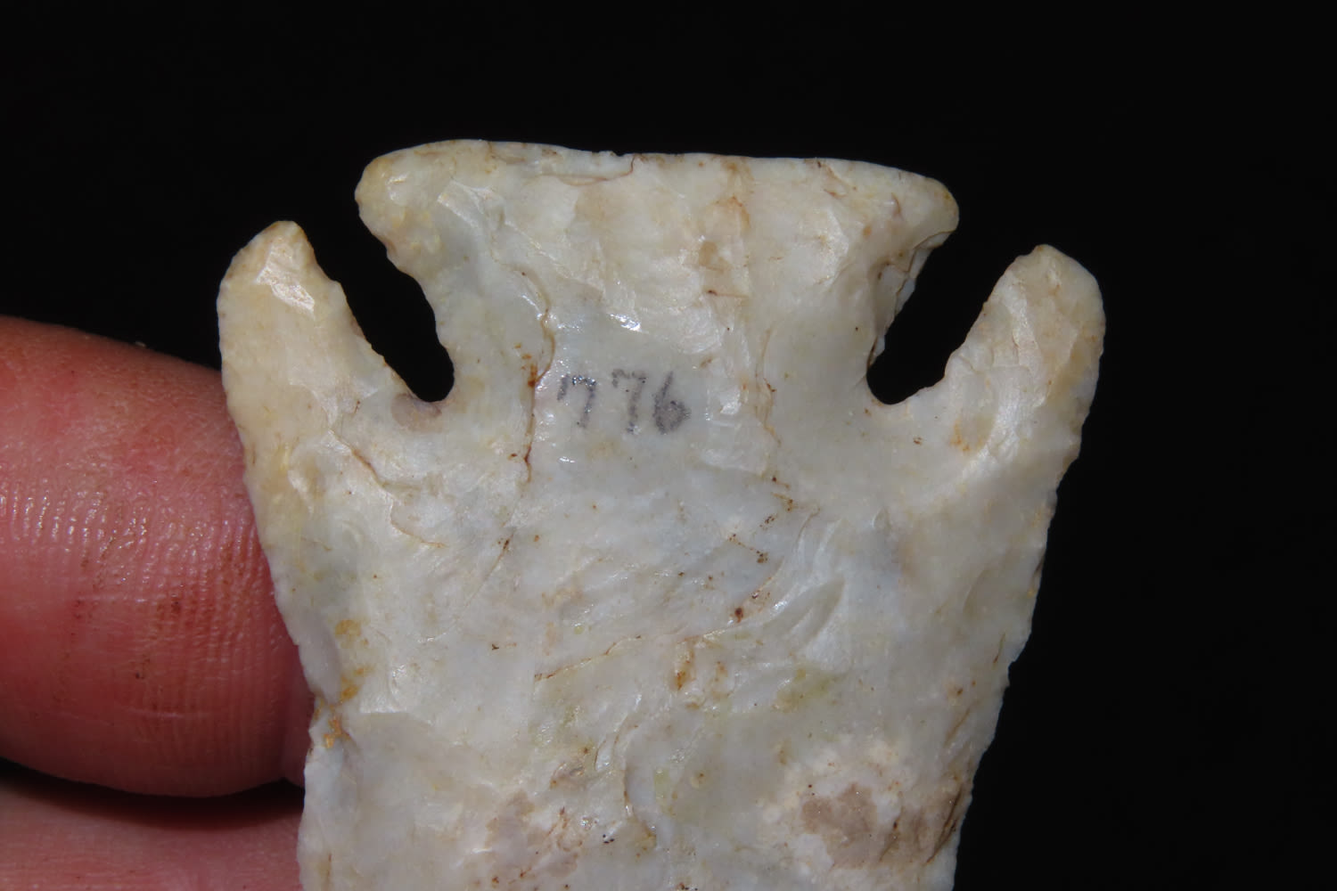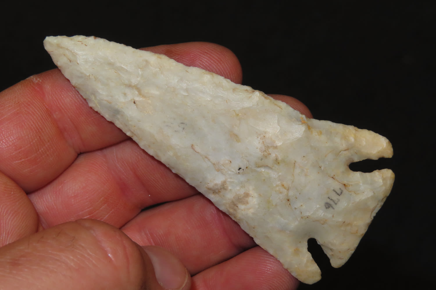 Sale Highlite, 3 3/8″ Pulaski Corner Notch. High Grade Relic, good size. Semi translucent Burlington. from a private collection out of St. Louis, Missouri
