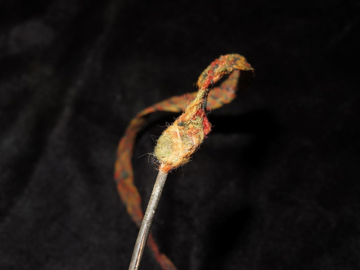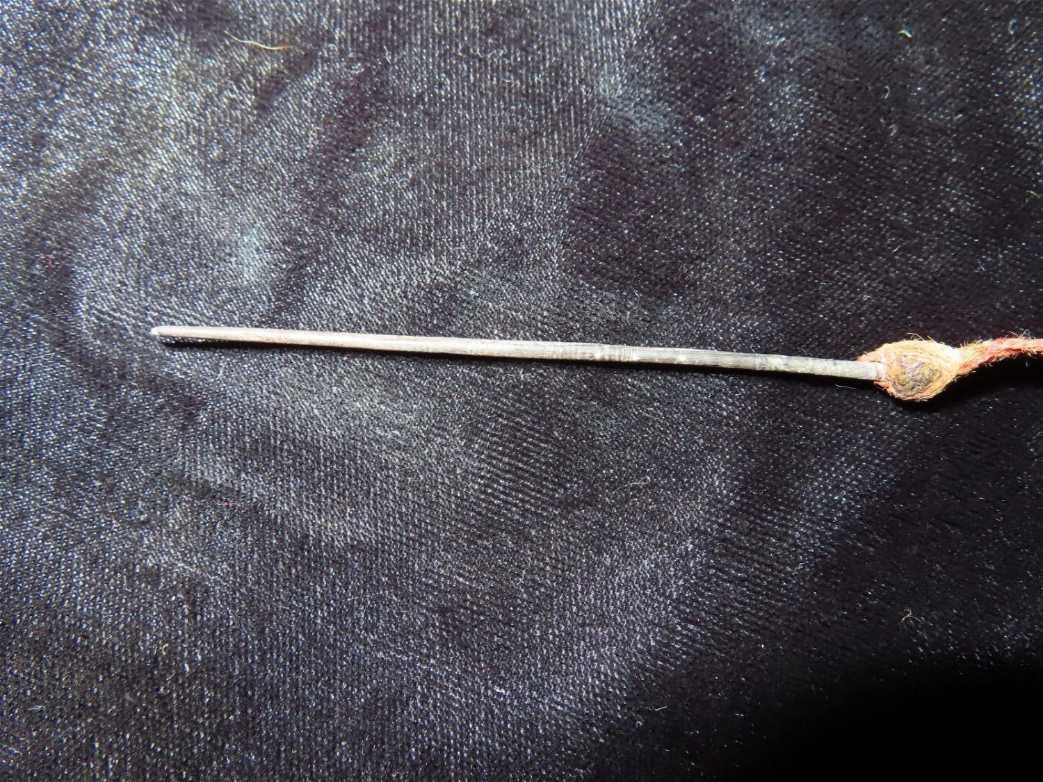 10 1/2″ Copper Sewing Needle with Braided Thread from the EX Tom Browner from Davenport, Iowa Collection