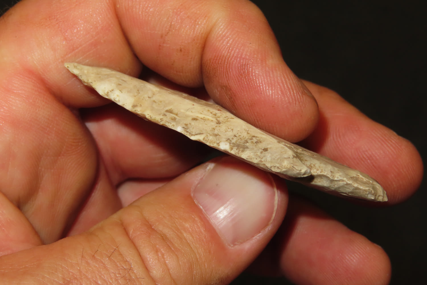 2 1/2″ Hardin with steep bevels, made of Avon Chert. from a private collection out of St. Louis, Missouri