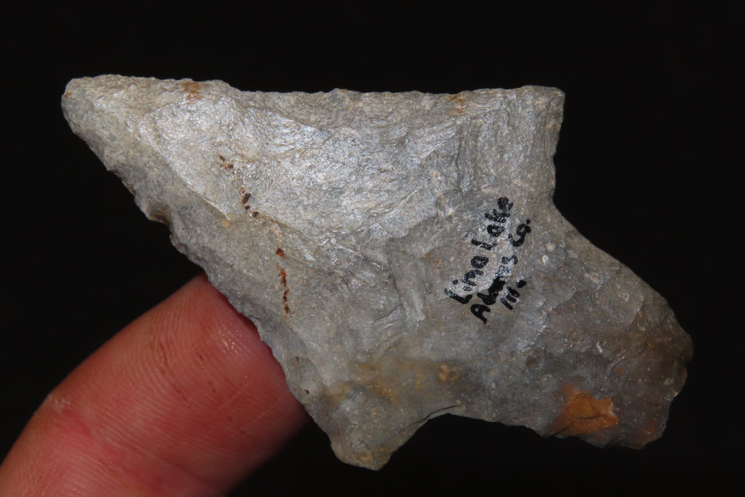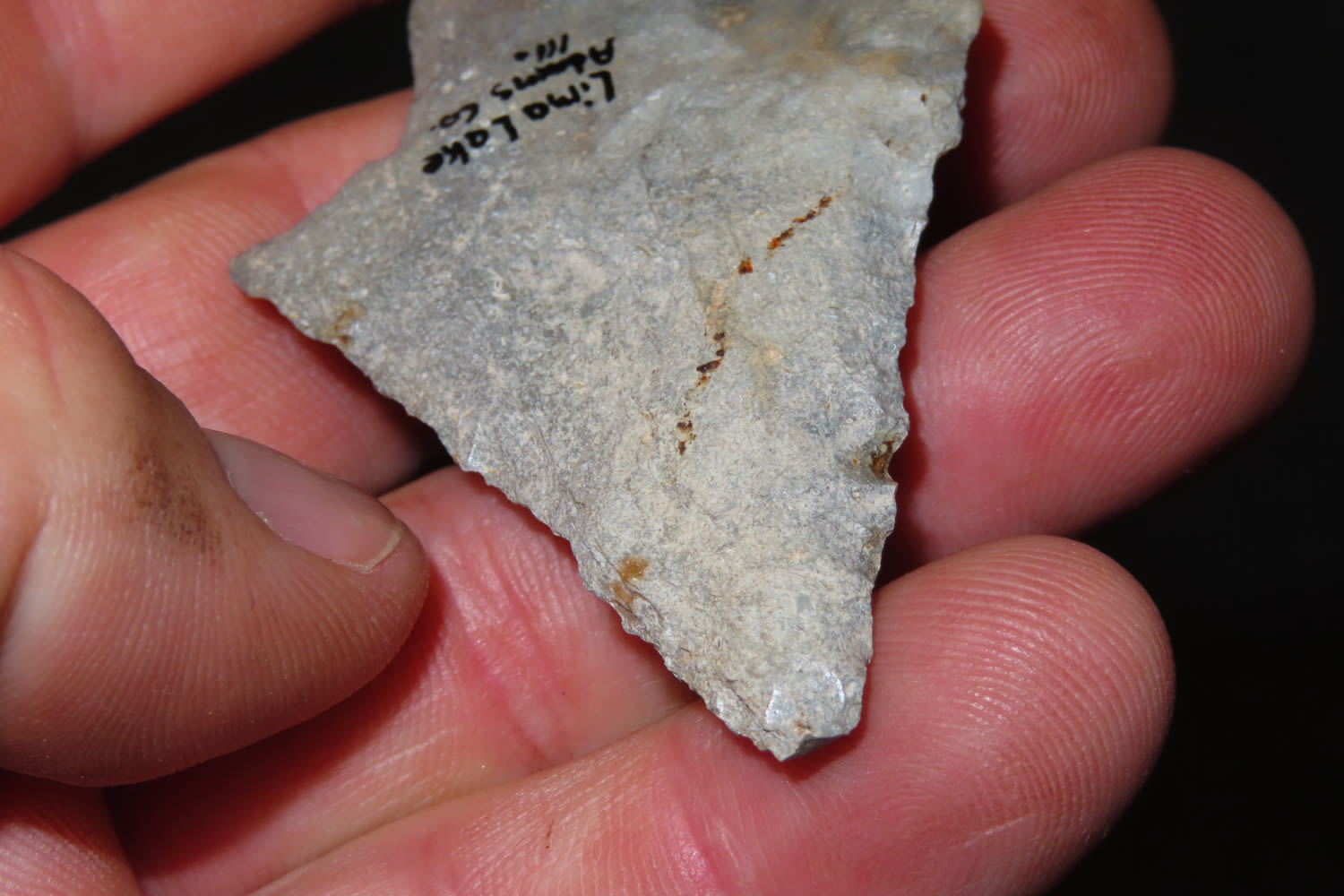 2 3/4″ Flaired Ear Dickson. Found in Lima Lake Adams CO, IL. from a private collection out of St. Louis, Missouri