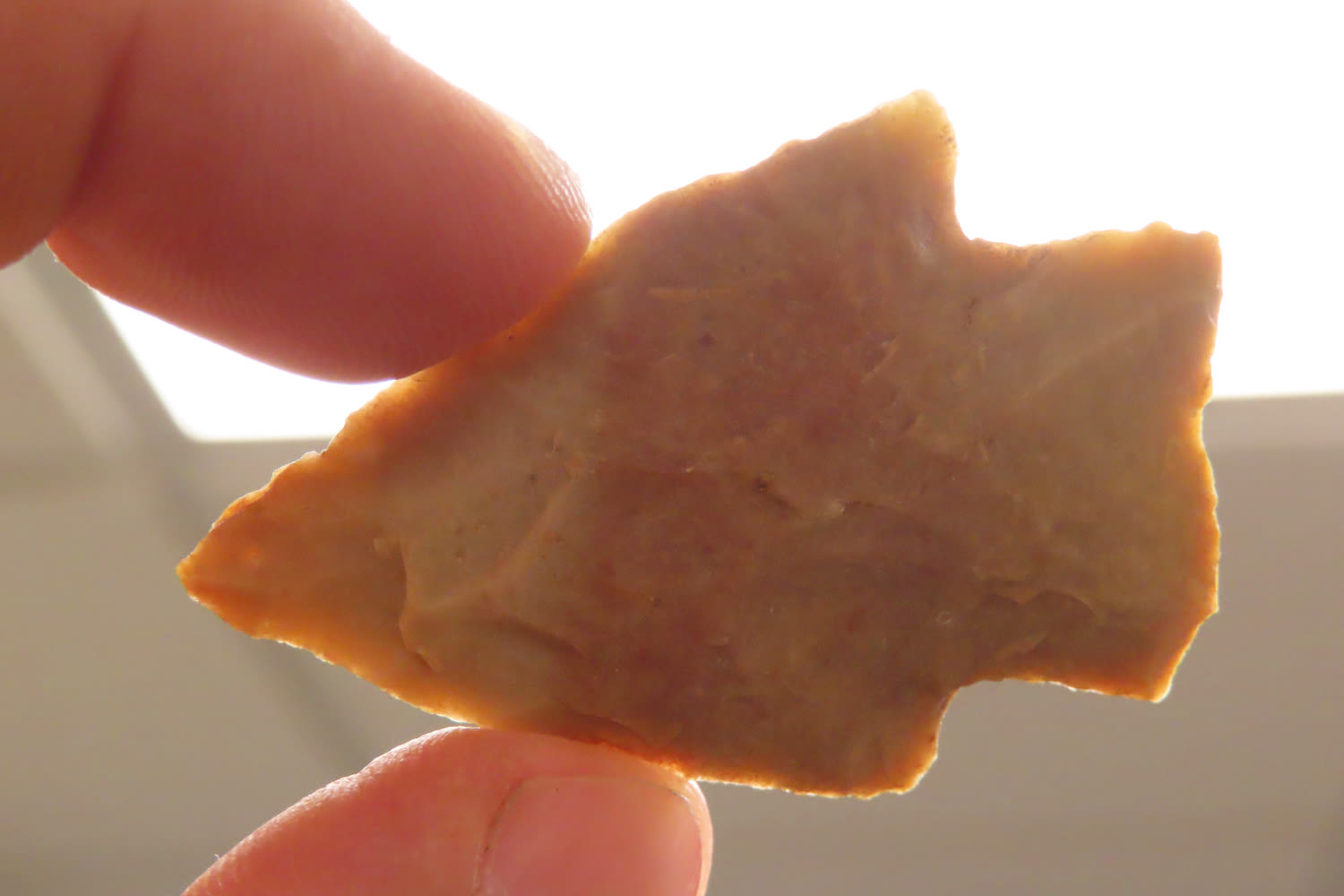 NICE AUTHENTIC ARROWHEAD FROM THE MIDWEST, CLEAN UP AUCTION, PLEASE LOOK AT PHOTOS FOR SIZE TYPE AND MATERIAL.
