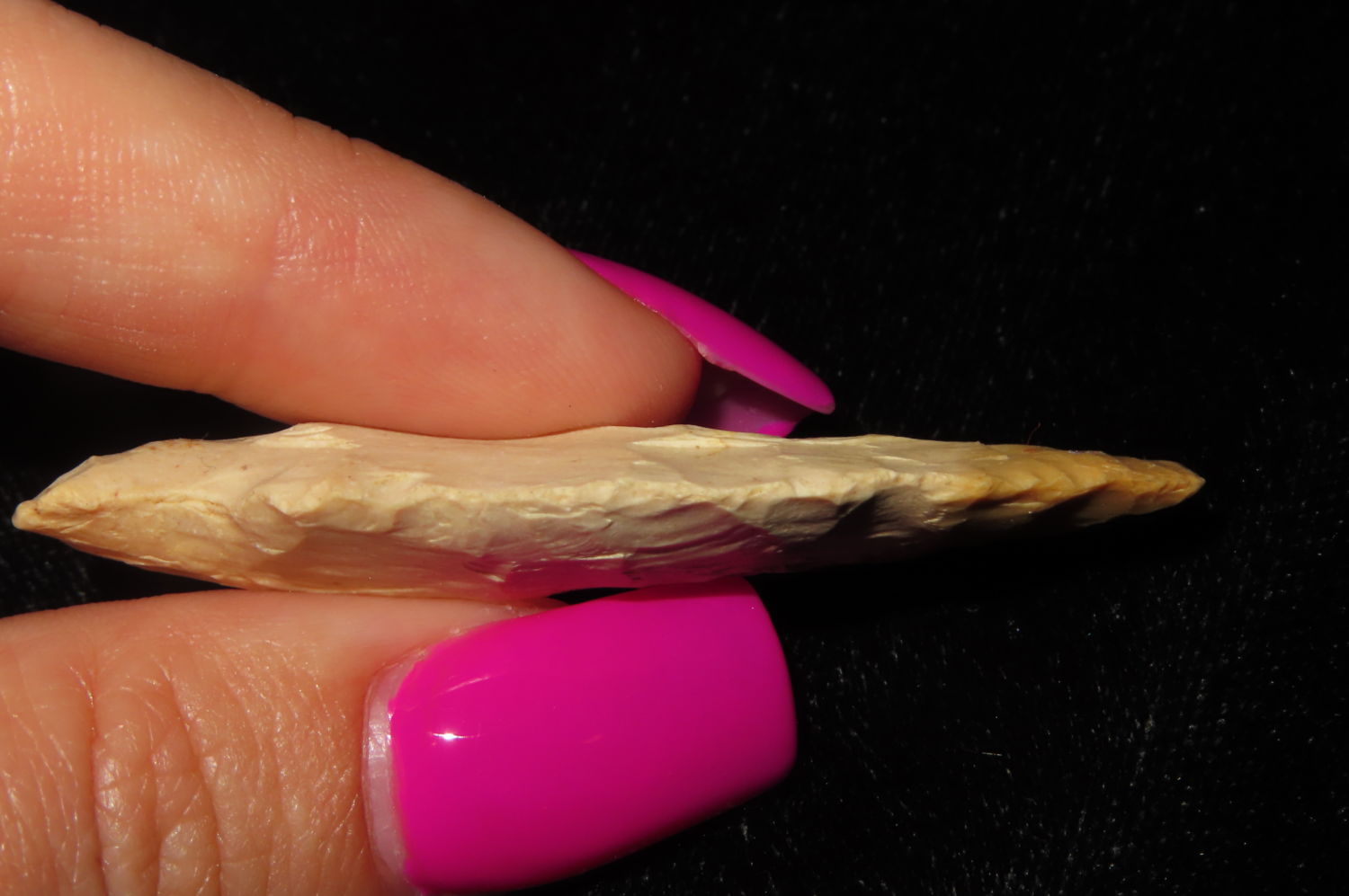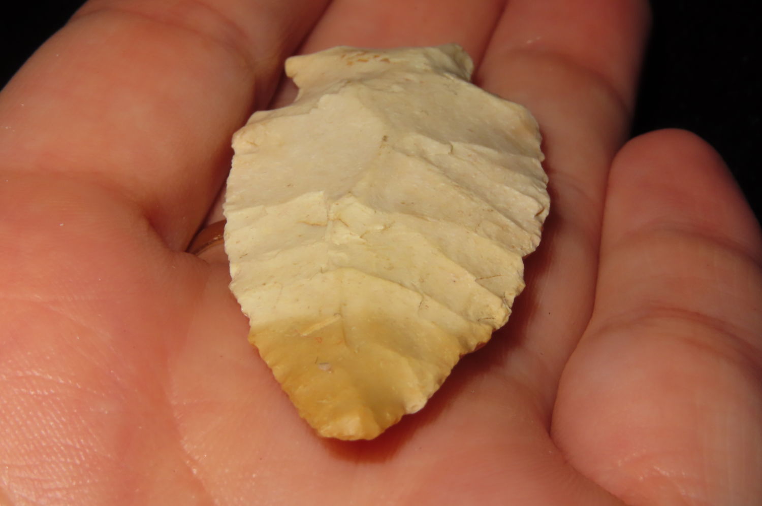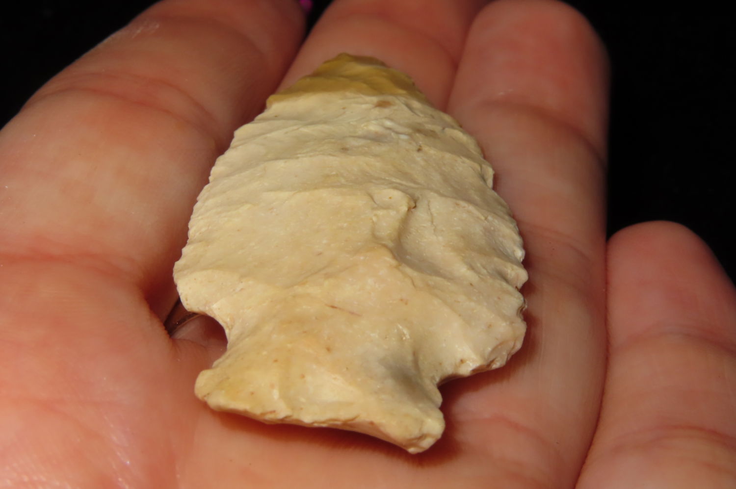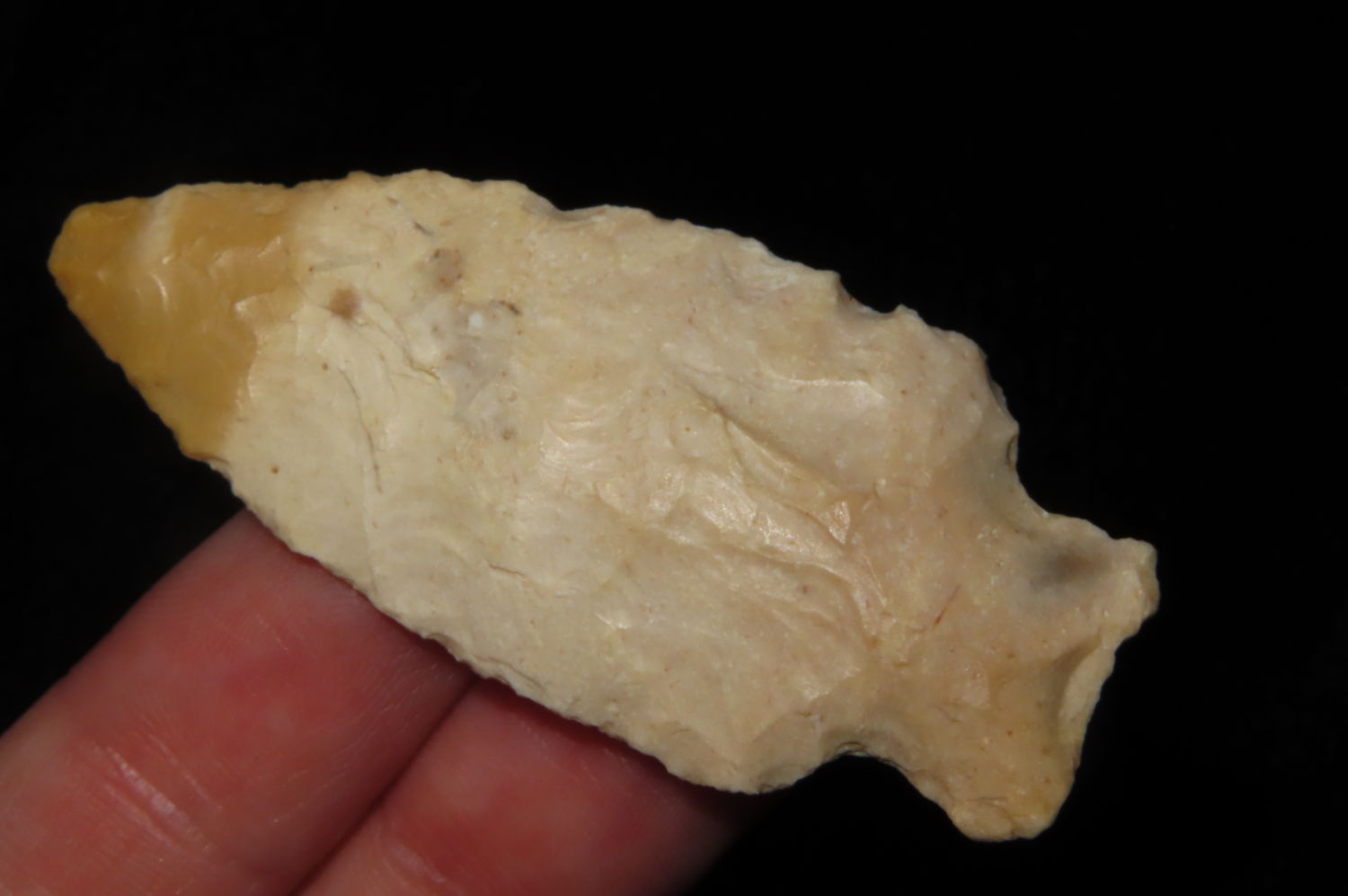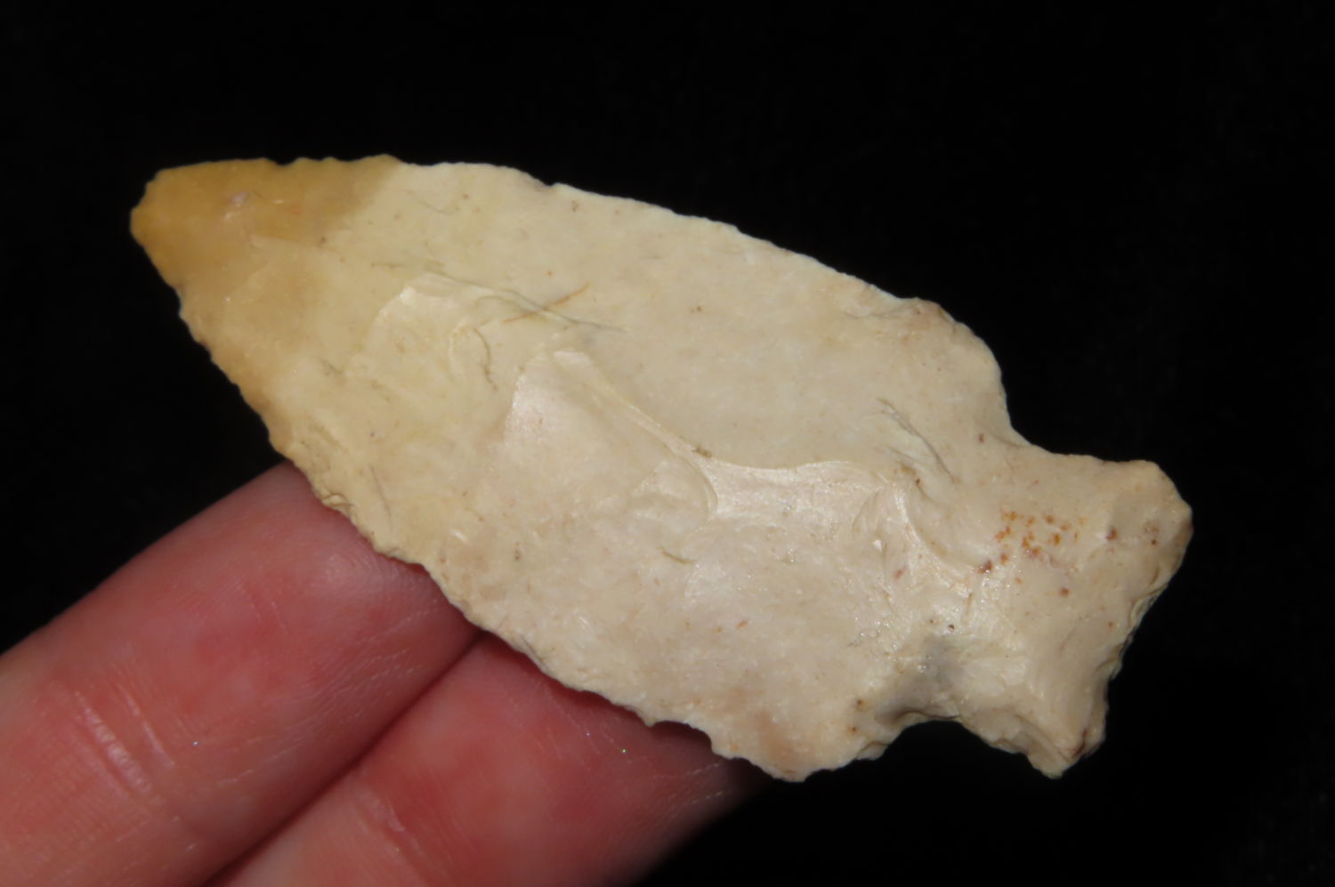 Stemmed Point. This relic was collected by Steve McCabe. He lived in Milan Missouri and purchased from local collectors. Sullivan County Missouri. Collected from 1984 to 2022. The striking majority of the finds were Creek finds due to the amount of local