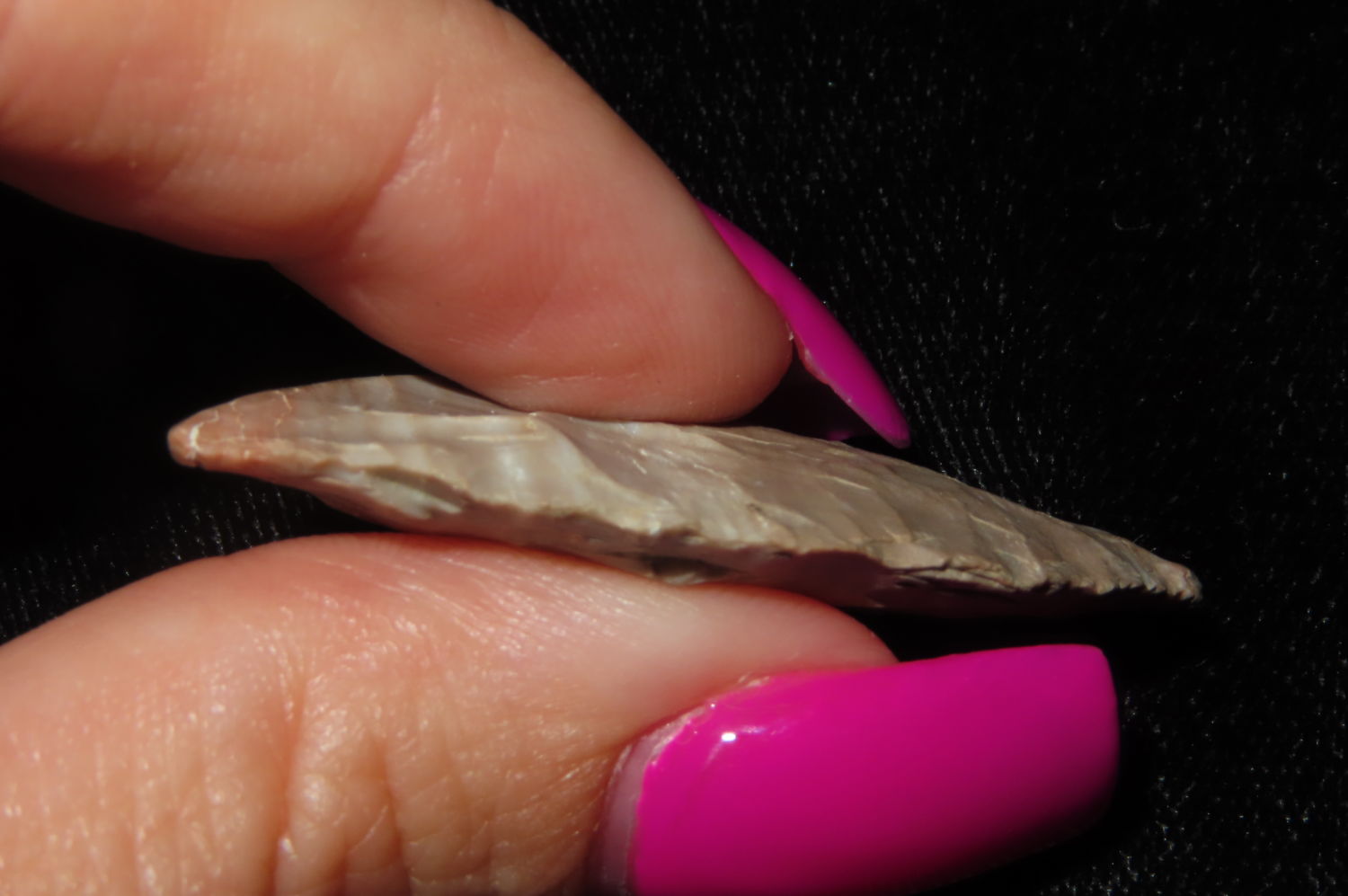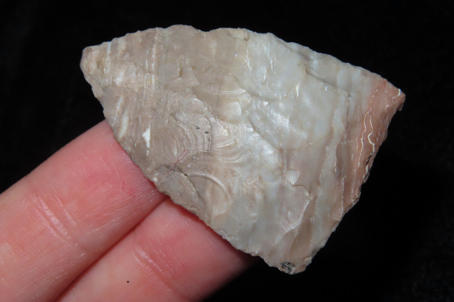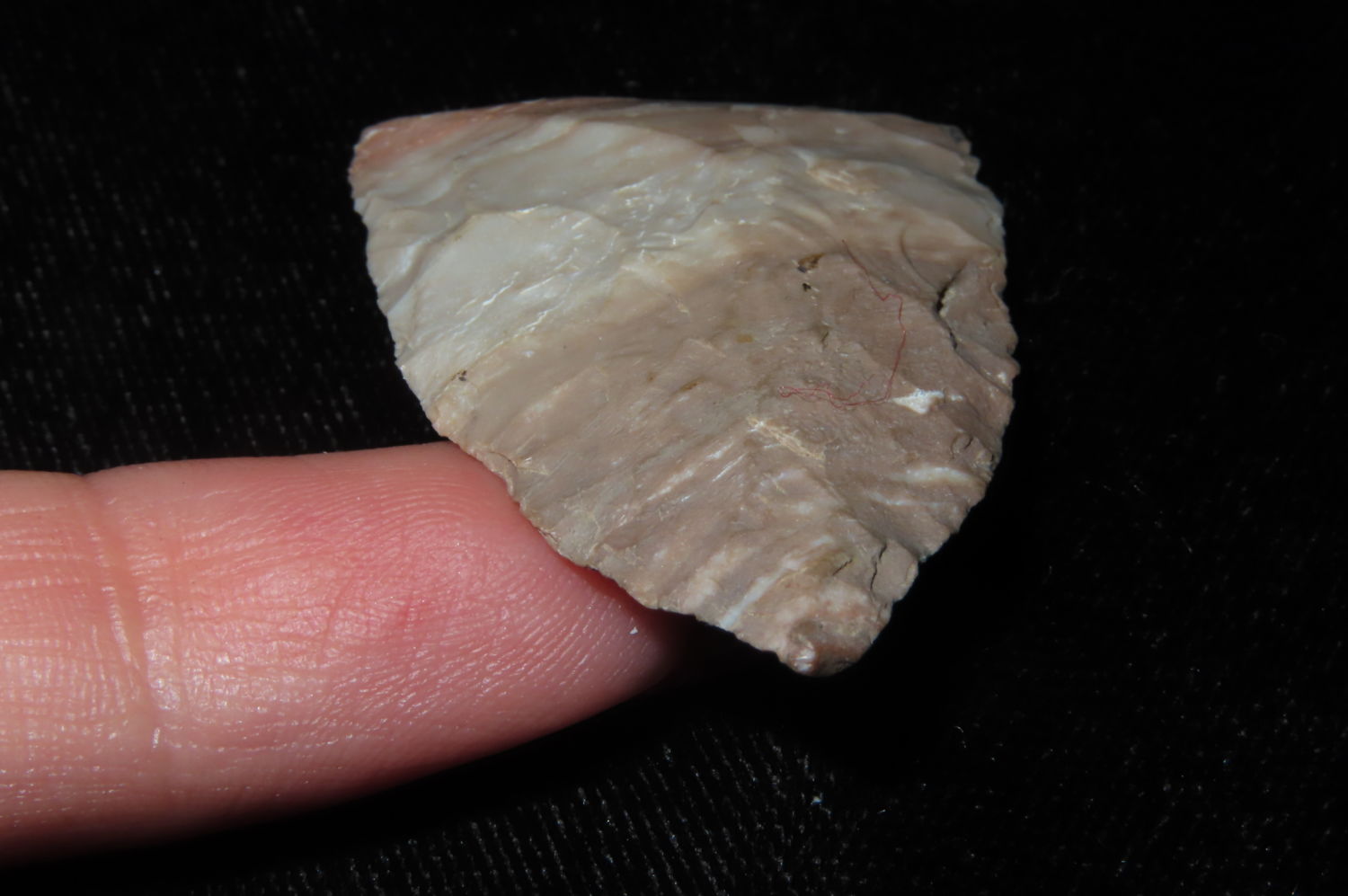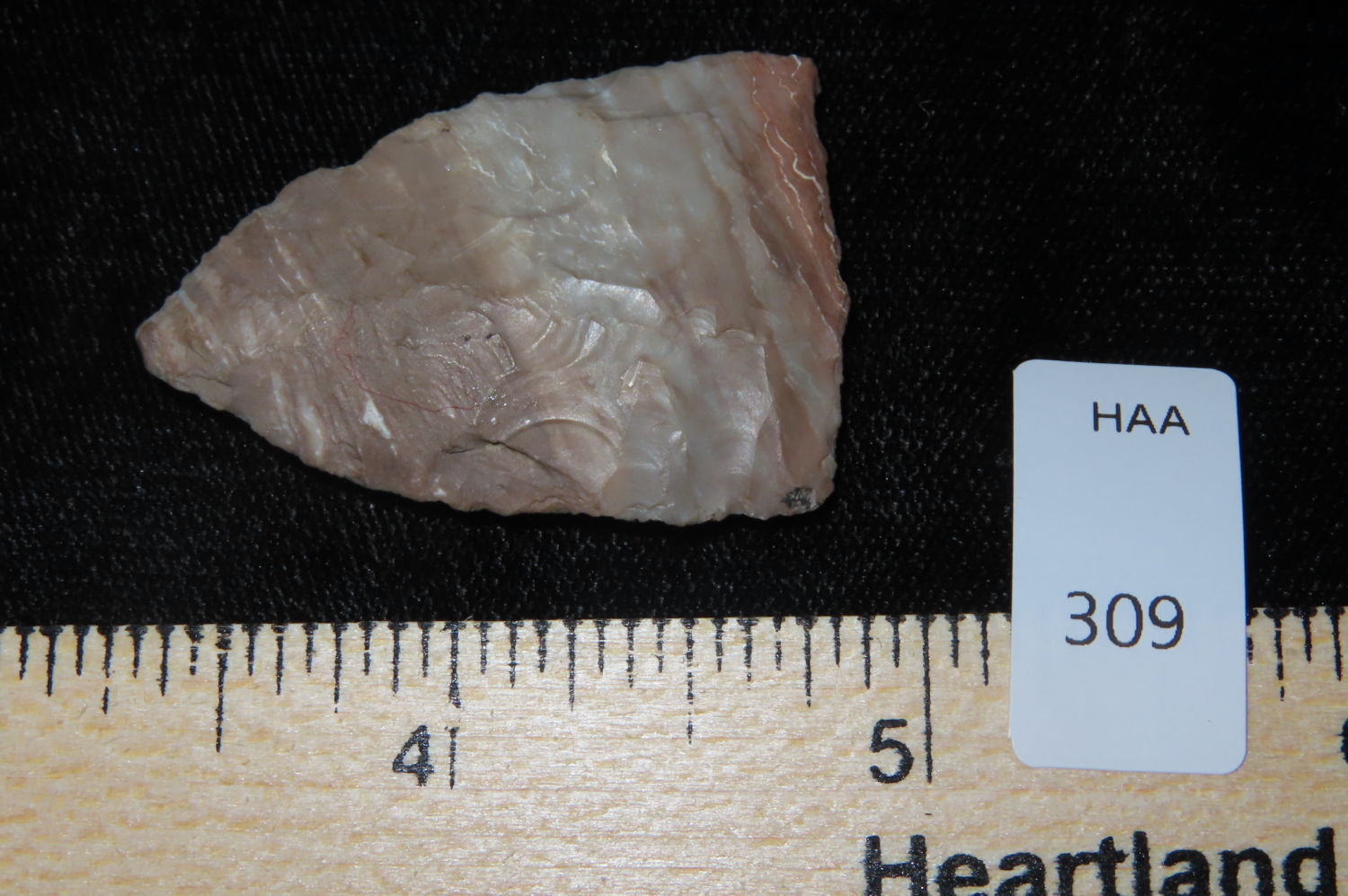 Colorful Triangle. This relic was collected by Steve McCabe. He lived in Milan Missouri and purchased from local collectors. Sullivan County Missouri. Collected from 1984 to 2022. The striking majority of the finds were Creek finds due to the amount of local creeks in the area.