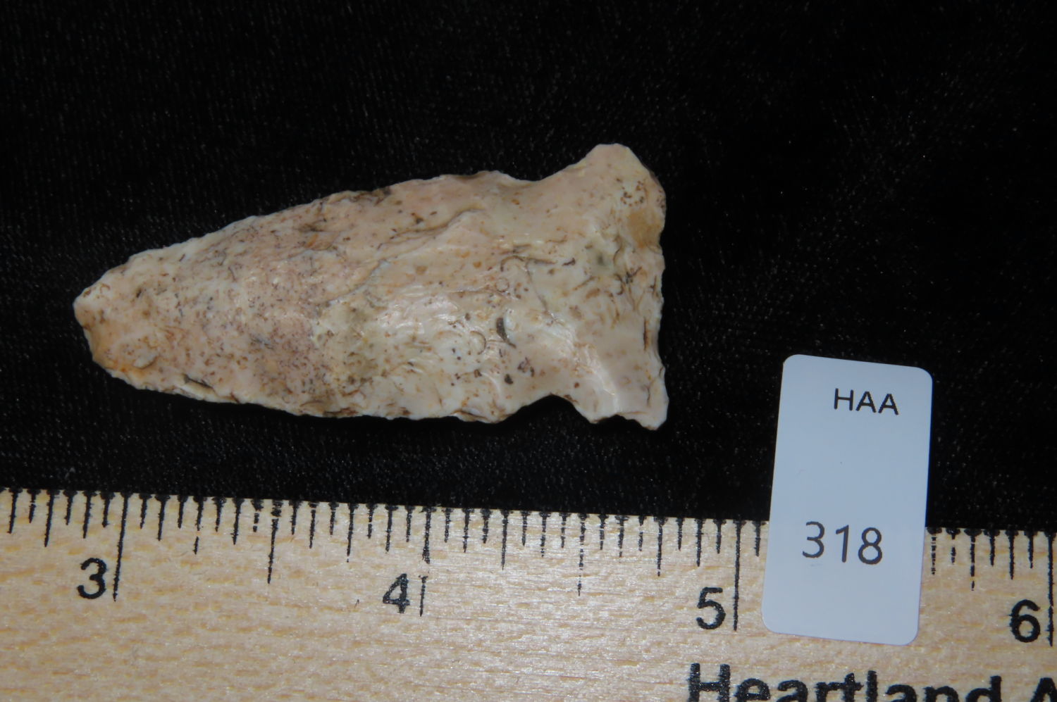Side Notch. This relic was collected by Steve McCabe. He lived in Milan Missouri and purchased from local collectors. Sullivan County Missouri. Collected from 1984 to 2022. The striking majority of the finds were Creek finds due to the amount of local creeks in the area.