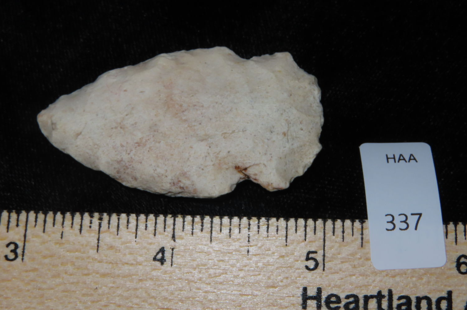 Double notch. This relic was collected by Steve McCabe. He lived in Milan Missouri and purchased from local collectors. Sullivan County Missouri. Collected from 1984 to 2022. The striking majority of the finds were Creek finds due to the amount of local creeks in the area.