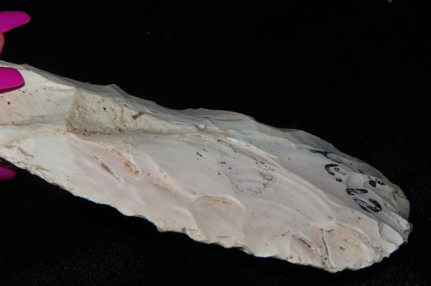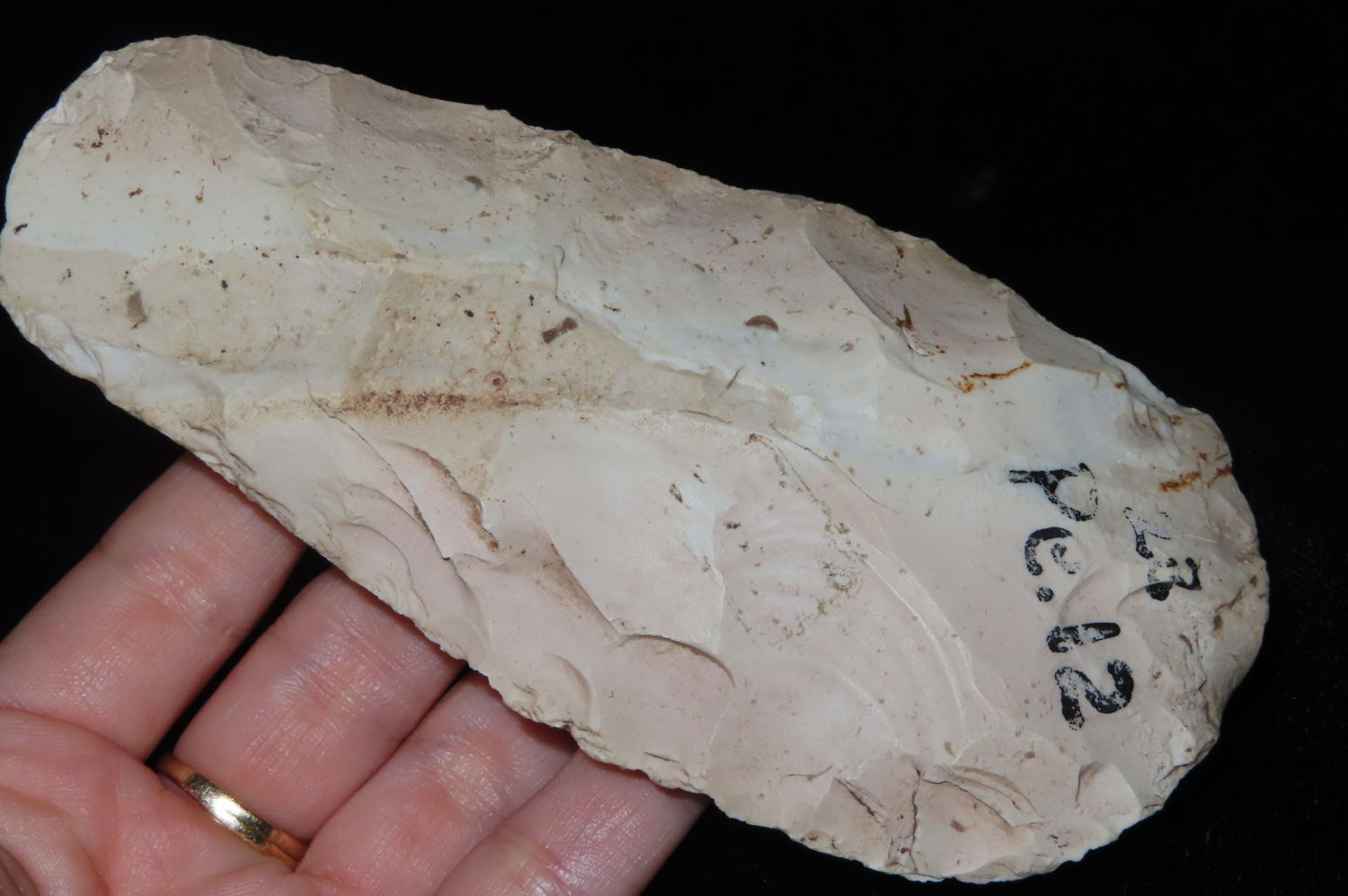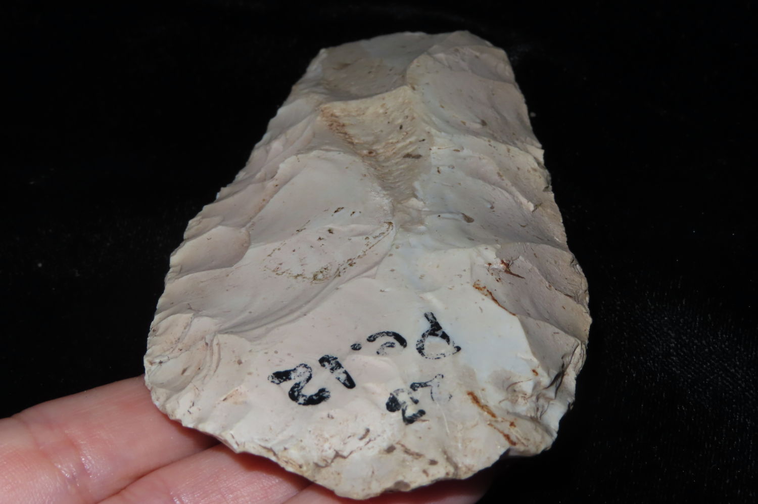 Finely made Flint Spade. This relic was collected by Steve McCabe. He lived in Milan Missouri and purchased from local collectors. Sullivan County Missouri. Collected from 1984 to 2022. The striking majority of the finds were Creek finds due to the amount of local creeks in the area.
