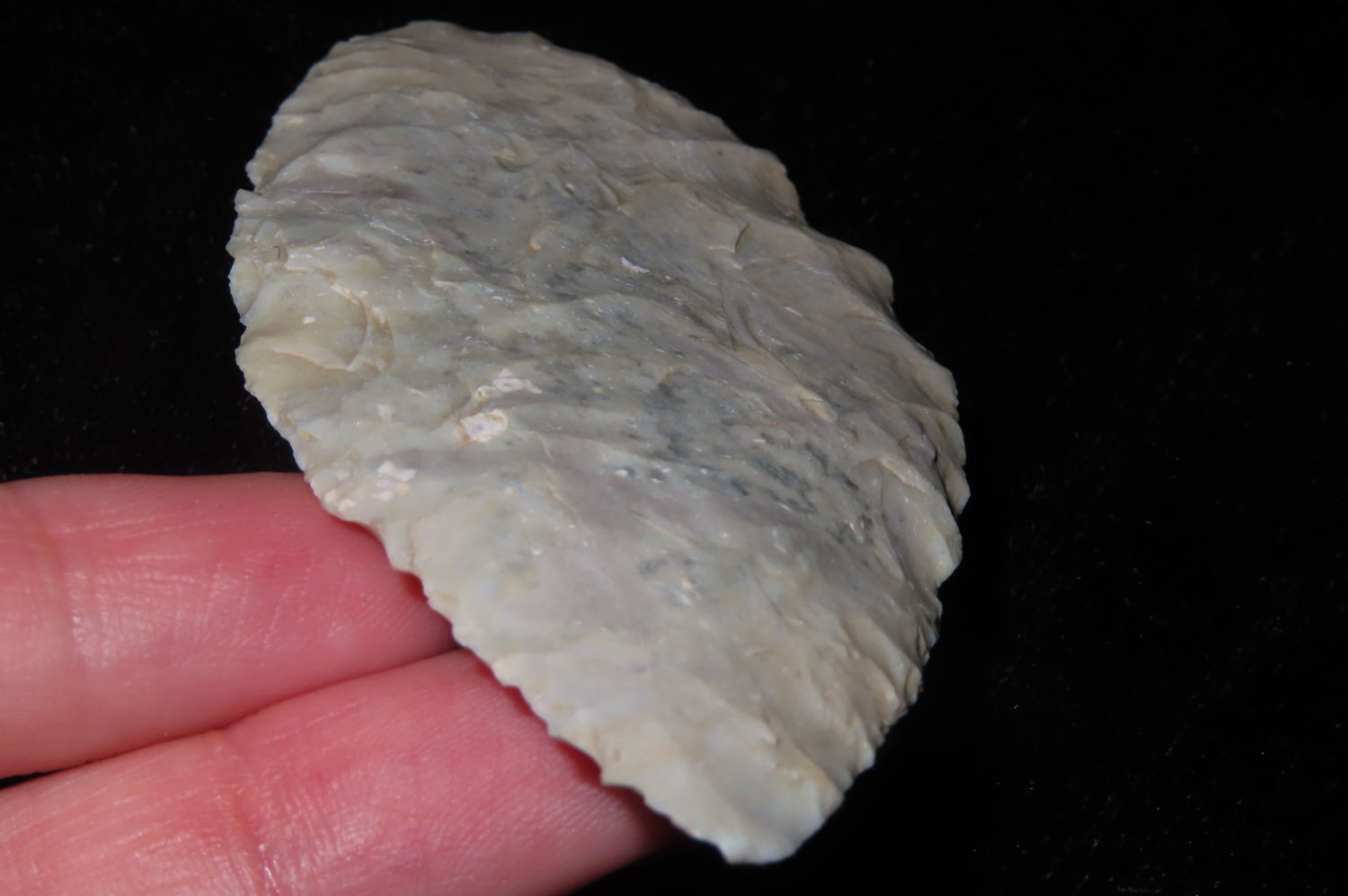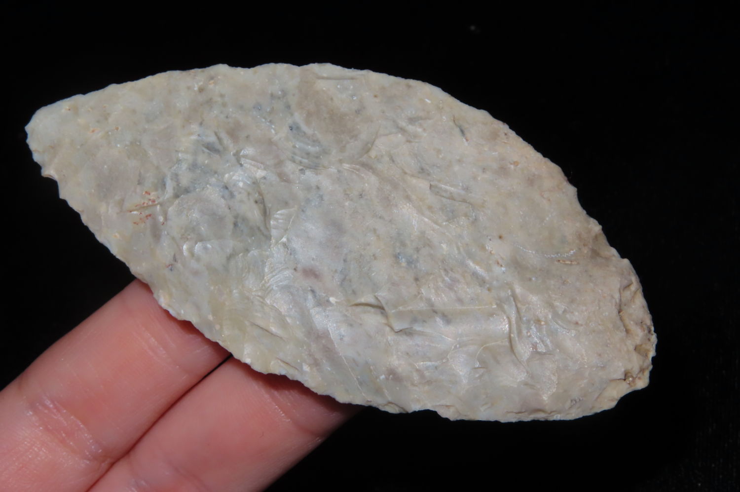 Early Ovoid Knife. This relic was collected by Steve McCabe. He lived in Milan Missouri and purchased from local collectors. Sullivan County Missouri. Collected from 1984 to 2022. The striking majority of the finds were Creek finds due to the amount of l