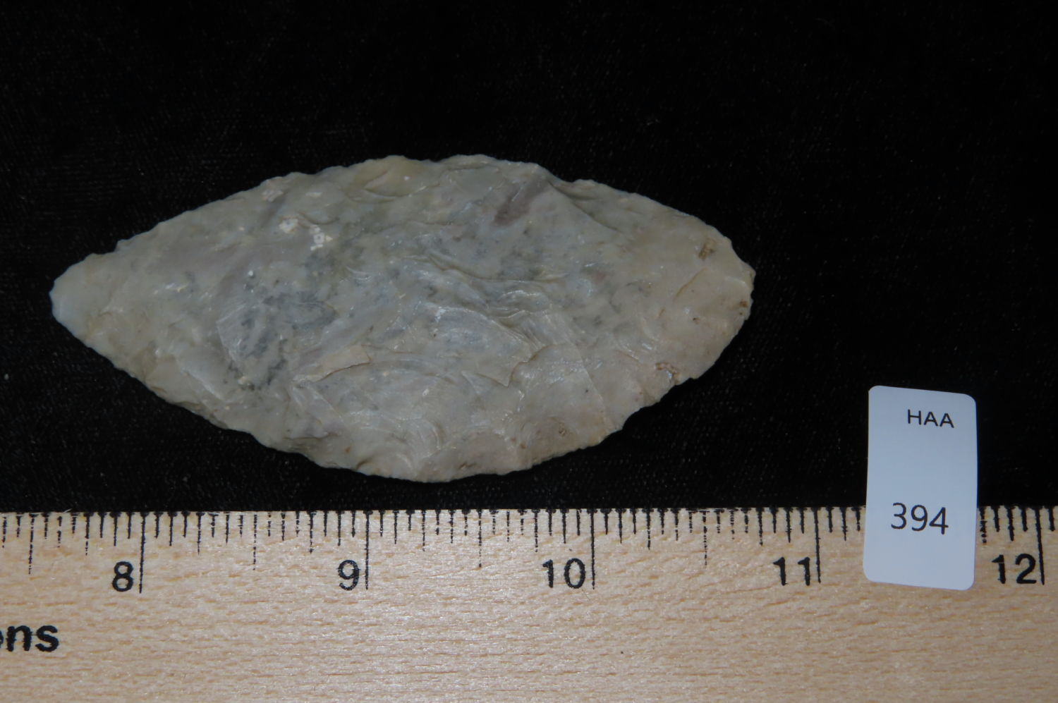 Early Ovoid Knife. This relic was collected by Steve McCabe. He lived in Milan Missouri and purchased from local collectors. Sullivan County Missouri. Collected from 1984 to 2022. The striking majority of the finds were Creek finds due to the amount of local creeks in the area.