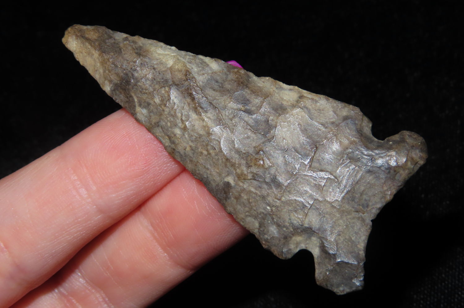 Graham Cave. This relic was collected by Steve McCabe. He lived in Milan Missouri and purchased from local collectors. Sullivan County Missouri. Collected from 1984 to 2022. The striking majority of the finds were Creek finds due to the amount of local creeks in the area.