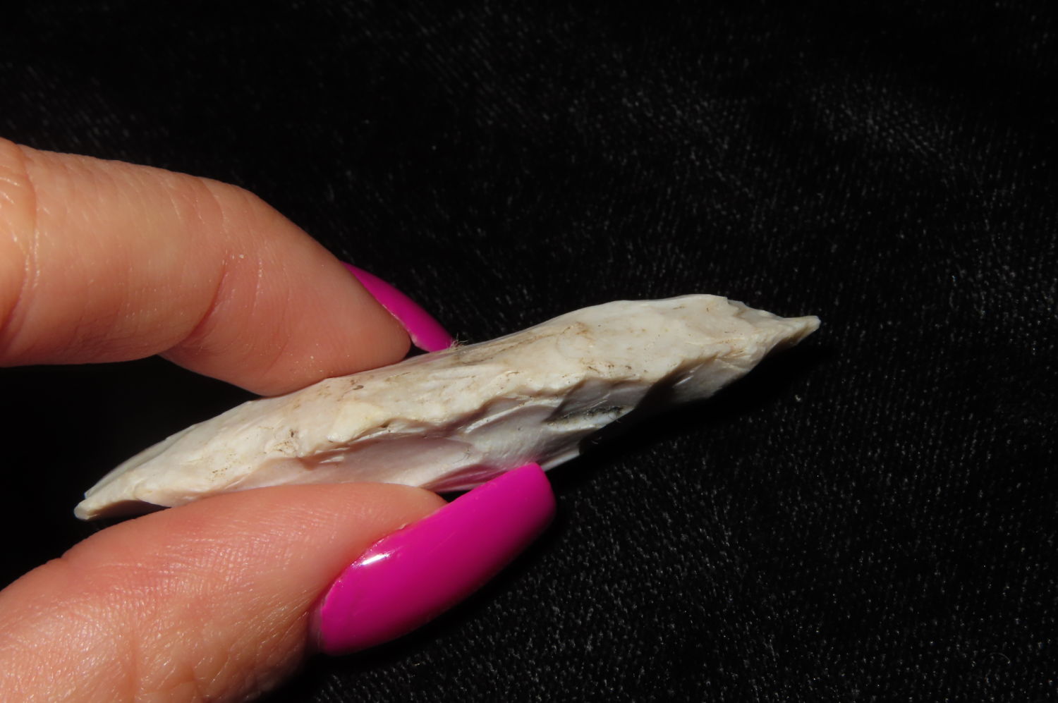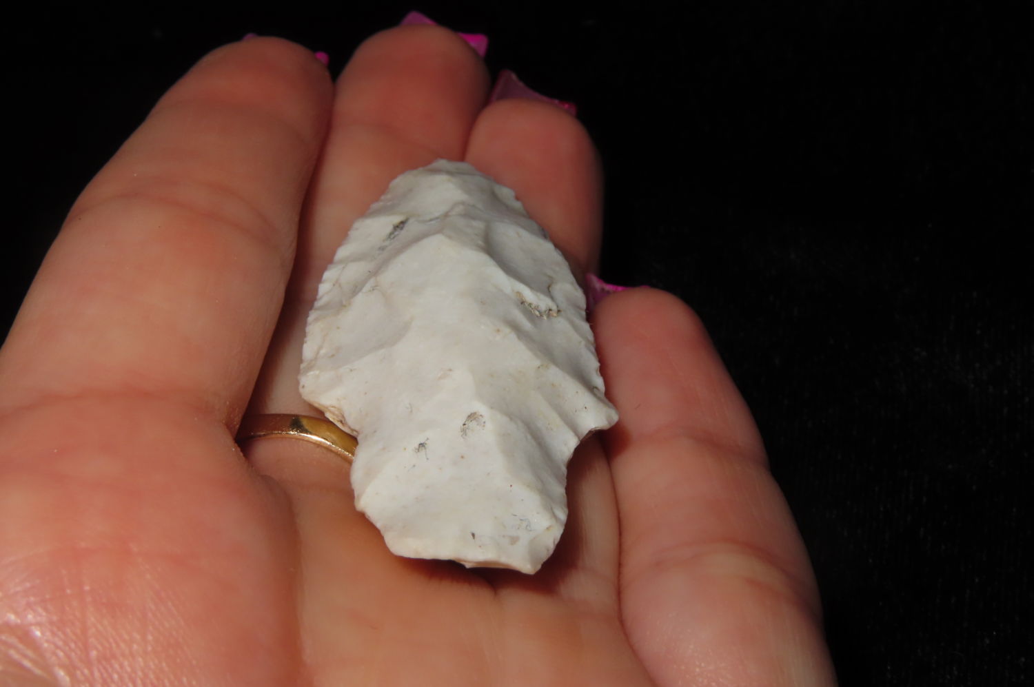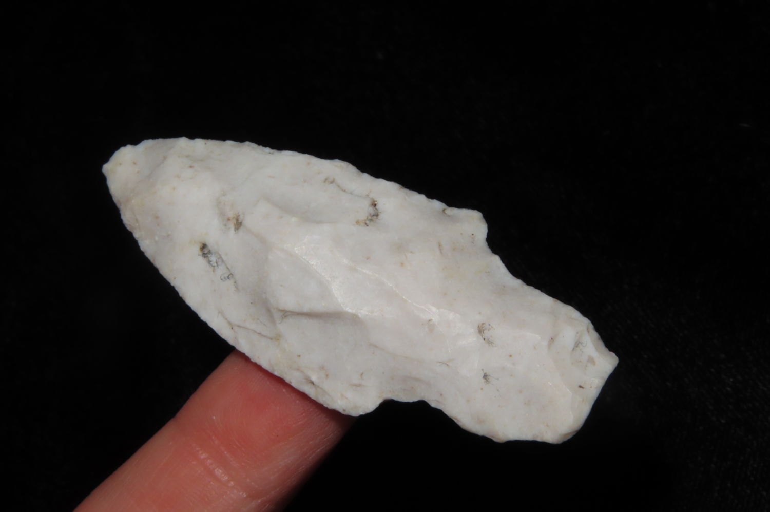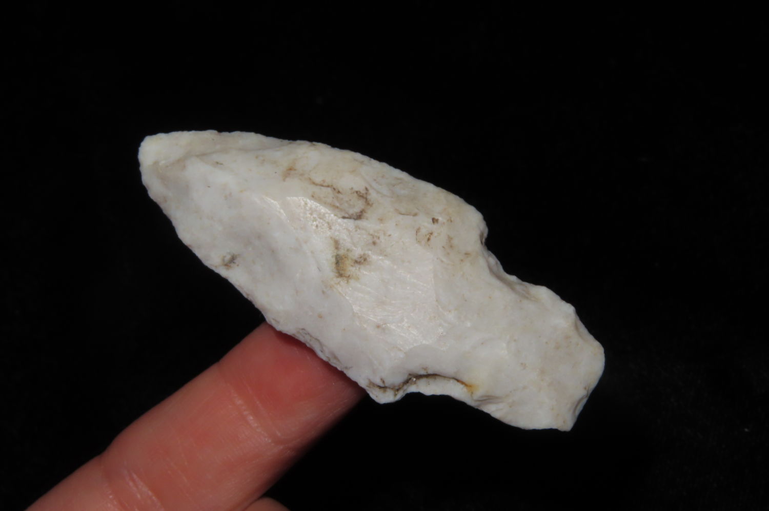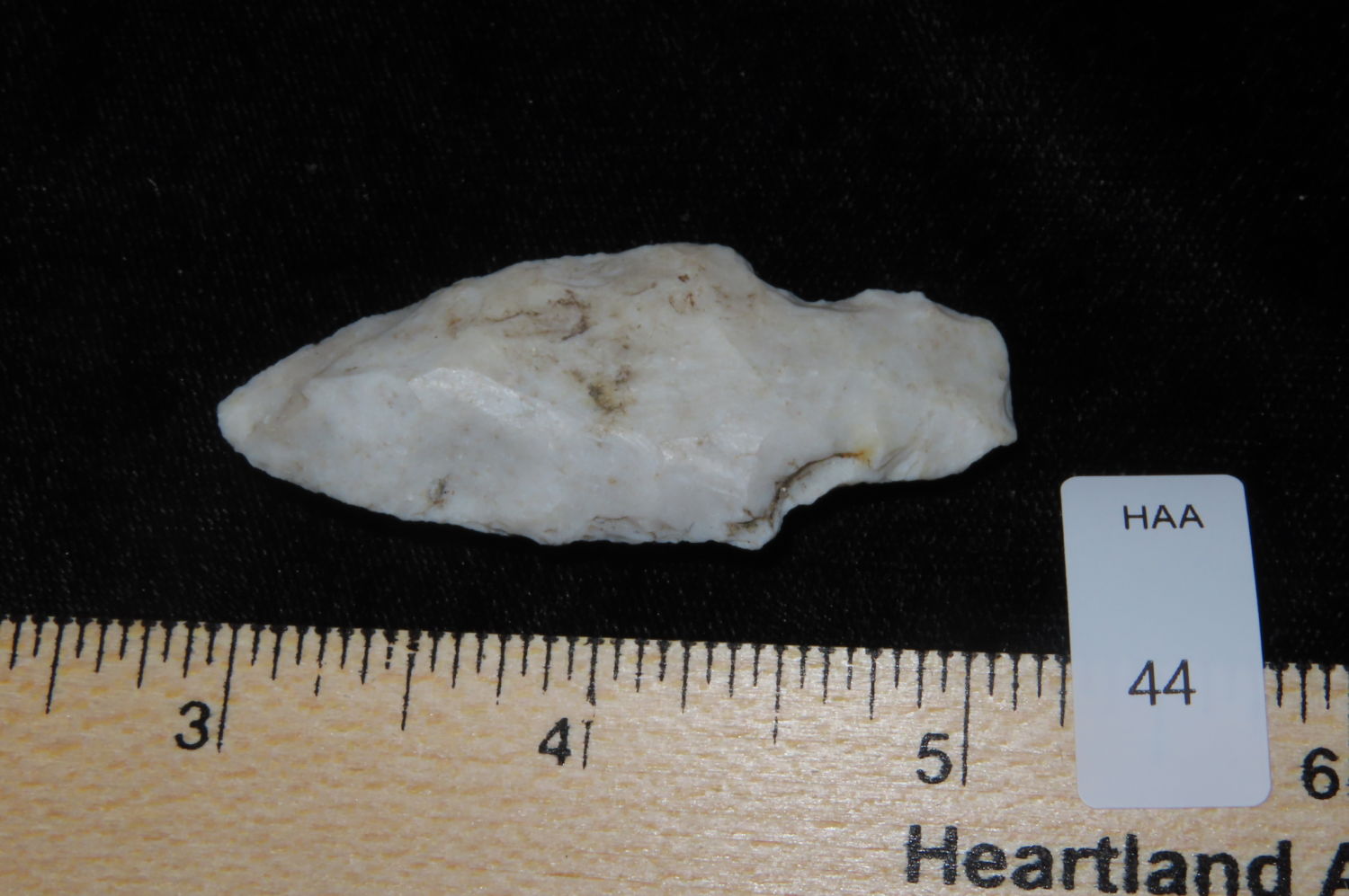 Stemmed Point. This relic was collected by Steve McCabe. He lived in Milan Missouri and purchased from local collectors. Sullivan County Missouri. Collected from 1984 to 2022. The striking majority of the finds were Creek finds due to the amount of local creeks in the area.