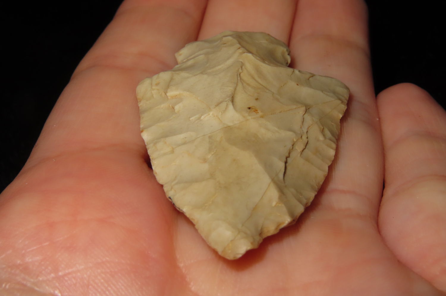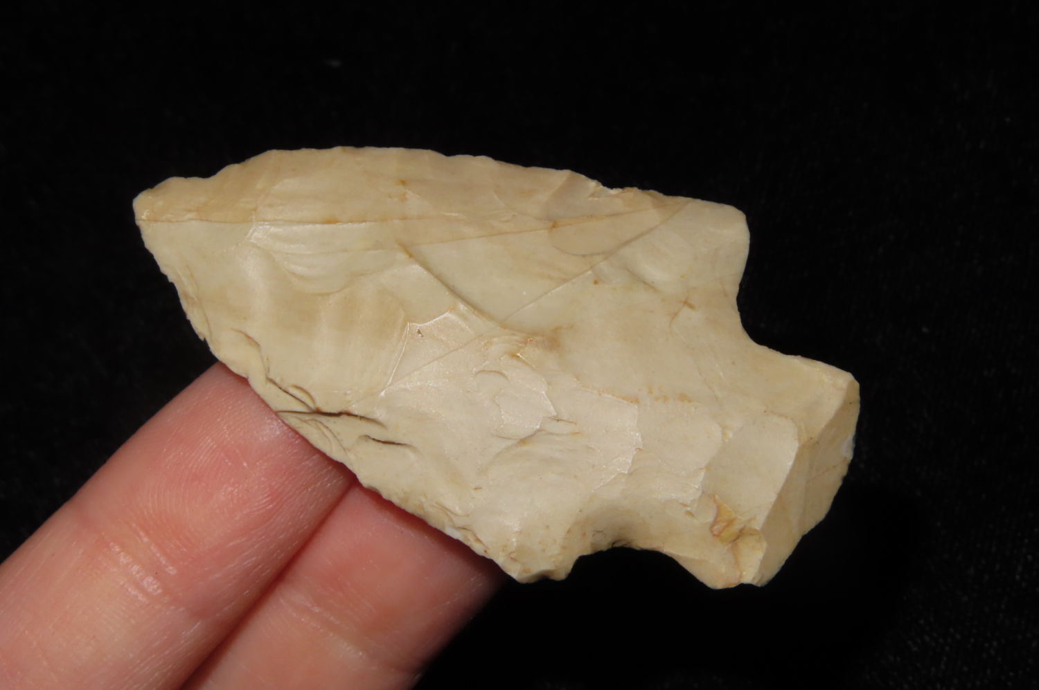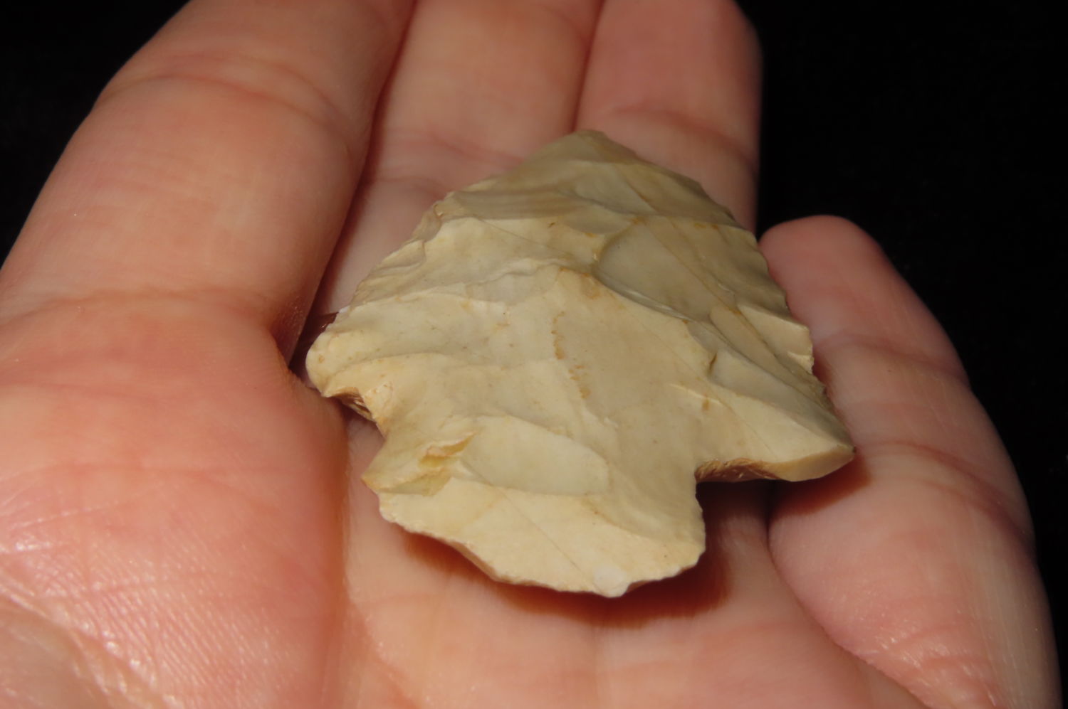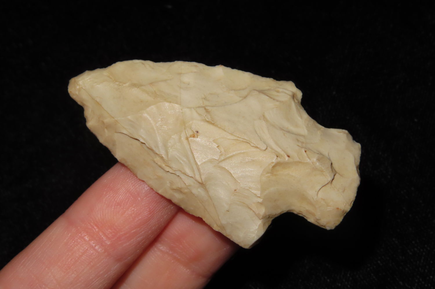 Stemmed Point. This relic was collected by Steve McCabe. He lived in Milan Missouri and purchased from local collectors. Sullivan County Missouri. Collected from 1984 to 2022. The striking majority of the finds were Creek finds due to the amount of local