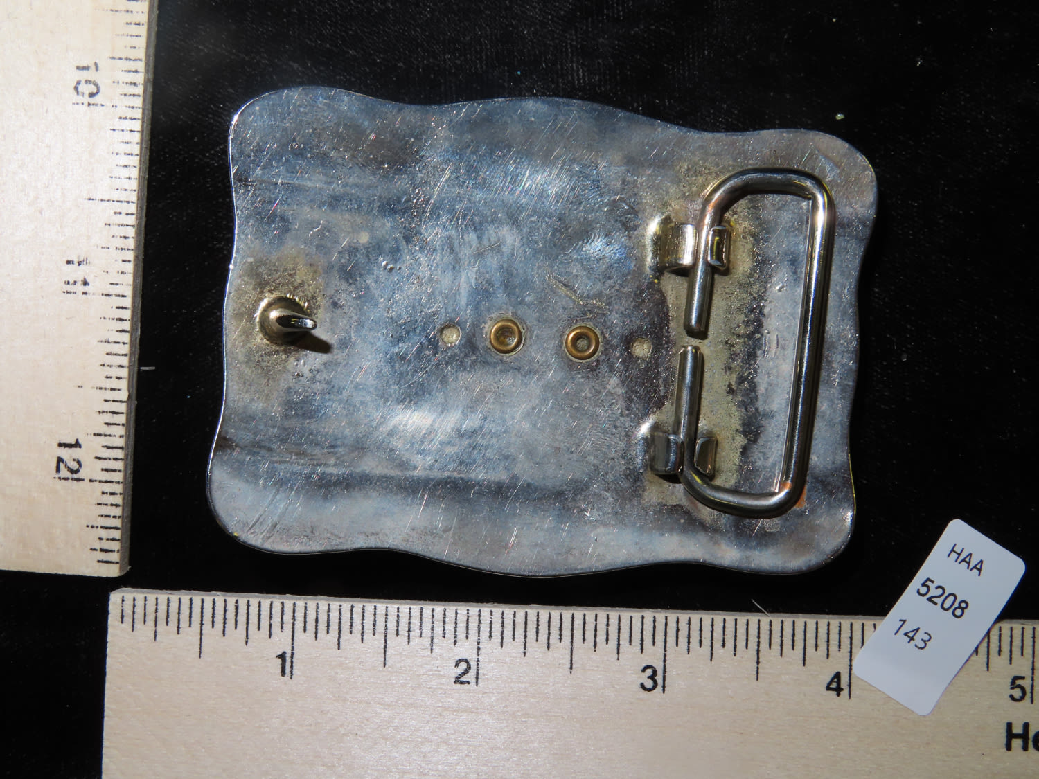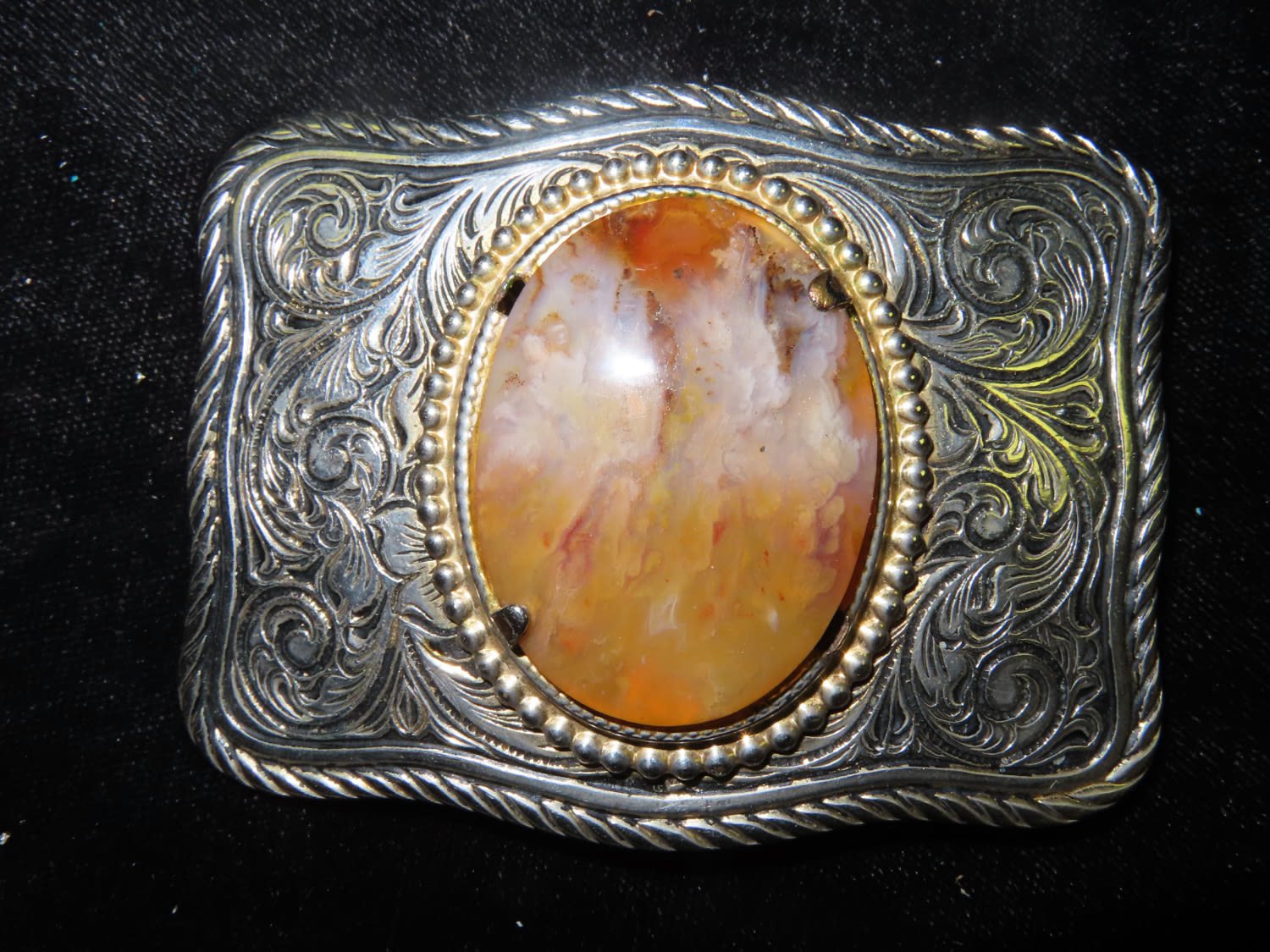 Silvertone Embellished Belt Buckle with Polished Agate Inlay From the Estate of Antoine and Sandra Clairmont
