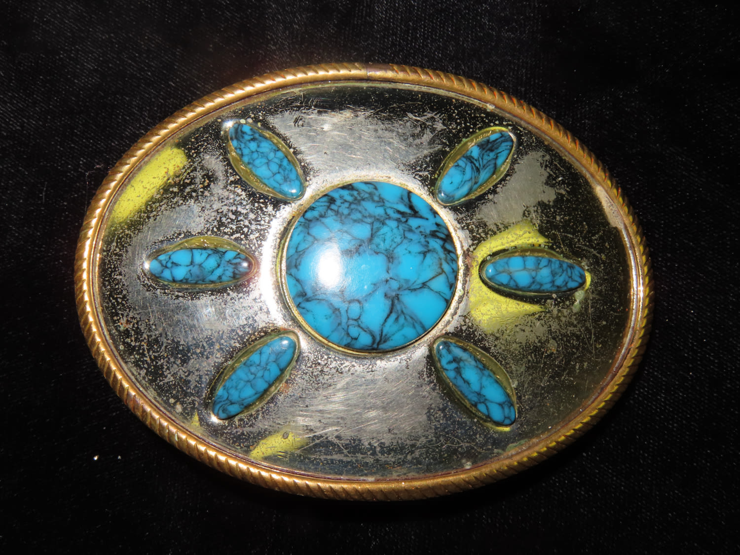 Two-tone Nickel Silver Belt Buckle with Turquoise settings From the Estate of Antoine and Sandra Clairmont
