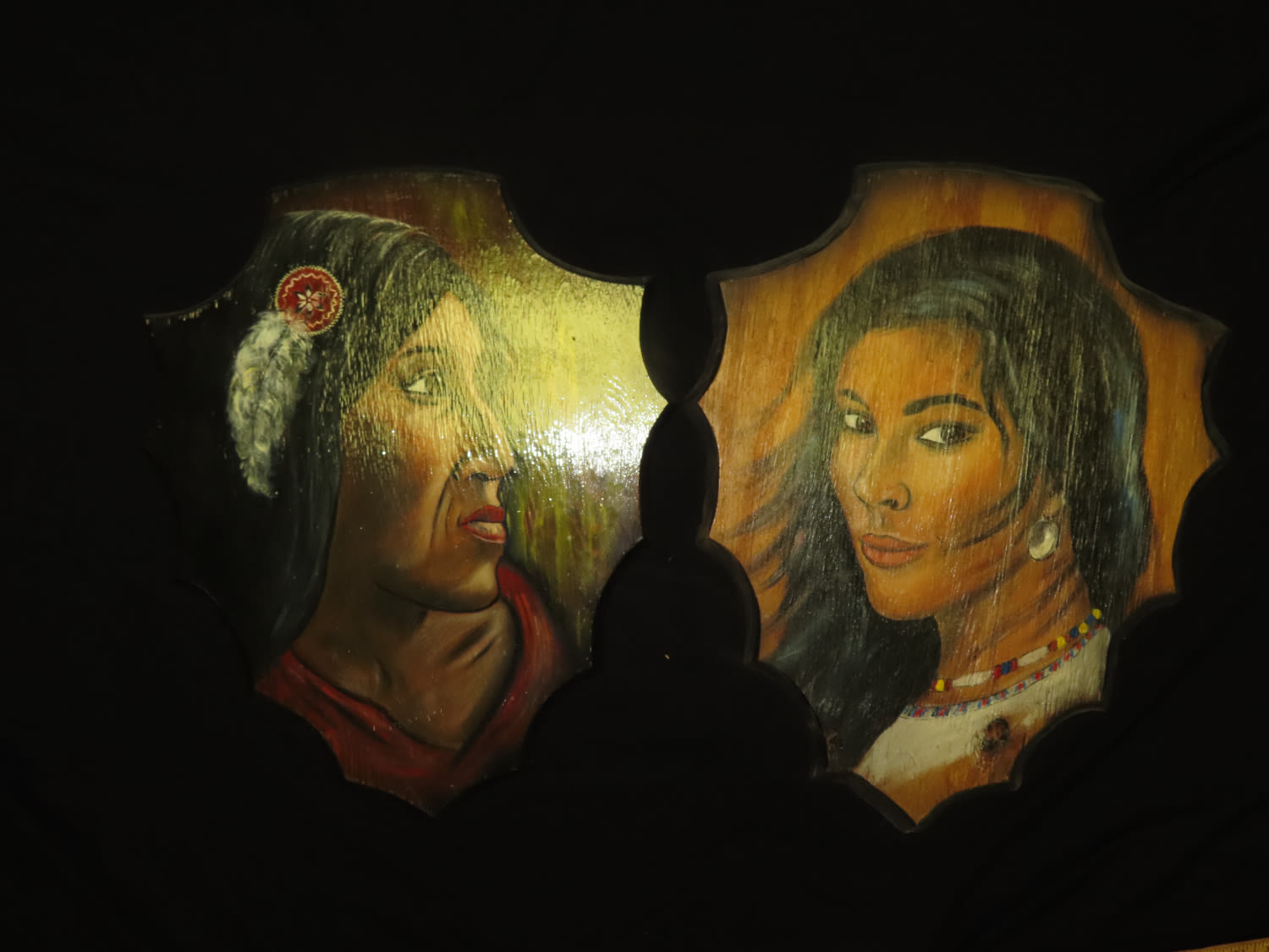 Two Native American Paintings on Wood by Noella Big Eagle from Tribe Assiniboin From the Estate of Antoine and Sandra Clairmont