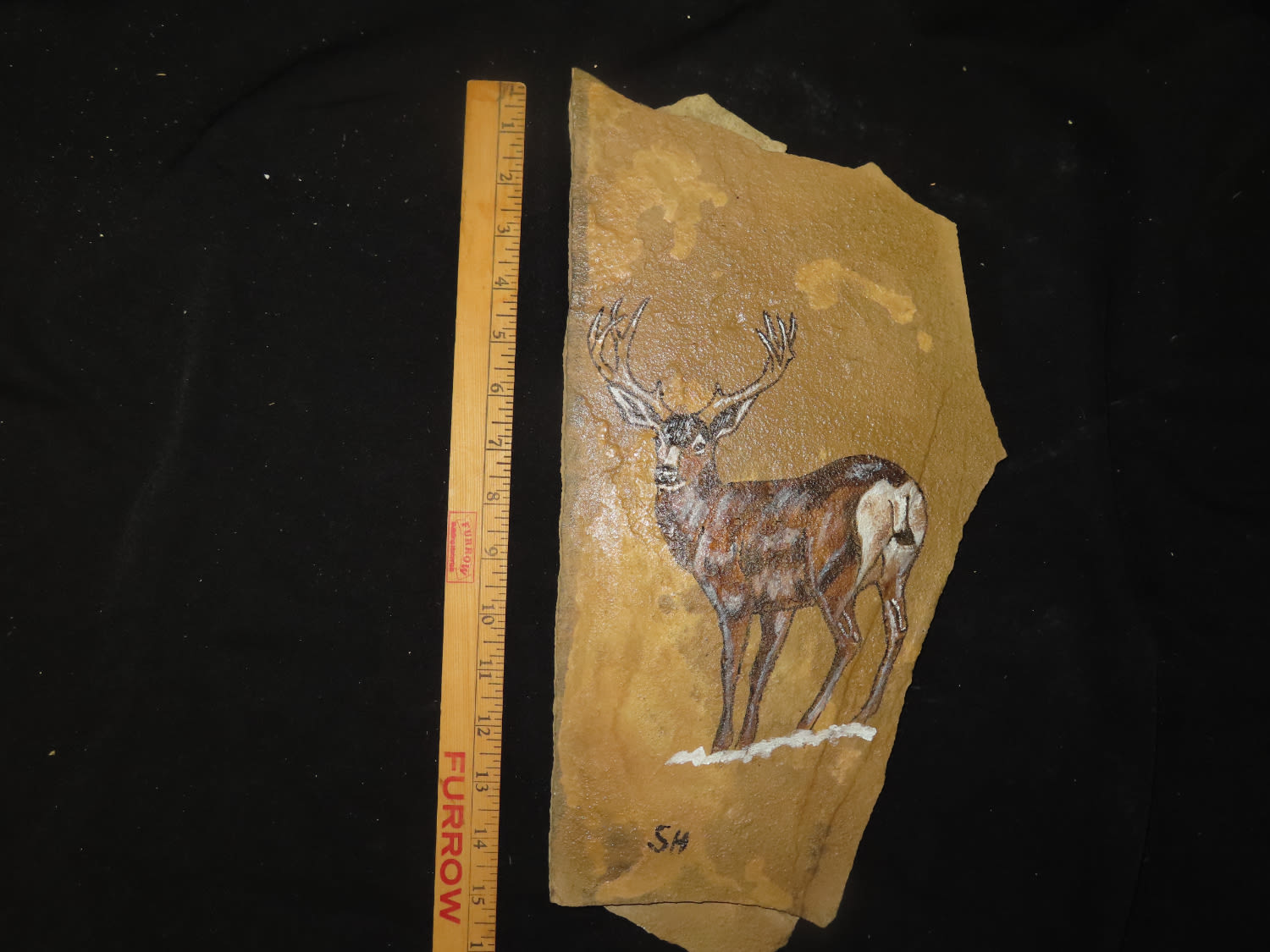 Buck Painted on piece of Slate with initials SH. From the Estate of Antoine and Sandra Clairmont