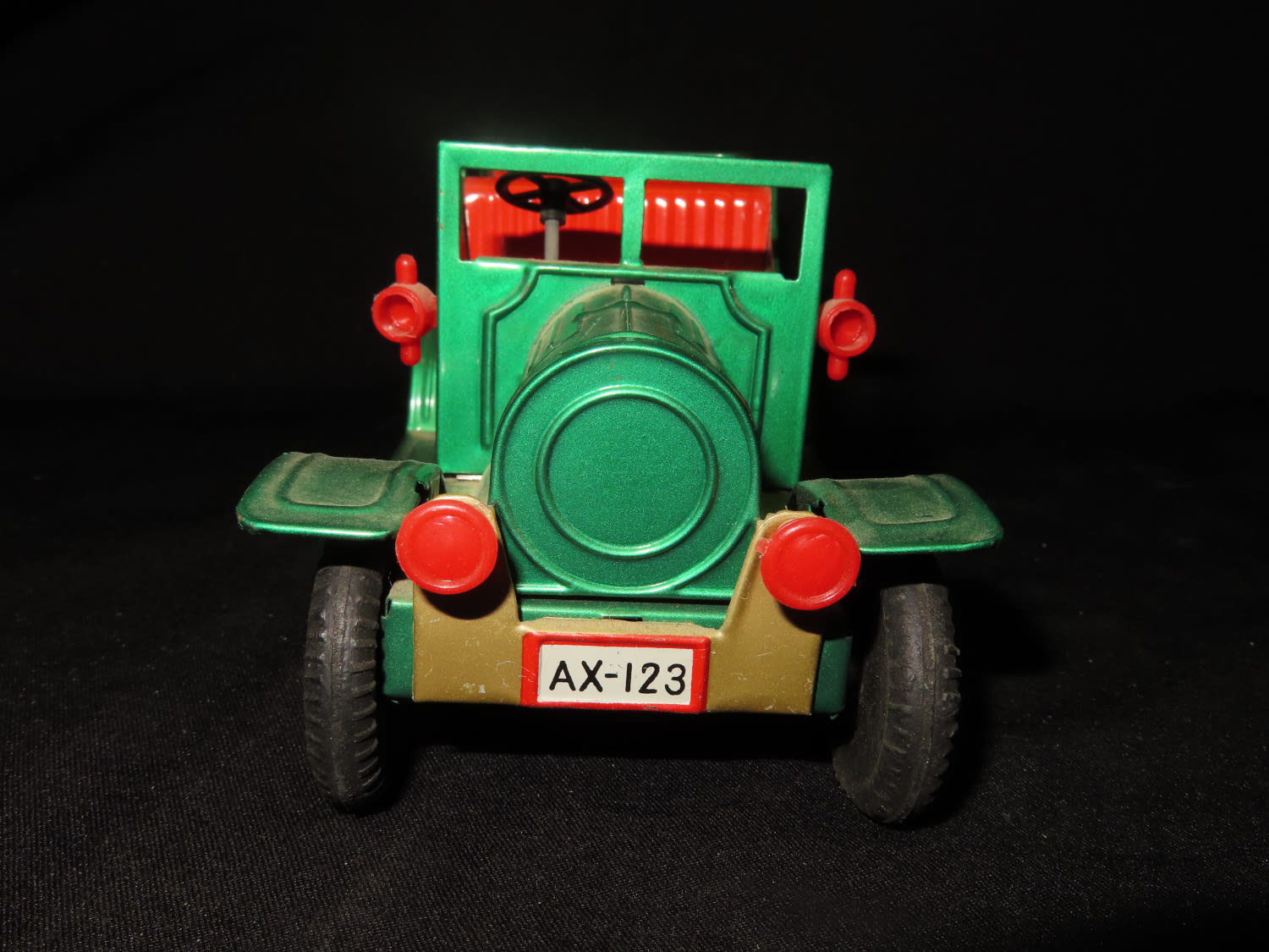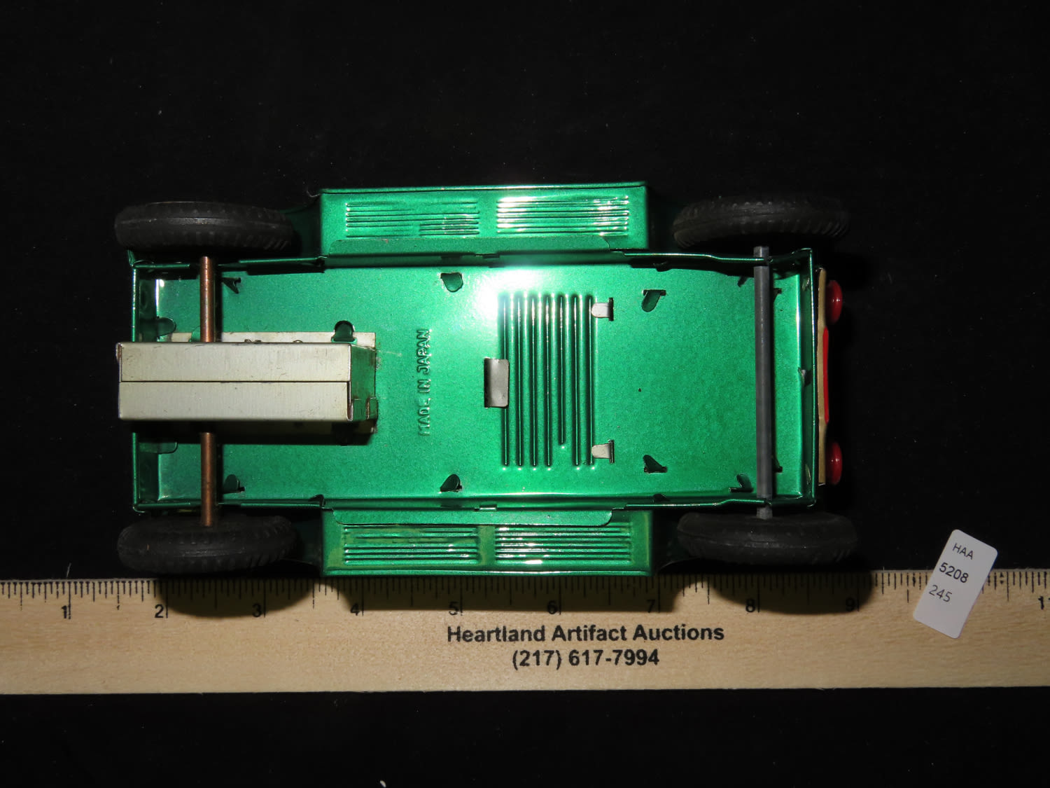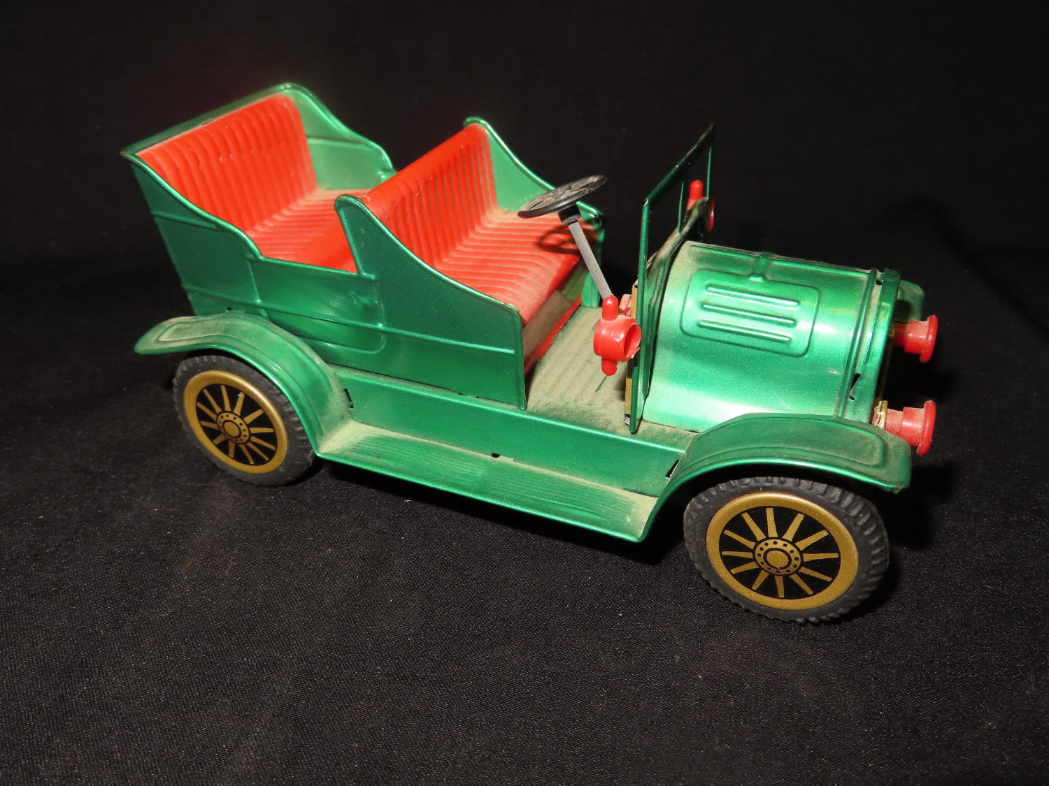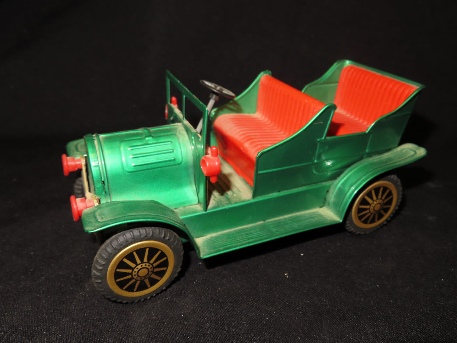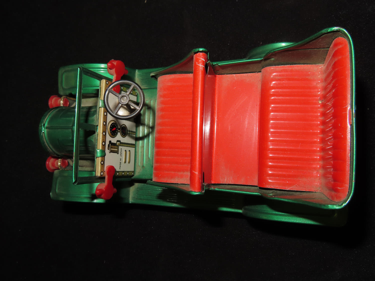 Made in Japan Toy Collectable Green with Red interior Metal Vintage Car. From the Estate of Antoine and Sandra Clairmont
