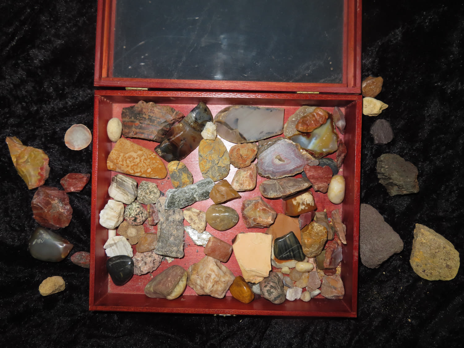 Another Box of ROCKS! Polished stones, geodes, etc. From the Estate of Antoine and Sandra Clairmont