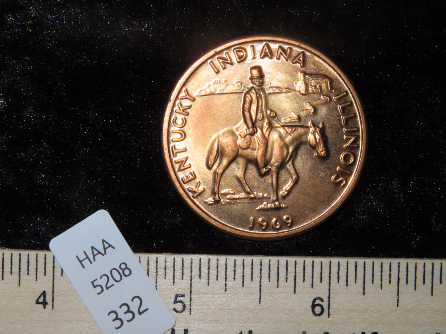 Lincoln Heritage Trail Coin. 1969 Kentucky-Indiana-Illinois. From the Estate of Antoine and Sandra Clairmont