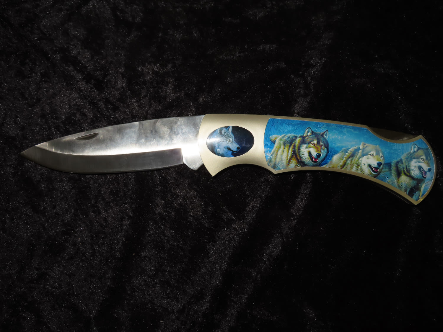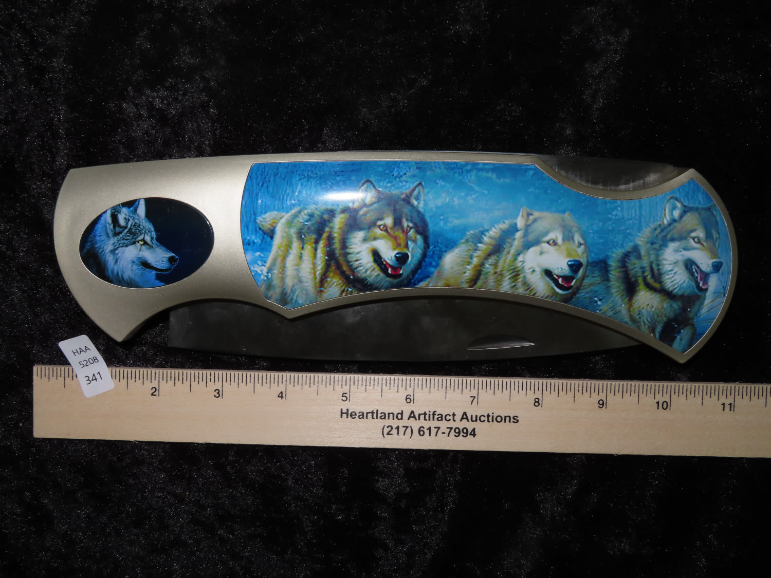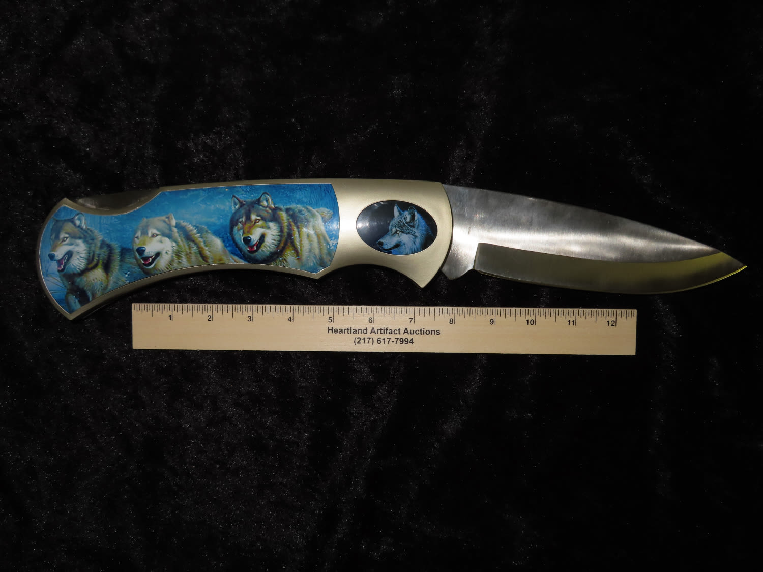 Oversized Pocket Knife with Picture of Wolves. From the Estate of Antoine and Sandra Clairmont