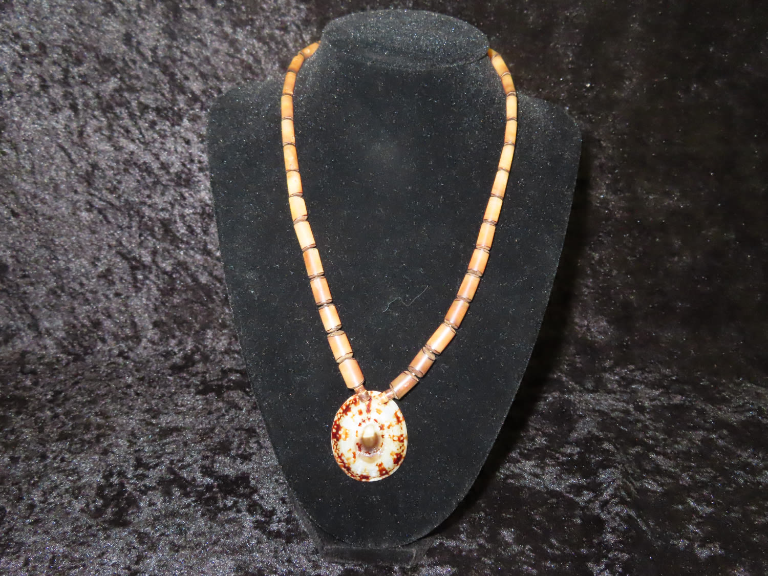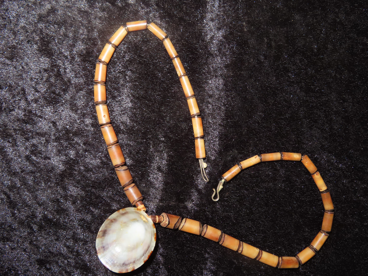 Wooden Beaded Necklace with Shell Pendant. From the Estate of Antoine and Sandra Clairmont