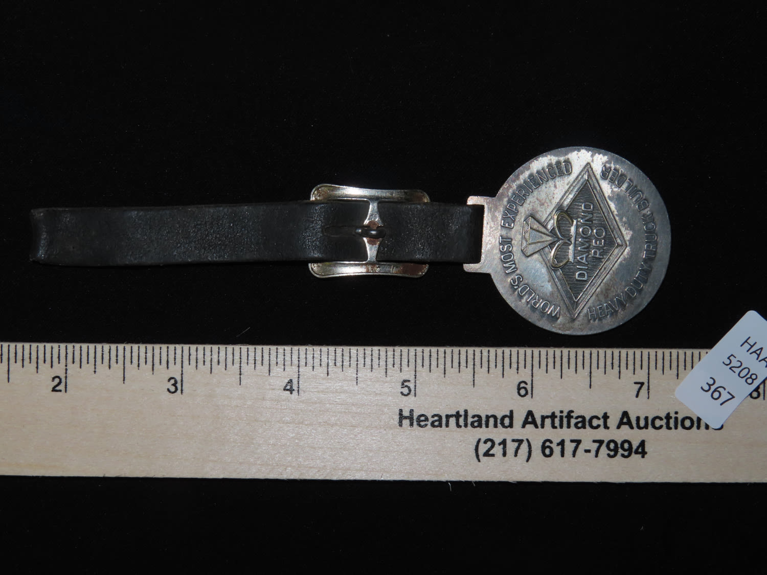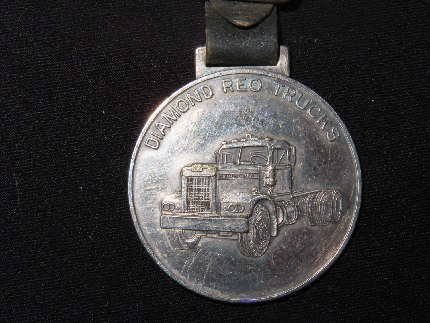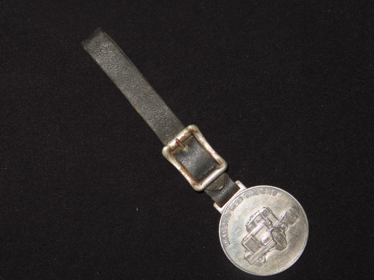 World’s Most Experienced Heavy Duty Builder DIAMOND REO Metal Pocket Watch Pendant on Leather strap. From the Estate of Antoine and Sandra Clairmont